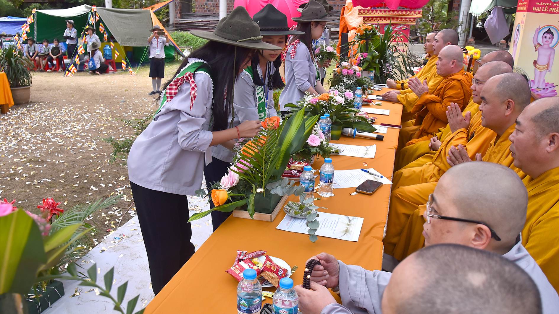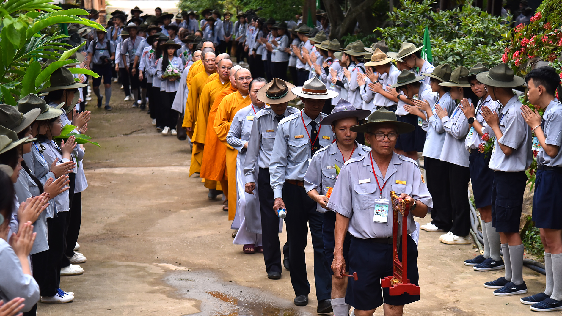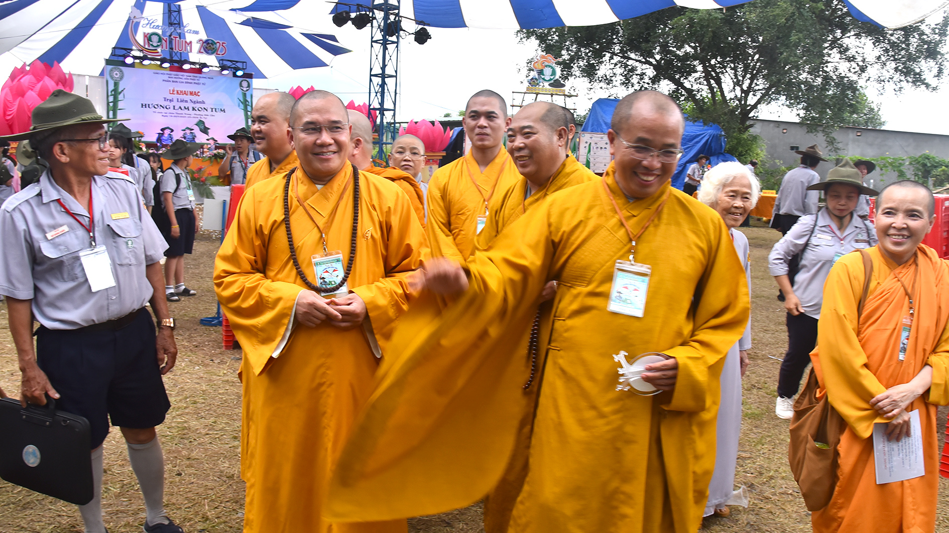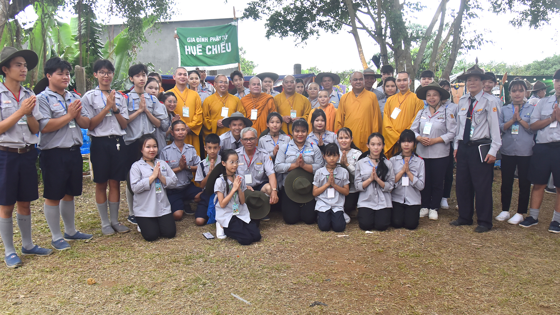 Cuối buổi lễ, TT. Thích Vạn Nhơn, đã ban lời đạo từ đầy xúc động: Thầy rất hoan hỷ khi thấy màu áo lam hội tụ về đây, cùng chung niềm vui, cùng thắp sáng ngọn lửa yêu thương và phụng sự. Trại họp bạn không chỉ là nơi giao lưu, chia sẻ mà còn là môi trường để các con học hạnh khiêm cung, nuôi dưỡng tâm từ bi và tinh thần trách nhiệm. Mong các Huynh trưởng lấy tình lam mà dìu dắt đàn em, mong các em Đoàn sinh lấy niềm tin Phật pháp mà vững bước trong đời. Mỗi sinh hoạt, mỗi bài ca, mỗi nụ cười trong trại này đều là hạt giống tốt gieo vào tâm hồn, để mai này khi rời trại, chúng ta mang theo hành trang đạo đức và tình thân quý giá, cùng nhau xây dựng GĐPT tỉnh nhà ngày càng vững mạnh.”