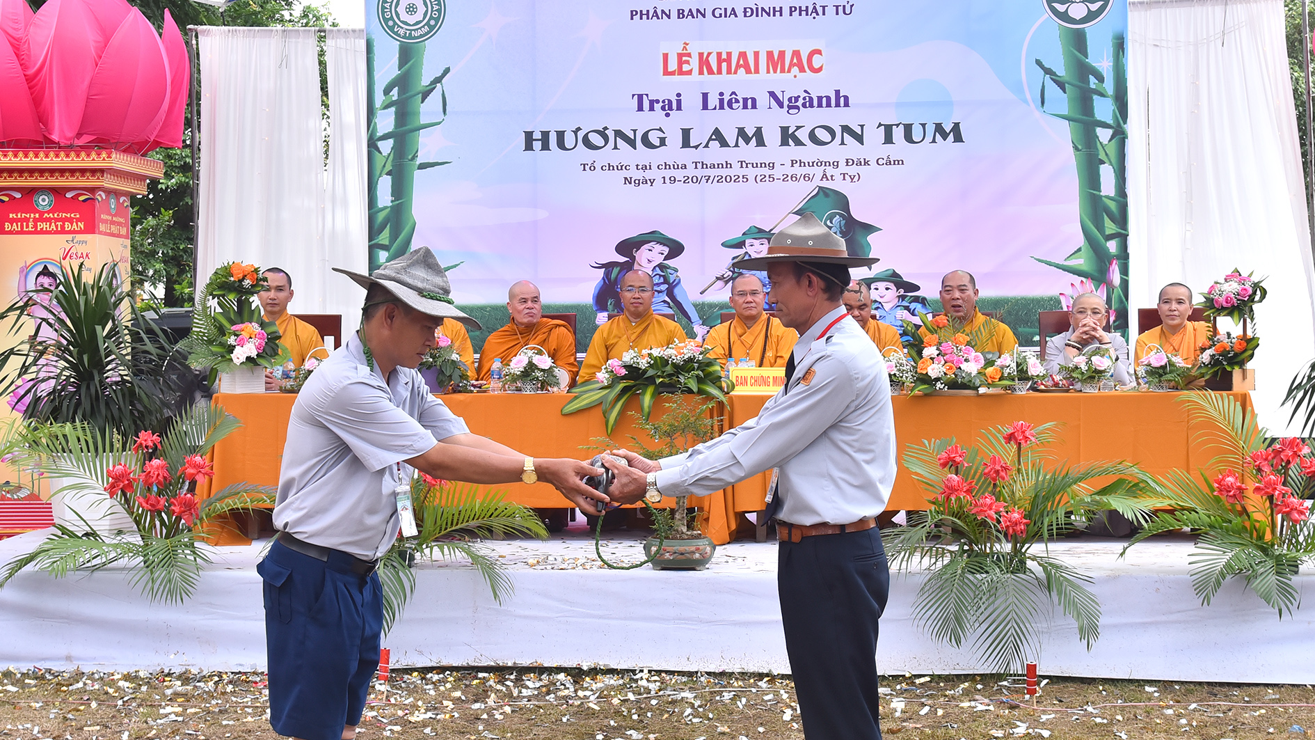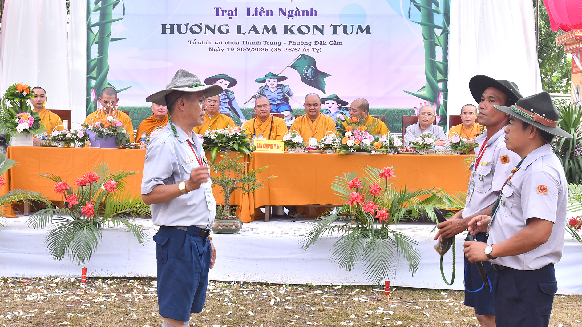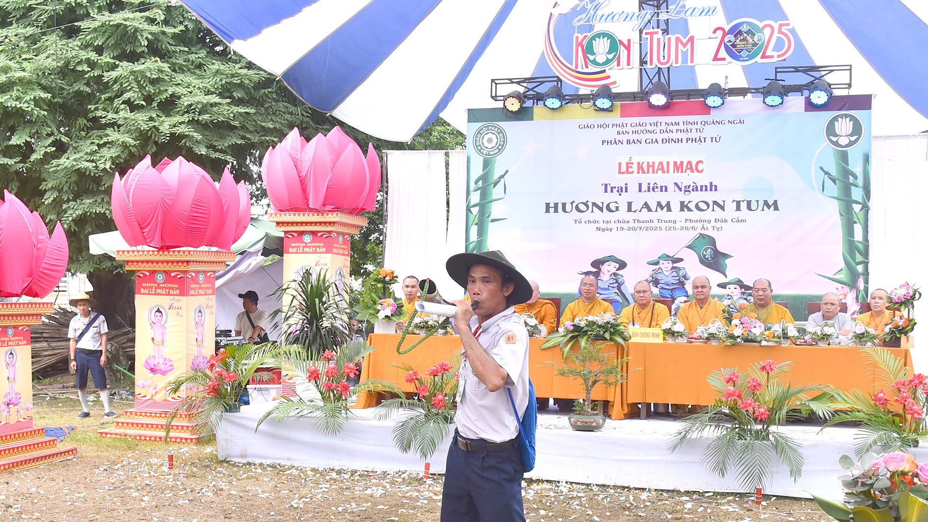 Trong diễn văn khai mạc, Htr cấp Tấn Vạn Hải – Phan Thế Lâm (Trại trưởng) nhấn mạnh: “Trại họp bạn là dịp để anh chị em Huynh trưởng, Đoàn sinh các đơn vị GĐPT Kon Tum giao lưu, trao đổi kinh nghiệm, vun bồi tình lam, tăng trưởng đạo tâm và kỹ năng sinh hoạt, để cùng nhau gìn giữ màu cờ sen trắng.”