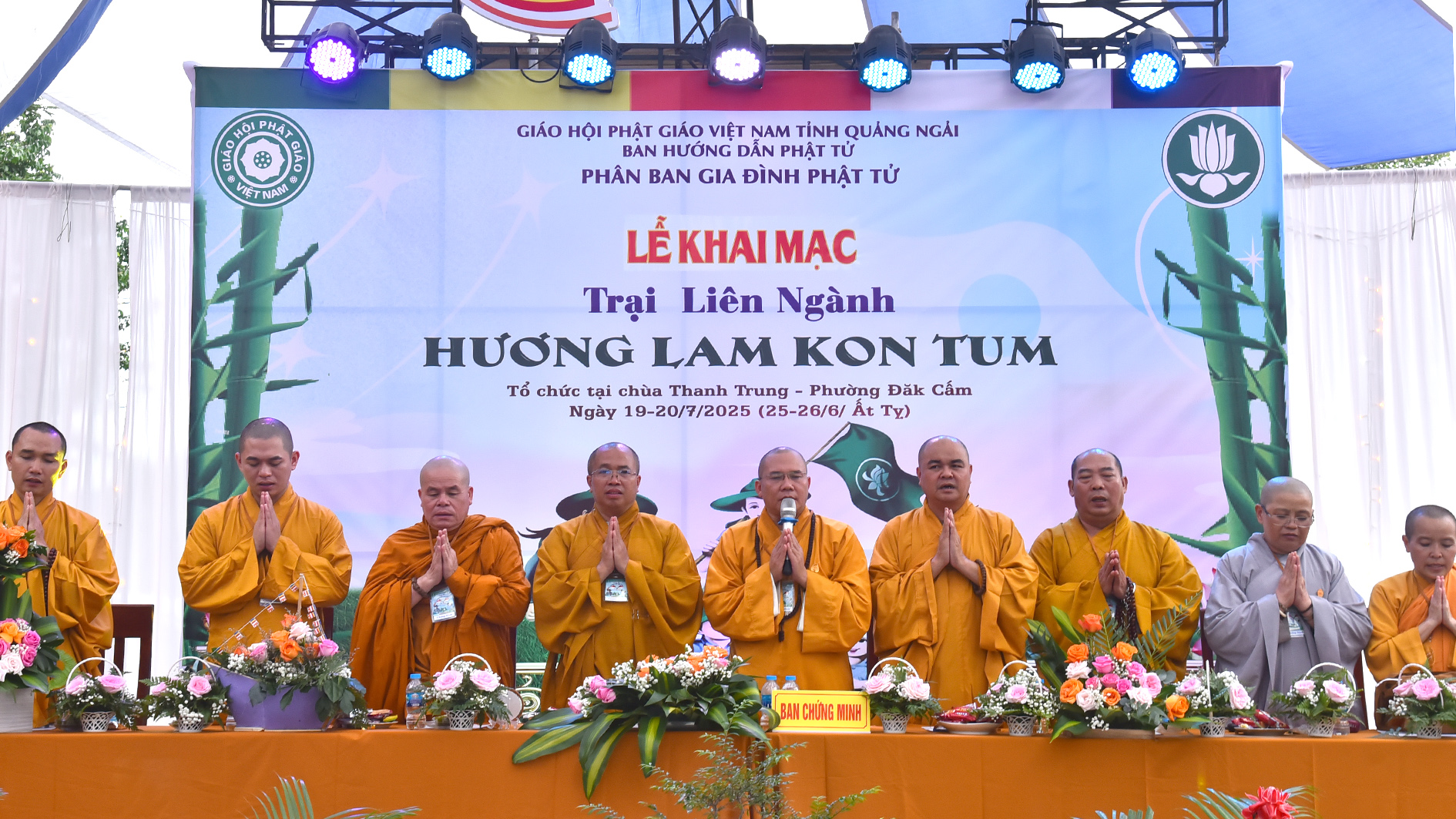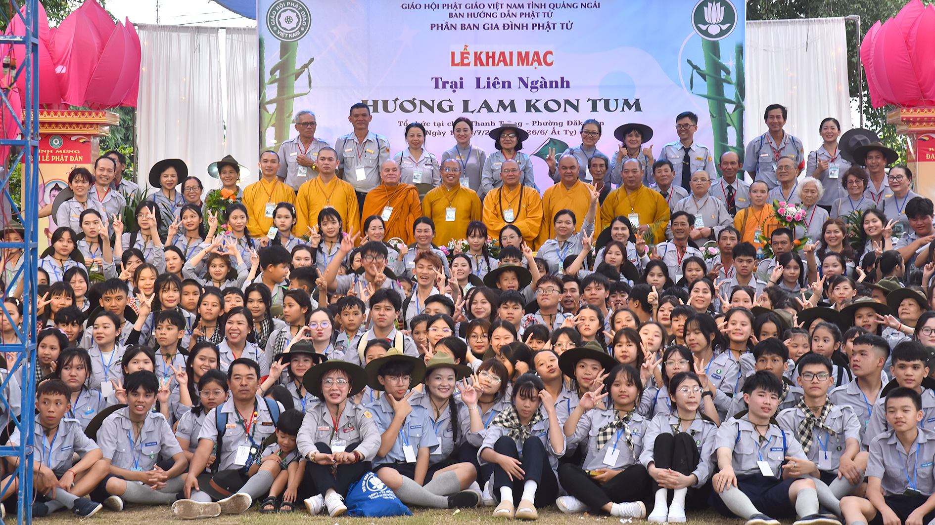 Sáng ngày 19/7/2025, (25/6/ Ất Tỵ) trong không khí hân hoan của mùa hè, tại chùa Thanh Trung (P. Đăk Cấm), Ban Hướng Dẫn – Phân ban GĐPT Kon Tum trang nghiêm tổ chức lễ khai mạc Trại hè “Hương Lam Kon Tum” dành cho ngành Thanh – Thiếu – Oanh của các đơn vị GĐPT trong tỉnh.