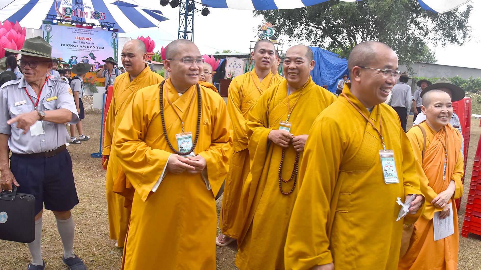 Về Phía PB. GĐPT có: Htr cấp Dũng Quảng Quý – Nguyễn Thị Như Thanh,; HTr cấp Tấn Quảng Hương – Nguyễn Thị Tuý Nga, cố vấn PB. GĐPT Kon Tum; Htr cấp Tấn Thị Hoàng – Nguyễn Văn Tiên, Trưởng Phân Ban GĐPT Kon Tum; Htr cấp Tấn Đồng Vinh – Đàm Văn Ca, Phó Trưởng Ban Thường Trực Phân ban GĐPT Kon Tum, cùng quý Bác Ban Bảo trợ PB.GĐPT Kon Tum và Huynh trưởng Thường trực, các ban ngành và gần 1000 huynh trưởng và đoàn sinh 15 đon vị GĐPT đồng về tham dự.