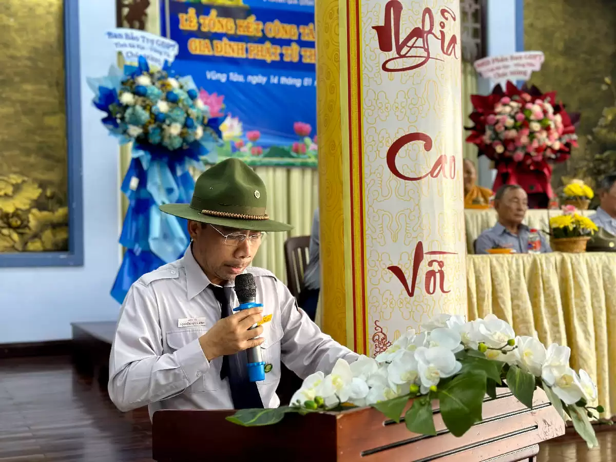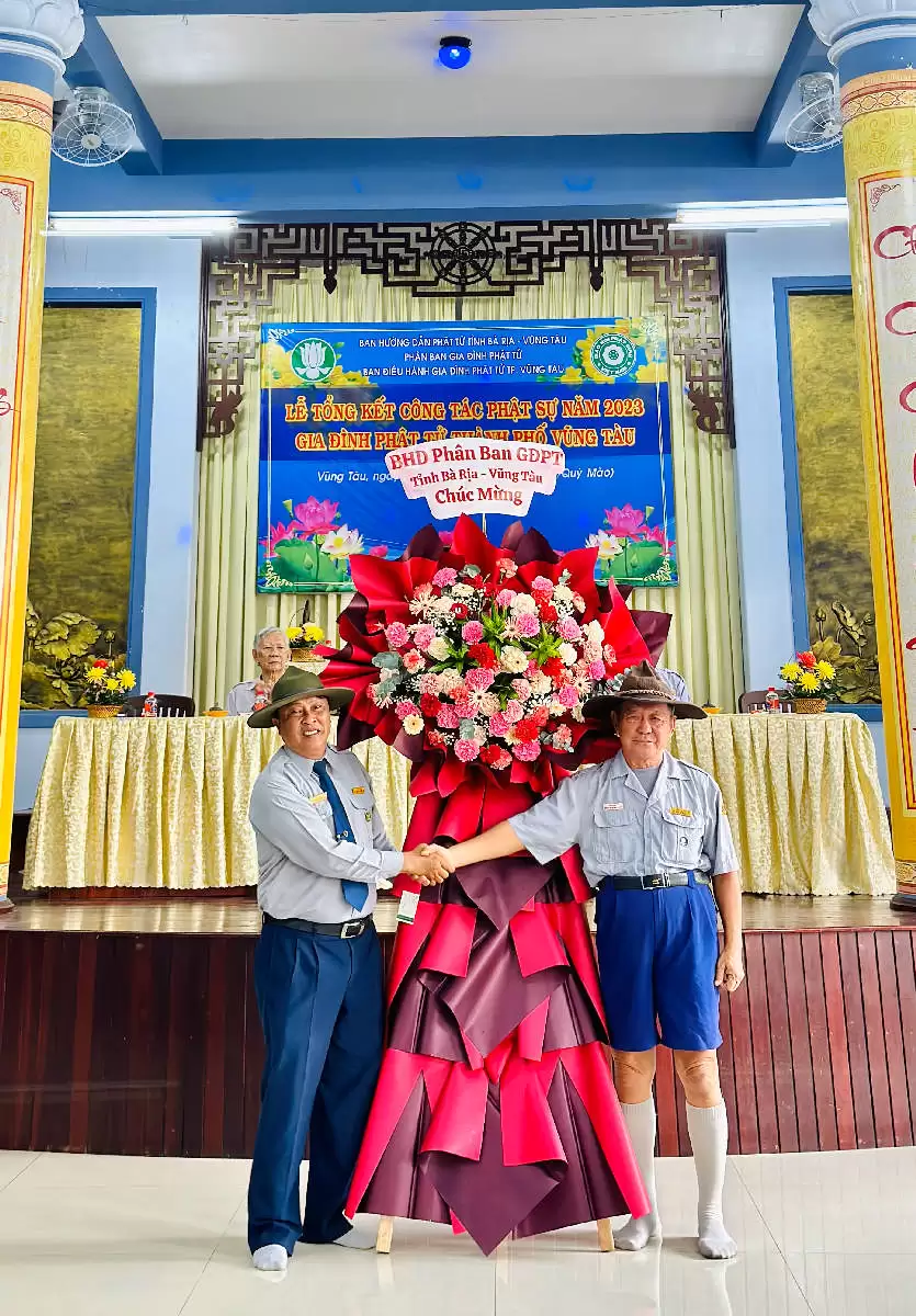 Về phía GĐPT có Huynh trưởng cấp Dũng Thiện Bình – Nguyễn Hồng Trân, Phó Trưởng Phân ban GĐPT Tỉnh Bà Rịa Vũng Tàu cùng các anh chị trong Thường trực BHD PB GĐPT Tỉnh và hơn 80 Huynh trưởng và Đoàn sinh trong Thành phố tham dự.