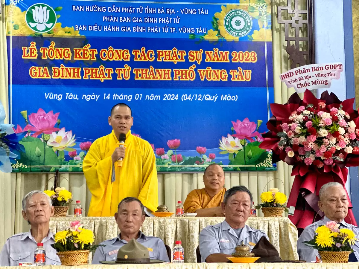 Sáng ngày 14/01/2024, Ban Điều Hành Gia đình Phật tử thành phố Vũng Tàu đã trang nghiêm tổ chức Lễ tổng kết công tác Phật sự năm 2023 tại Chùa Liên Trì.