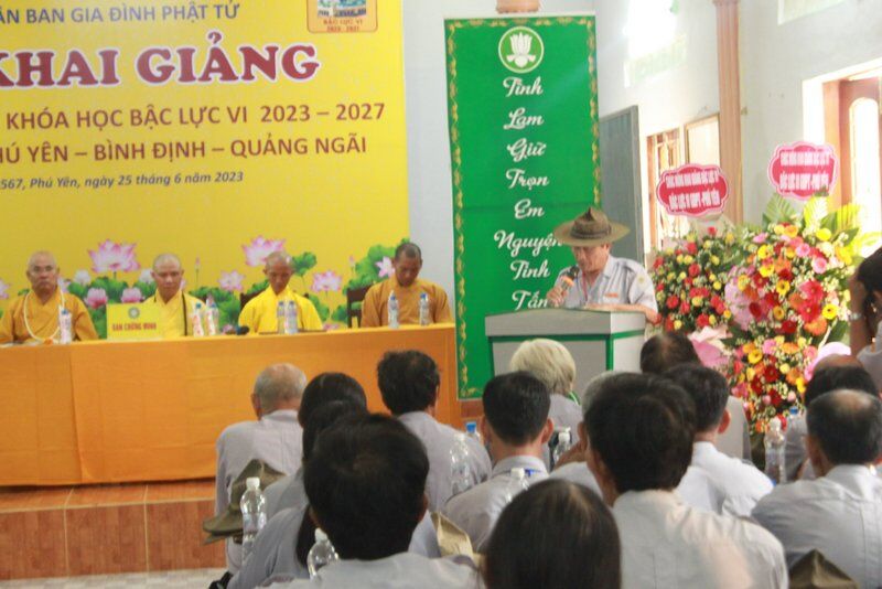 Diễn từ của Thượng toạ Thích Quảng Tế – Uỷ viên Ban HDPT Trung ương, Trưởng ban HDPT tỉnh Phú Yên ngắn gọn nhưng thấm đậm tình nghĩa Thầy trò, chạm đến trái tim từng học viên tham dự. Thầy mong rằng khi hoàn thành chương trình bậc Lực VI quý anh chị học viên sẽ đông đủ như hôm nay và Ban Hướng dẫn Phật tử BTS GHPGVN tỉnh Phú Yên sẽ lại được đón học viên bậc Lực VI cả nước về kết khoá như đón những đứa con xa về với chính ngôi nhà của mình.