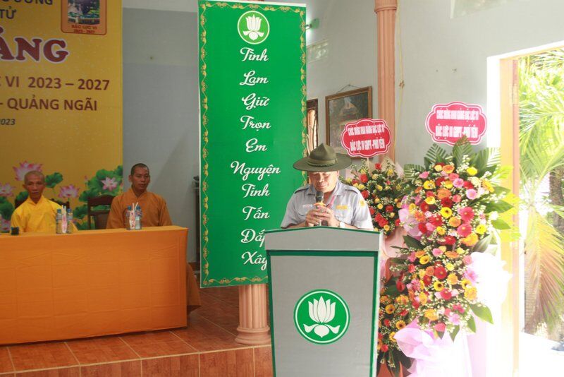 Phát biểu khai mạc, Huynh trưởng cấp Tấn Tâm Tựu Nguyễn Lai tỏ bày lòng niệm ân, tri ân Chư tôn Thiền đức lãnh đạo Ban Trị sự GHPGVN tỉnh Phú Yên, TP Tuy Hòa, các ban, ngành trực thuộc, Trường TCPH Liễu Quán cũng như Chư tôn đức Tổ đình Bảo Lâm đã thương tưởng trợ duyên khuyến tấn từ vất chất cho đến tinh thần, đây là nguồn năng lượng tích cực lan tỏa sâu rộng đến từng học viên trên bước đường tu học phụng sự tổ chức, phụng đạo xây đời.