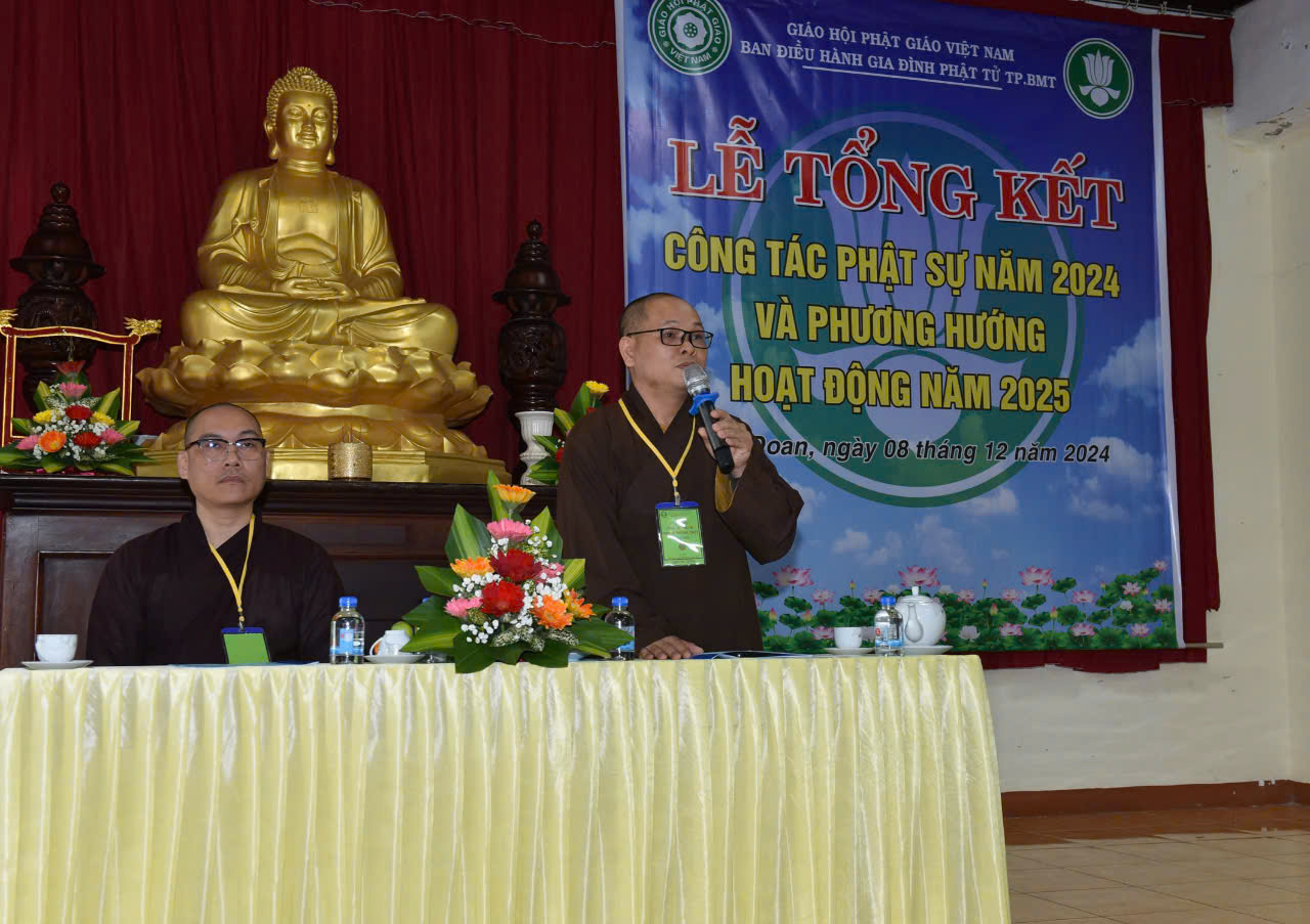 Thay mặt Ban Trị sự GHPG TPBMT ĐĐ Thích Tịnh Quang đã ban đạo từ cho hội nghị, Thầy tán thán những thành tựu mà tập thể ban Điều hành và các đơn vị GĐPT làm được trong năm qua, phát huy năng lực, tích cực phụng sự Đạo pháp và xây dựng xã hội tốt đẹp trên tinh thần Bi Trí Dũng của người Phật tử, xây dựng cũng cố các đơn vị còn yếu để cùng nhau phát triển. Ban Trị Sự cũng tặng những món quà chúc mừng hội nghị.