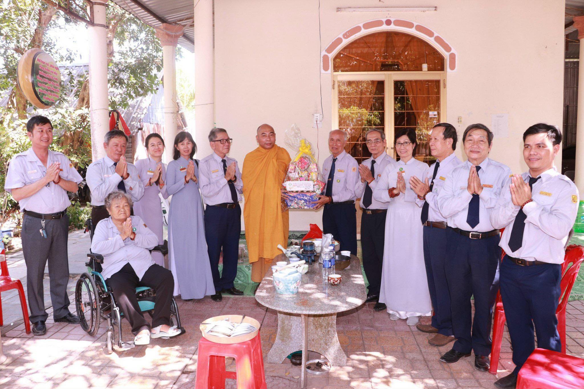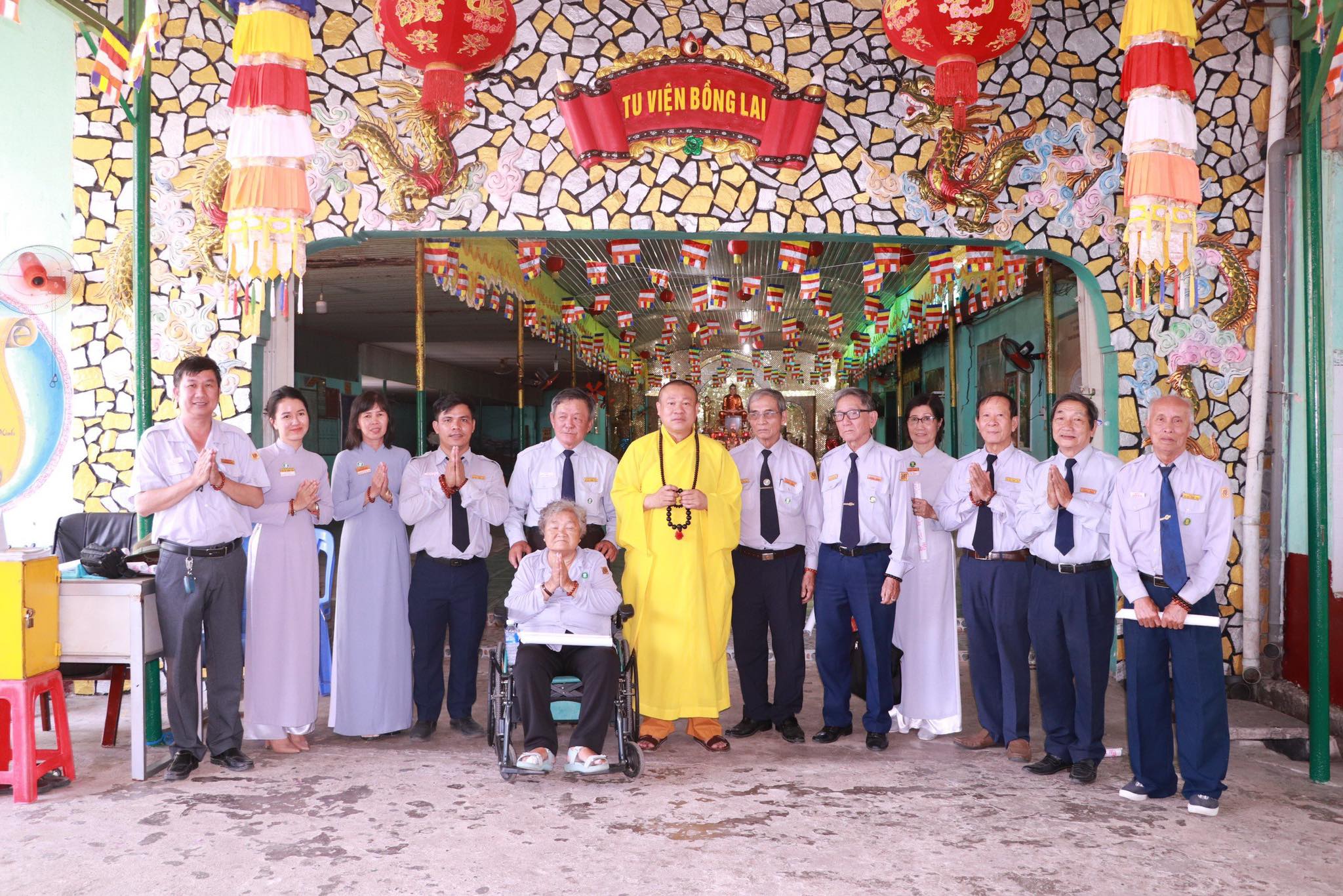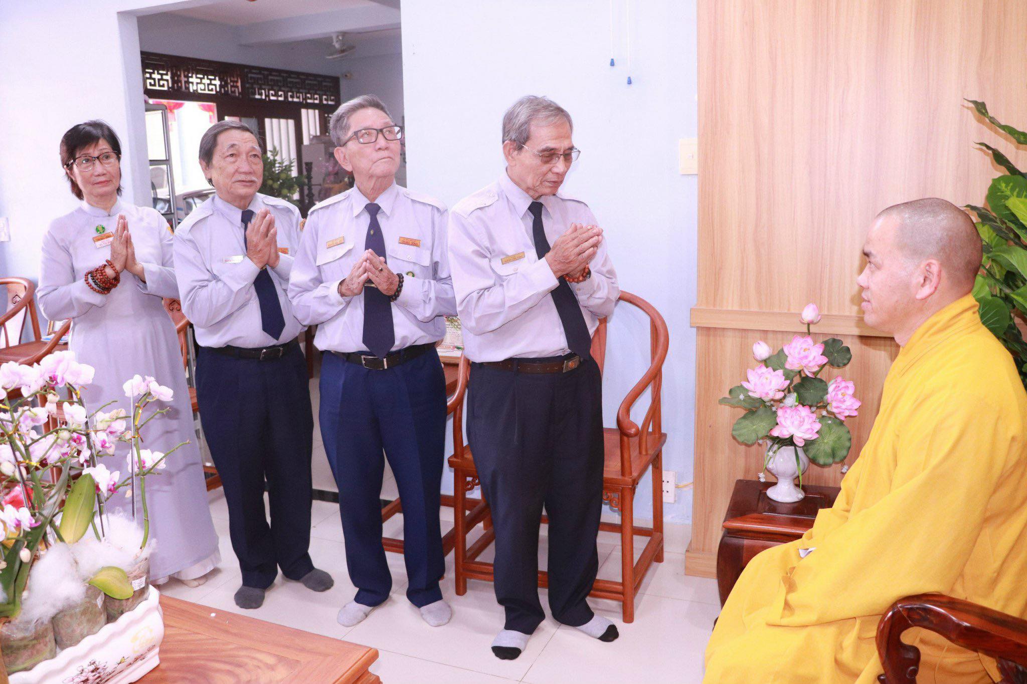 Tháp tùng đoàn có các anh chị trong Phân ban Trung ương và tỉnh. Đoàn đã đến tổ đình Vạn Phật Quang – Đại Tòng Lâm tự vấn an Trưởng lão HT Thích Quảng Hiển – thành viên thường trực HĐCM Trung ương GHPGVN và TT. Thích Nhuận Nghĩa – Uỷ viên HĐTS – Phó Trưởng ban thường trực, Ni viện Thiện Hoà vấn an Ni trưởng Thích nữ Như Như – Phó Trưởng ban thường trực Phân ban Ni giới trung ương cùng chư tôn giáo phẩm thường trực BTS và Ban HDPT GHPGVN tỉnh. Tại Vạn Phật Quang – Đại Tòng Lâm.