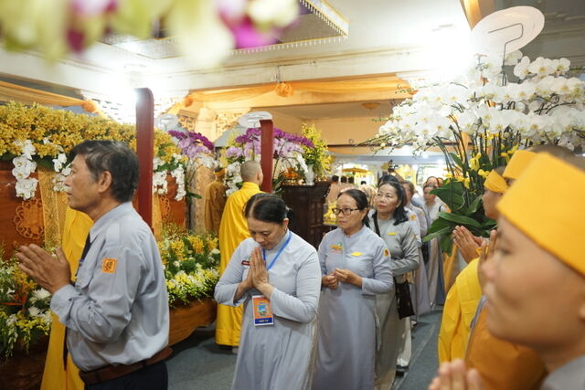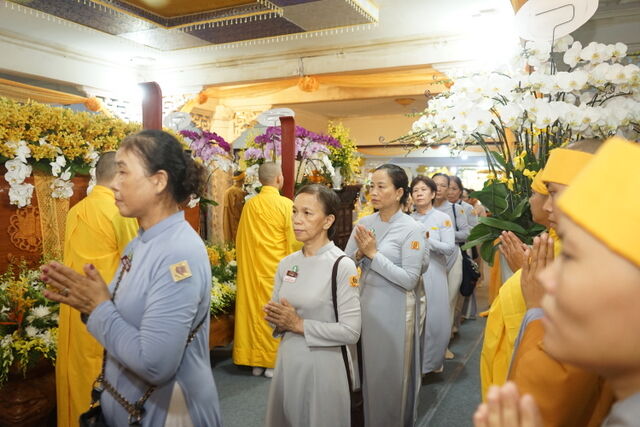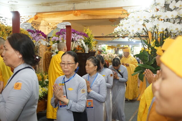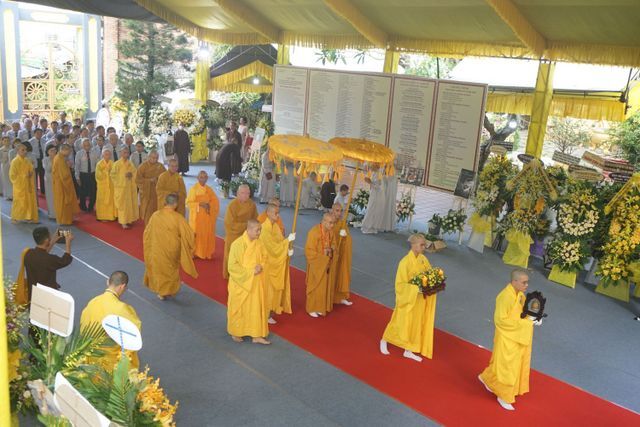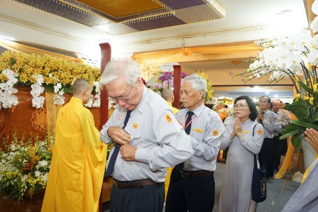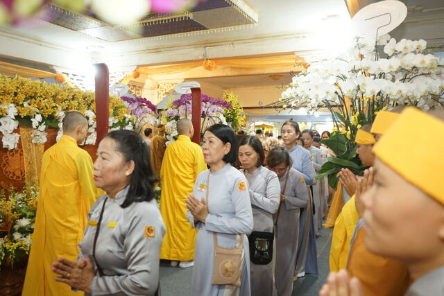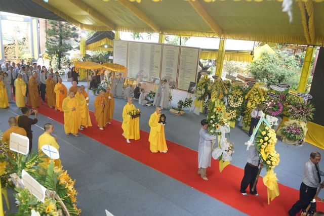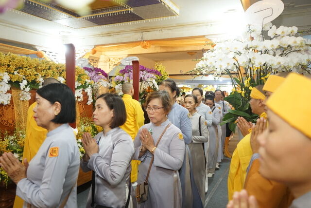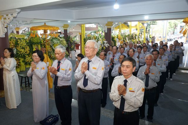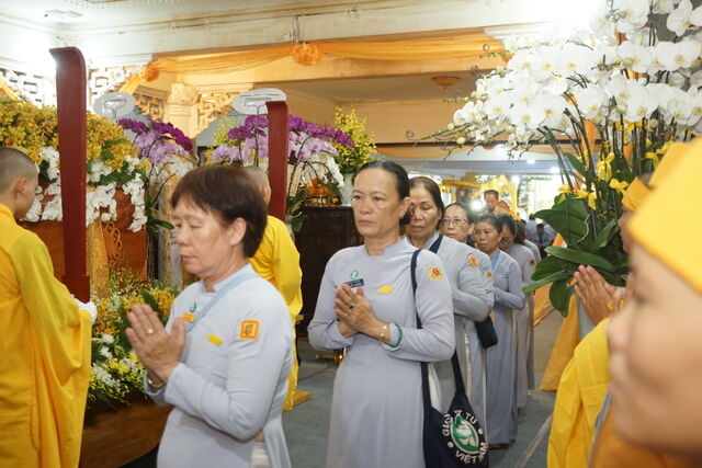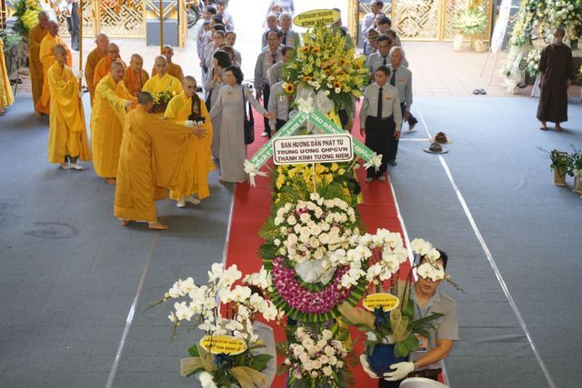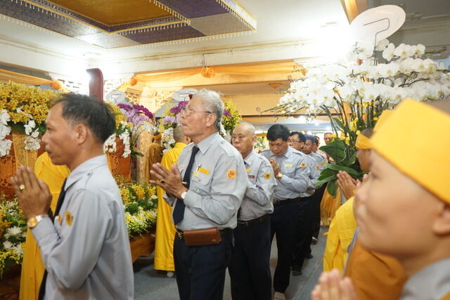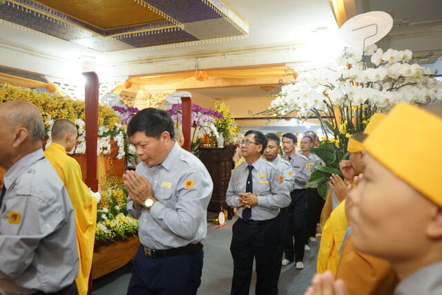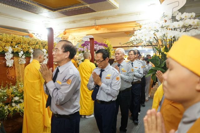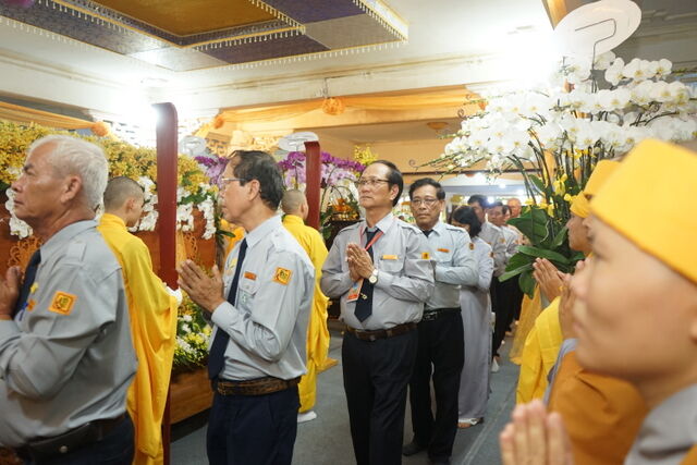 Trước Giác linh đài của Cố Trưởng lão Hòa thượng Thích Thiện Toàn, đoàn đã trang nghiêm thành kính thọ tang, nhiễu kim quan và đảnh lễ Giác linh Trưởng lão Hòa thượng, cầu nguyện Giác linh Trưởng lão Hòa thượng cao đăng Phật quốc.