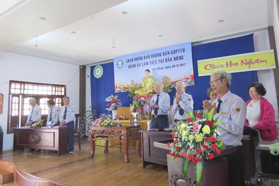 Về phía đơn vị sở tại có: Anh HTr cấp Tấn Thị Vân – Lê Văn Tuyển, UV BHD PB GĐPT TW, UV Thường trực BTS GHPGVN tỉnh, Trưởng Phân ban GĐPT tỉnh Đăk Nông; Chị HTr cấp Tấn Nguyên Liên – Phạm Thị Vinh Hoa, Phó BHD PB GĐPT tỉnh; Anh HTr cấp Tấn Tâm Lý – Lê Văn Tiển, Phó BHD PB GĐPT tỉnh; Cùng các anh chị thành viên BHD PB GĐPT tỉnh và đại diện Ban Huynh trưởng các đơn vị về tham dự. Đoàn đã lắng nghe báo cáo các hoạt động của PB GĐPT Đăk Nông trong 5 năm qua và ý kiến của các đơn vị cơ sở. Thay mặt BHD PB GĐPT TW anh Tâm Duệ – Nguyễn Đức Châu đã chỉ ra những việc cần làm, cần phải sửa chữa đồng thời anh cũng đã sách tấn tinh thần anh chị em, nhắc nhở anh chị em luôn thúc liễm thân tâm, trau dồi việc tu học để xây dựng tổ chức áo Lam ngày càng vững mạnh.