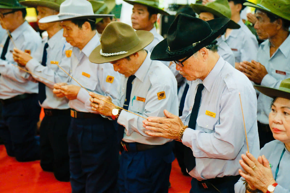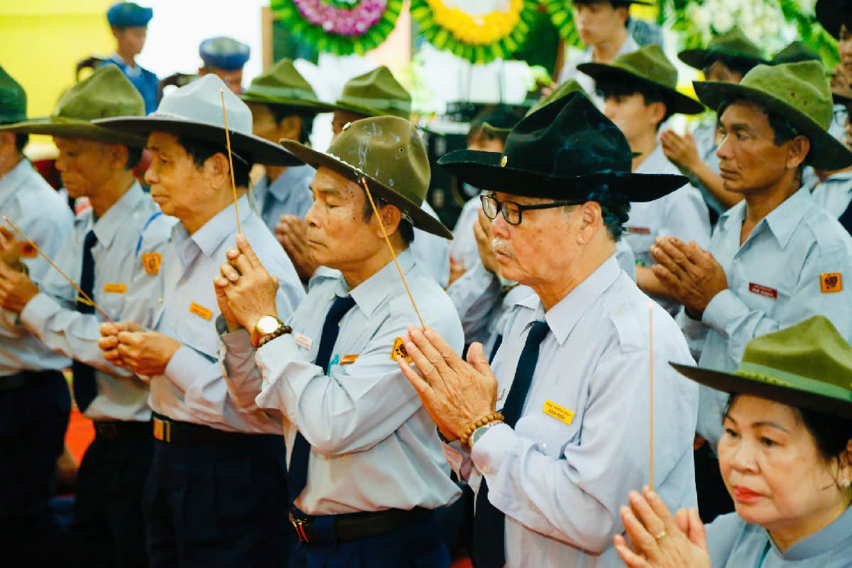 Sau đó, chư Tôn đức và toàn thể Huynh Trưởng đã dâng hương tưởng niệm, đảnh lễ giác linh và nhiễu kim quan nhất tâm cầu nguyện giác linh cố Trưởng lão Hòa thượng cao đăng Phật quốc.