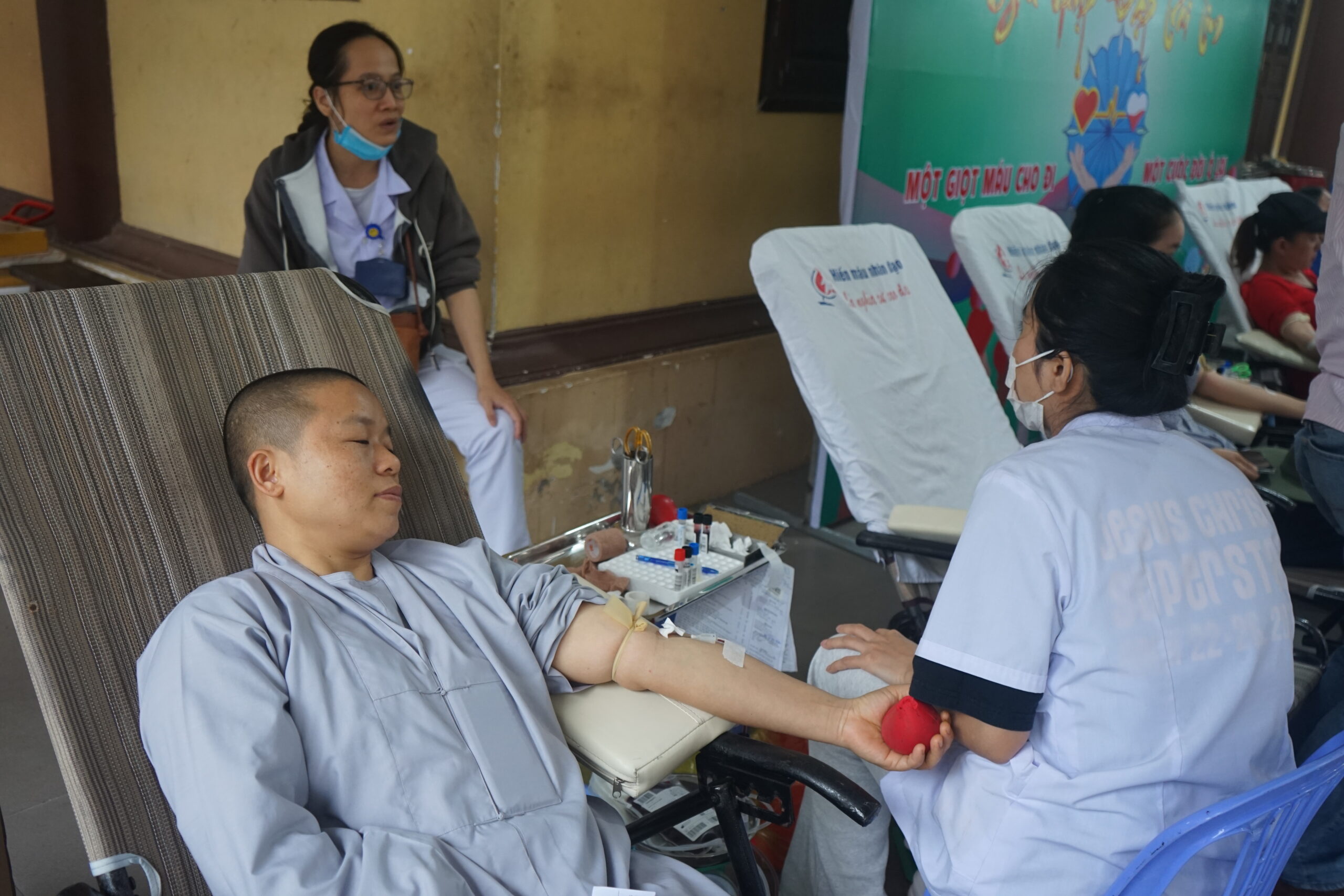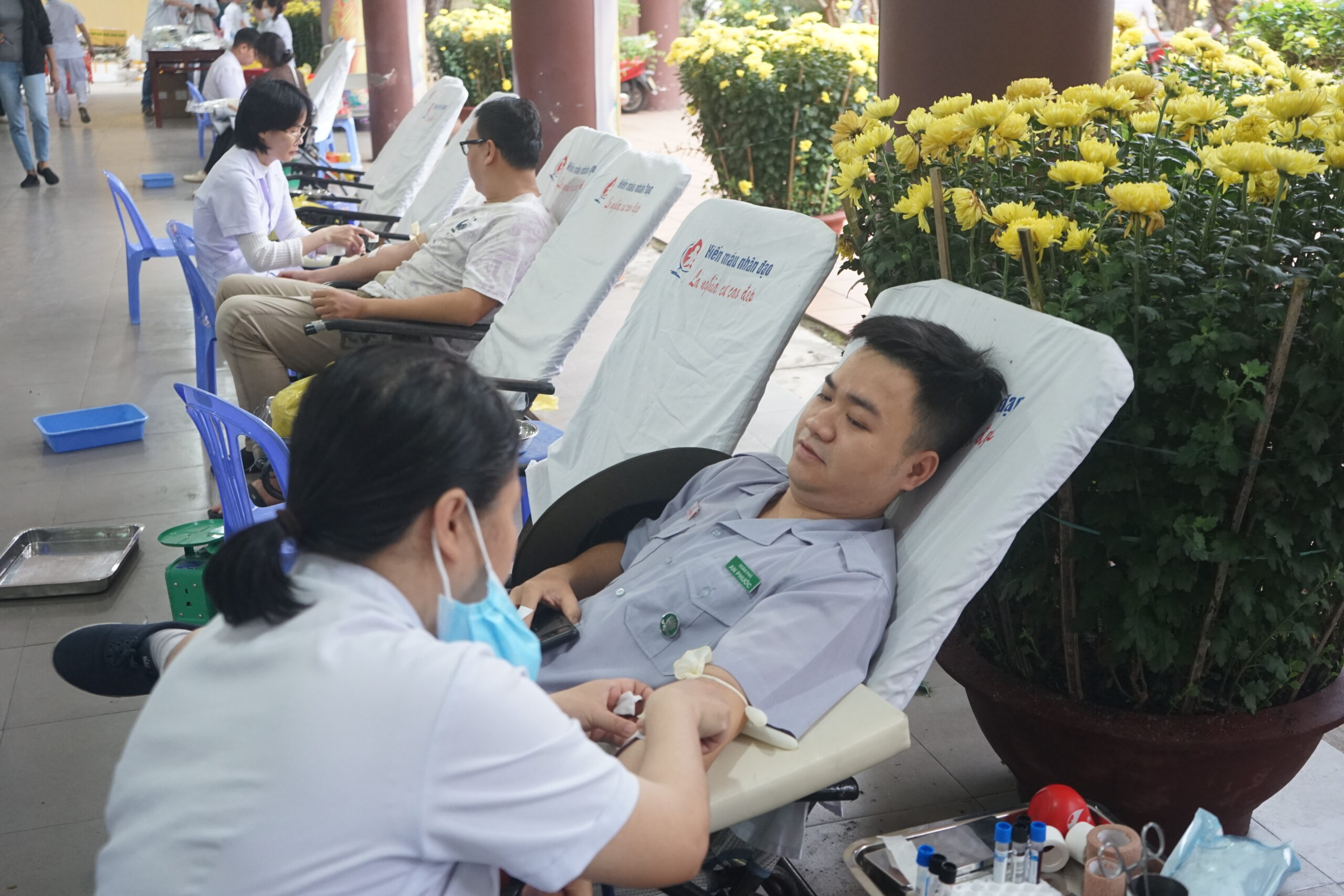 Trong tiết trời ấm áp của những ngày đầu xuân, từ sáng sớm các đoàn viên Gia đình Phật tử, các tình nguyện viên đã nô nức tập trung về chùa Pháp Lâm sẵn sàng hiến những giọt máu hồng để cứu giúp các bệnh nhân.