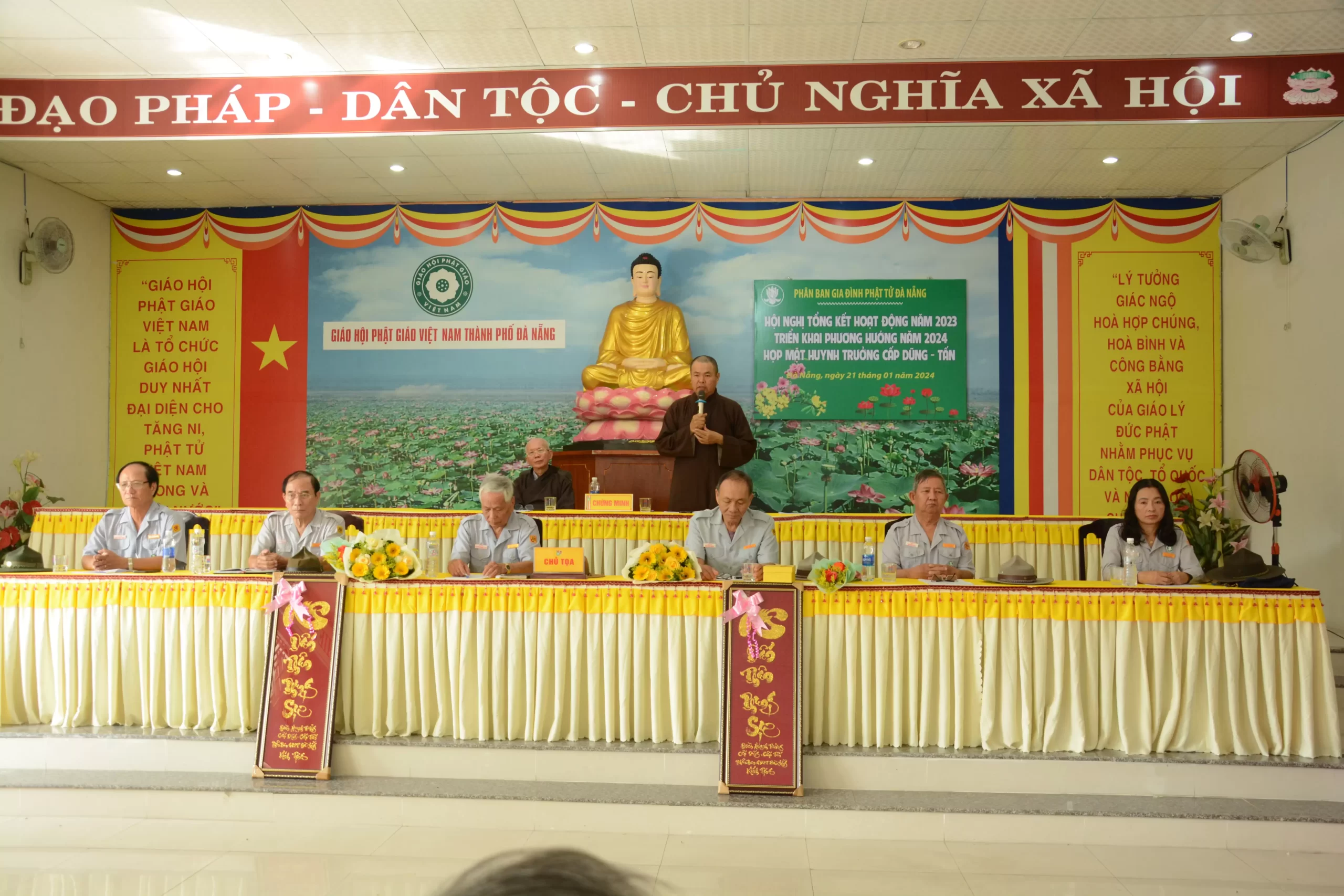 Phát biểu khai mạc hội nghị, Huynh trưởng cấp Dũng Thị Sơn Huỳnh Ngọc Lâm đã dâng lời niệm ân đến Chư Tôn đức Thường trực Ban Trị sự, Ban hướng dẫn Phật tử GHPGVN Tp Đà Nẵng đã thương tưởng đến tổ chức Gia đình Phật tử Đà Nẵng, tạo điều kiện và giúp đỡ về mọi mặt để Gia đình Phật tử hoạt động và phát triển. Đồng thời anh đã gửi lời chúc mừng đến 2 huynh trưởng của Gia đình Phật tử Đà Nẵng đã được tân thăng cấp Dũng, cấp cao nhất của tổ chức Gia đình Phật tử vào những ngày đầu năm 2024 là huynh trưởng Tâm Lập Lê Hà Thọ và huynh trưởng Đồng Hạ Đỗ Tiến Sanh.