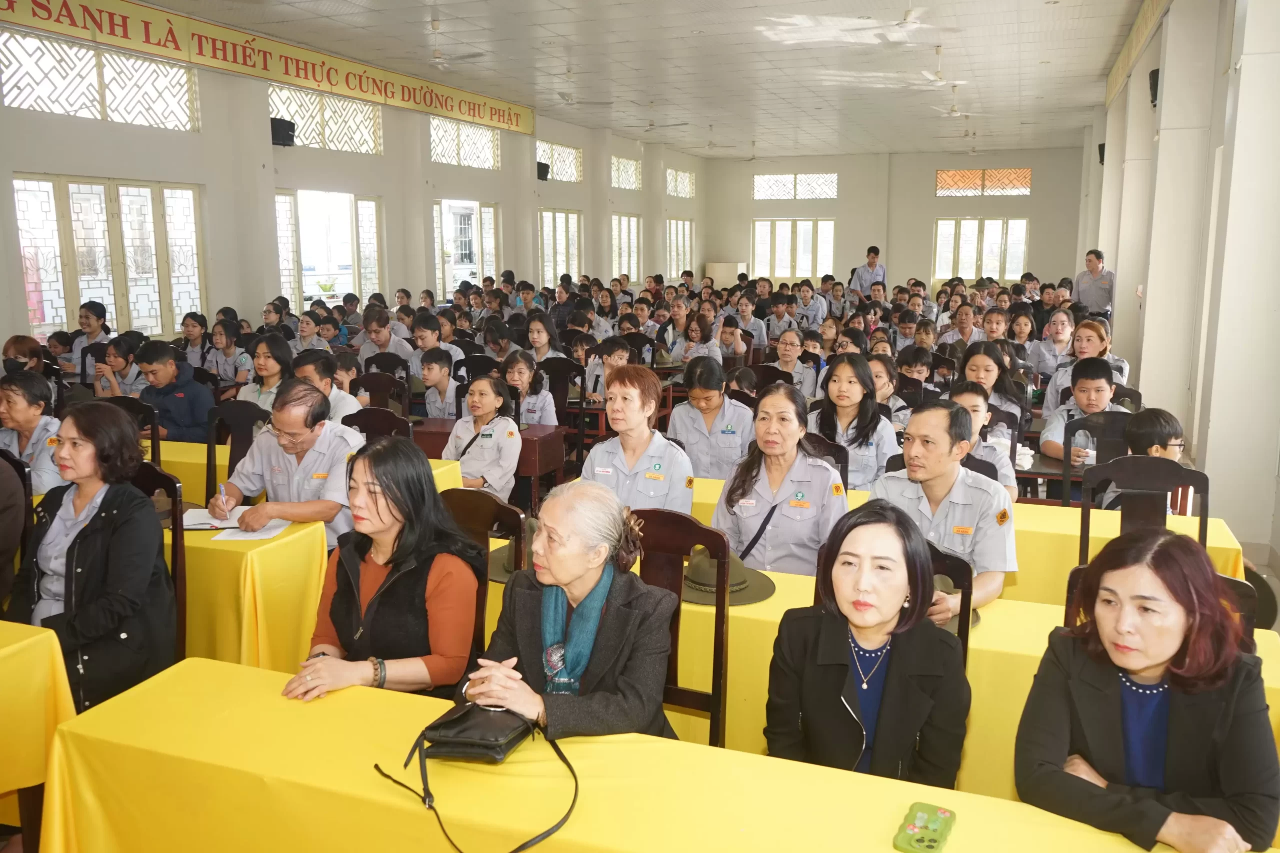 Đại diện các nhà hảo tâm có cư sĩ Đồng Phú Phạm Hường và cư sĩ Quảng Liên Đỗ Thị Diệu Hoa – Đồng phó Phân ban cư sĩ GHPGVN Tp Đà Nẵng; cư sĩ Mai Thị Lệ Thủy và Nguyễn Thị Thanh Quế – Thành viên Ban bảo trợ Gia đình Phật tử Đà Nẵng cùng các nhà hảo tâm.