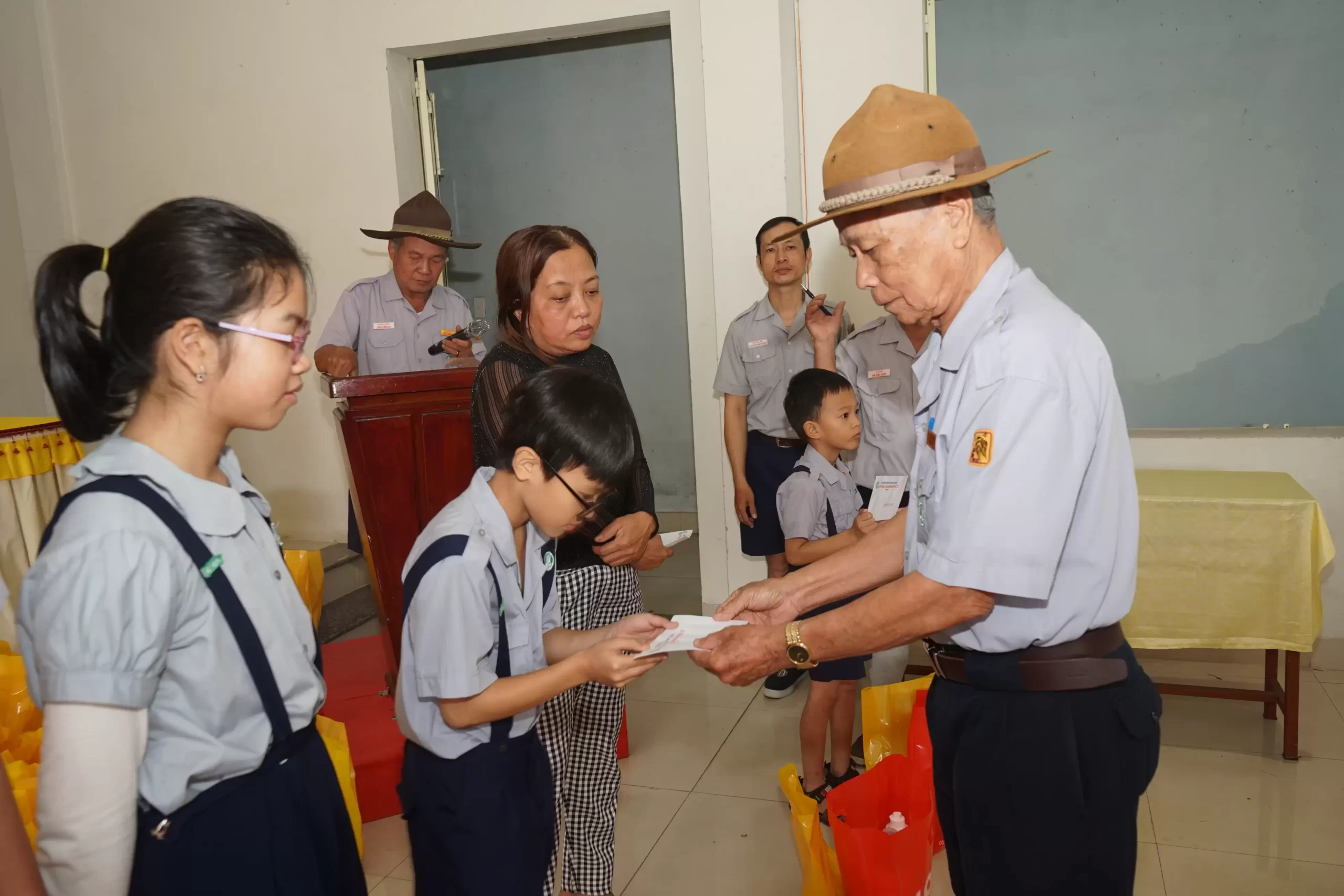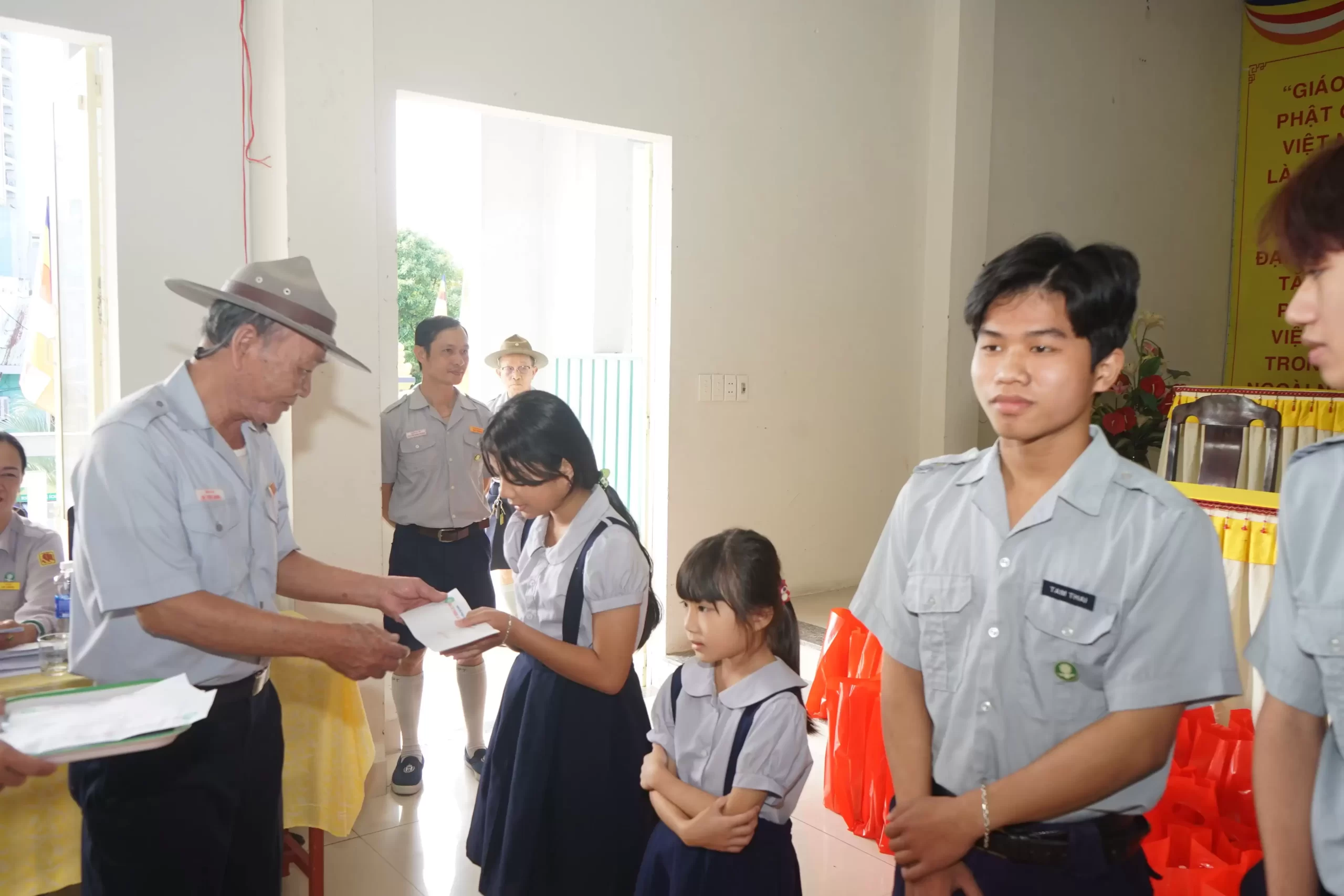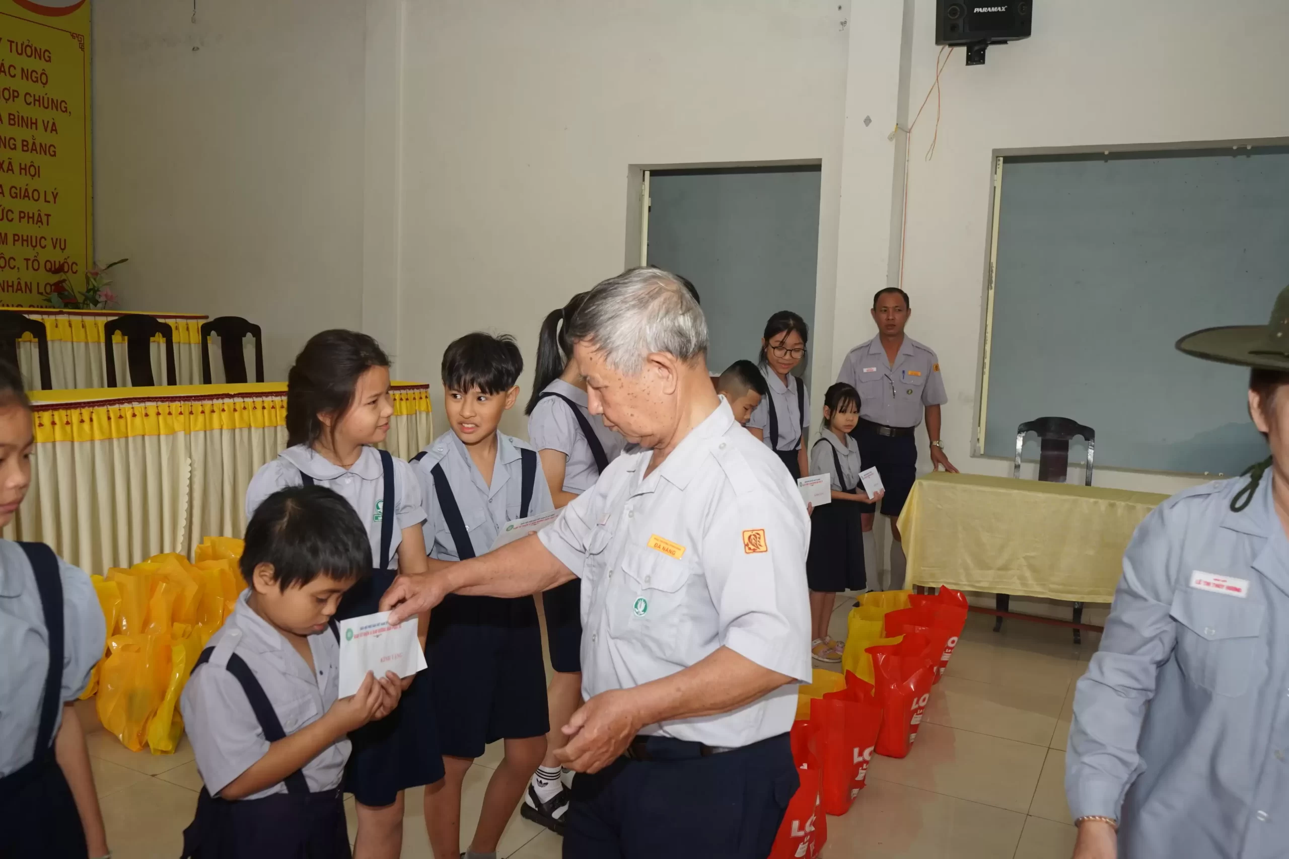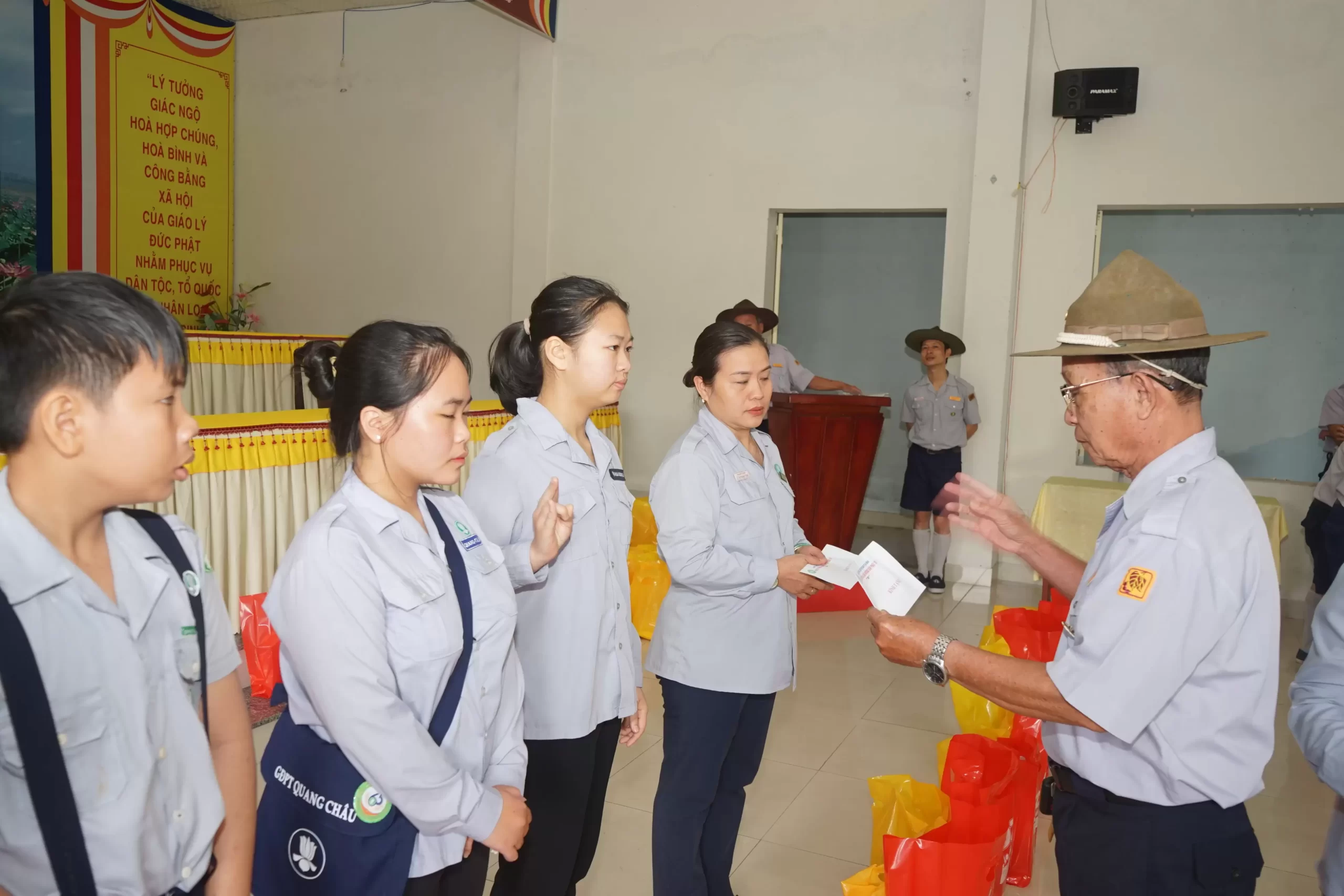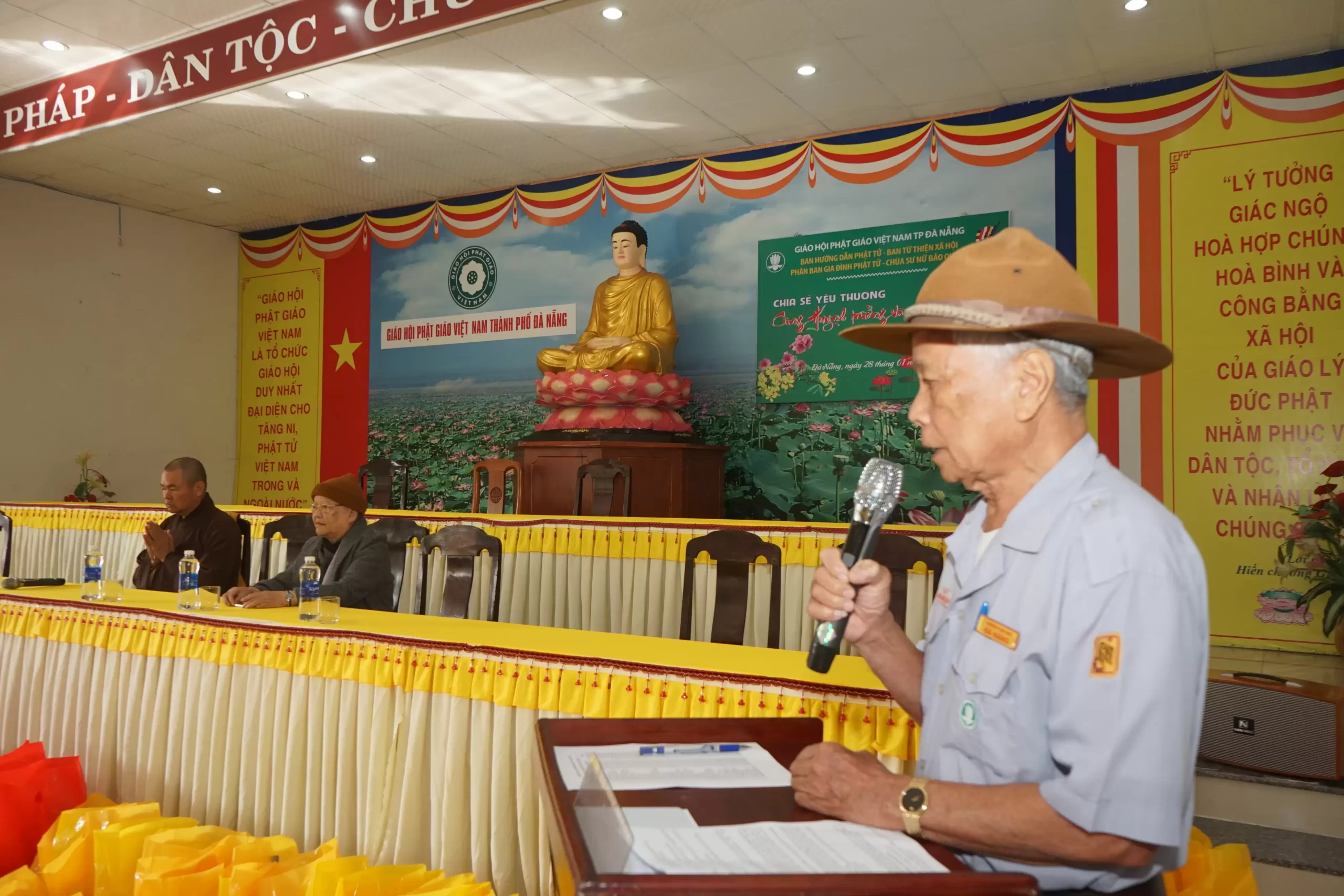 Phát biểu tại buổi lễ, Huynh trưởng cấp Dũng Thị Sơn Huỳnh Ngọc Lâm đã bày tỏ lòng biết ơn đến Chư Tôn đức Ban hướng dẫn Phật tử; Ban từ thiện xã hội GHPGVN Tp Đà Nẵng; Ni trưởng Thích Nữ Diệu Cảnh – Trưởng Phân ban Ni giới Tp Đà Nẵng, viện chủ chùa Bảo Quang cùng Chư Tôn đức Tăng Ni, các nhà hảo tâm đã thương tưởng đến tổ chức áo Lam, hỗ trợ tịnh tài, tịnh vật để trao tặng cho các em nhân dịp tết cổ truyền của dân tộc.