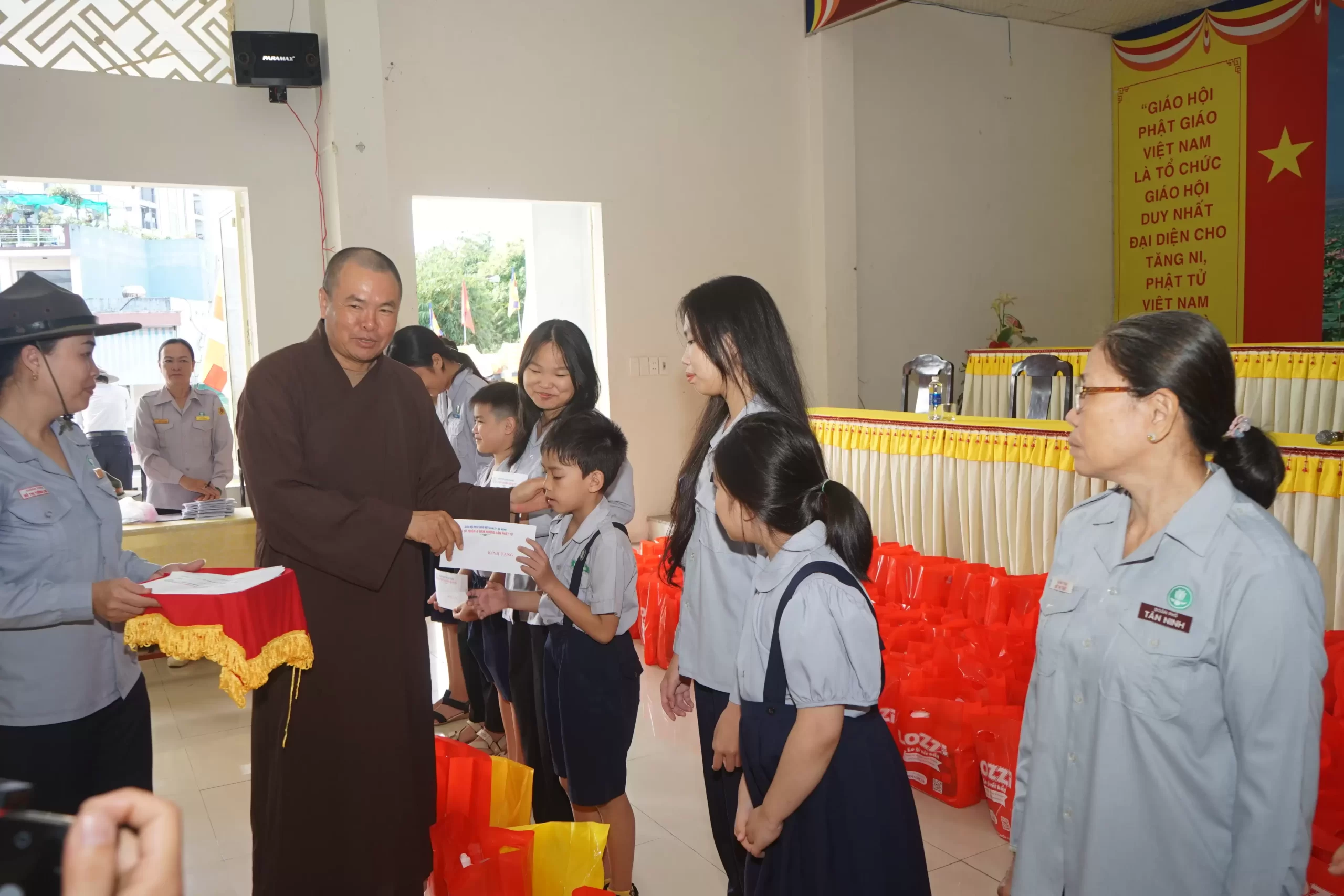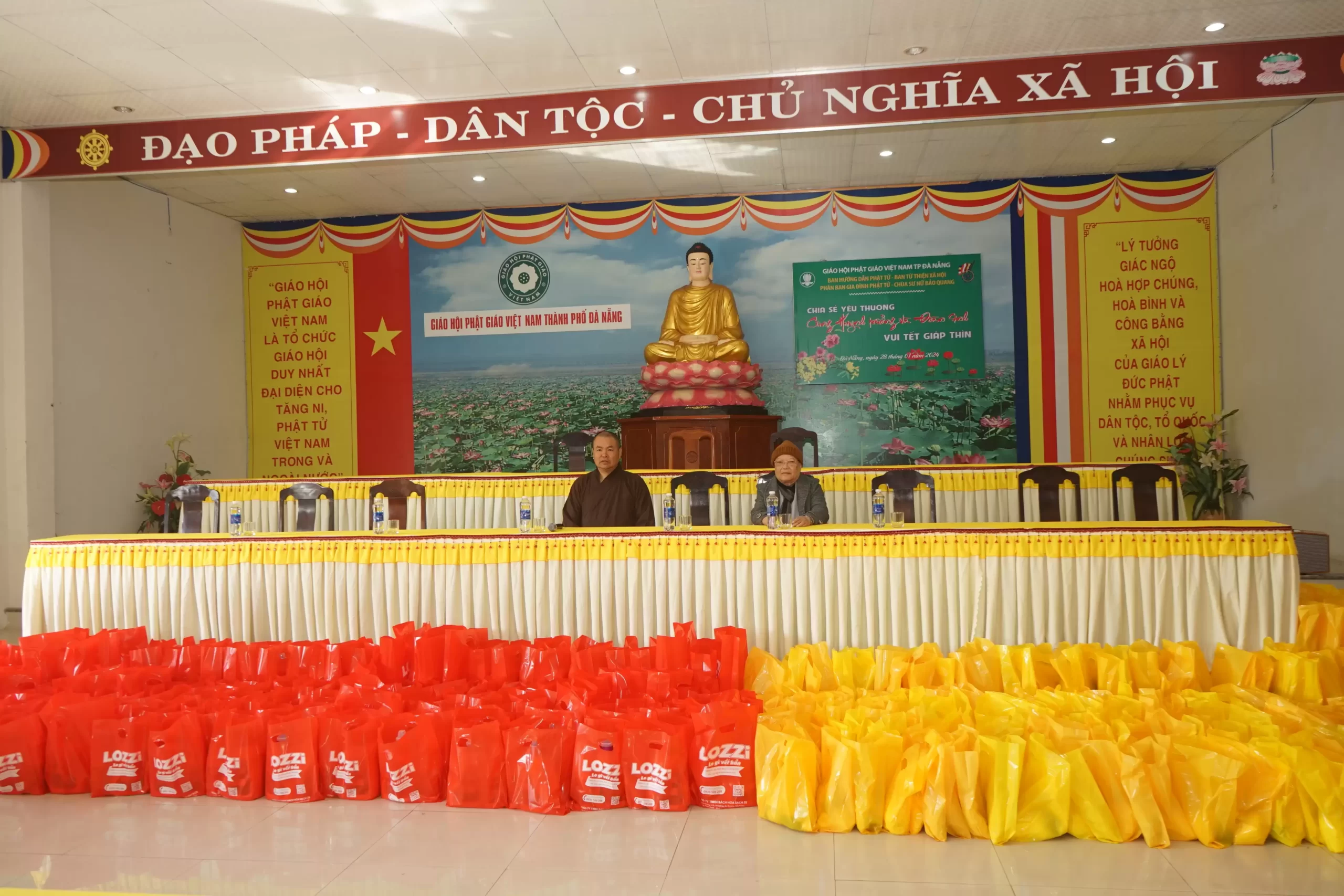 Quang lâm chứng minh và tham dự buổi trao tặng quà có Thượng tọa Thích Pháp Châu – Phó Trưởng Ban Trị sự kiêm Trưởng Ban hướng dẫn Phật tử GHPGVN Tp Đà Nẵng; Ni sư Thích Nữ Tịnh Minh – Trú trì chùa Bàu Sen.