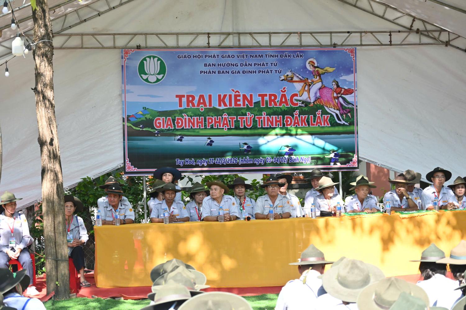 Ngay từ lễ khai mạc, không khí trại đã trở nên trang nghiêm với nghi thức truyền thống, thể hiện tinh thần tổ chức chặt chẽ và ý chí quyết tâm của toàn thể trại sinh. Quang lâm chứng minh có sự hiện diện của Trưởng ban trị sự Giáo hội Phật giáo Việt Nam tỉnh Đăk Lăk Thượng tọa Thích Nguyên Minh, cùng Chư Tôn Đức chứng minh.