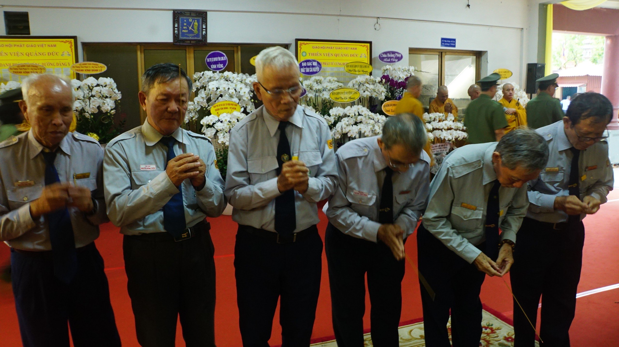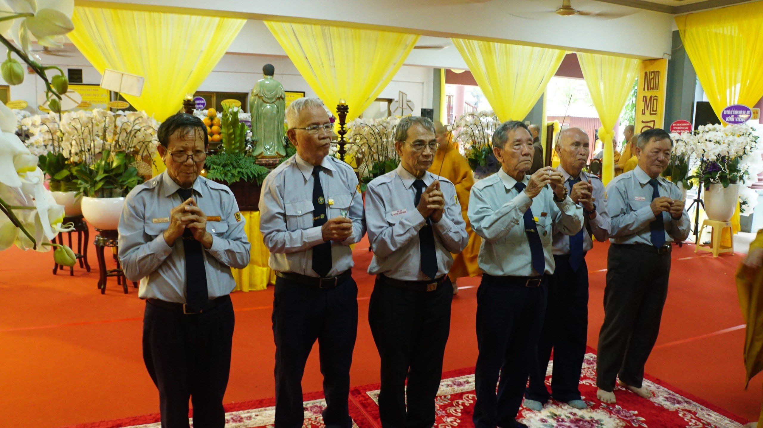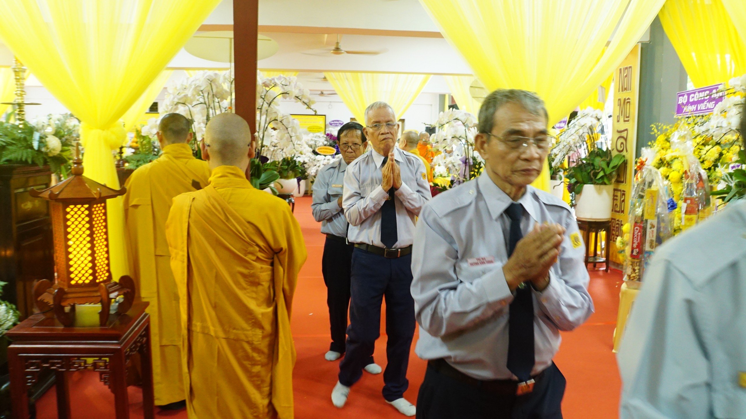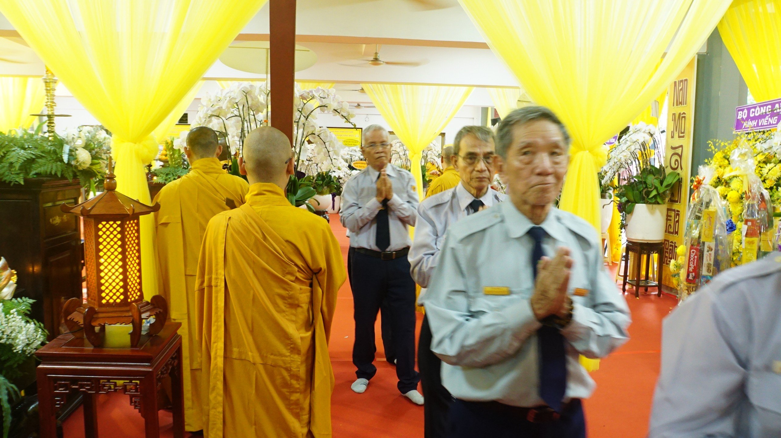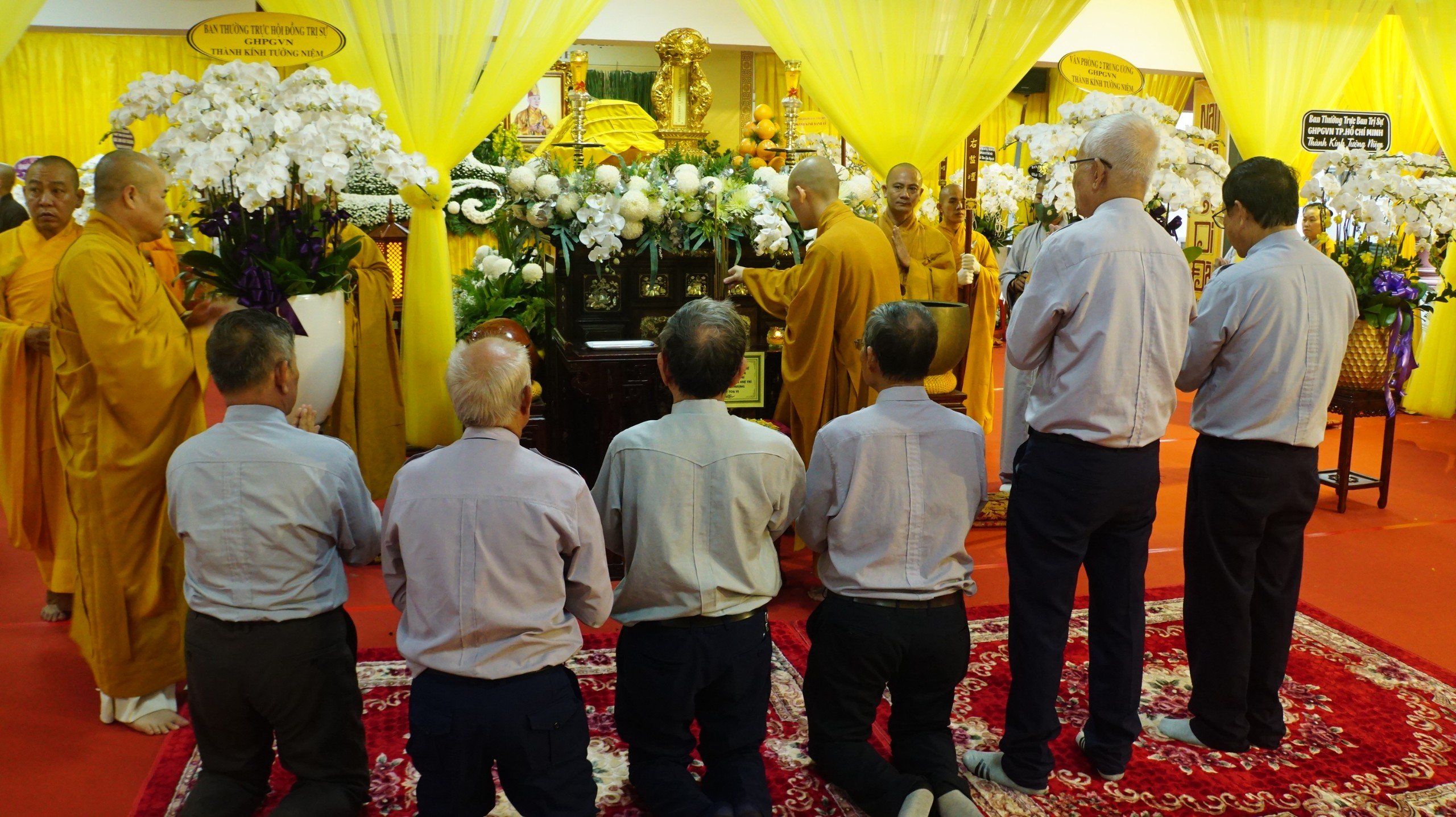 Sau nghi thức đảnh lễ Tam bảo, trước Giác linh đài cố HT. Thích Huệ Trí đoàn đã dâng hương và tưởng niệm, sau đó thực hiện nghi thức hữu nhiễu kim quan cố HT. Thích Huệ Trí.