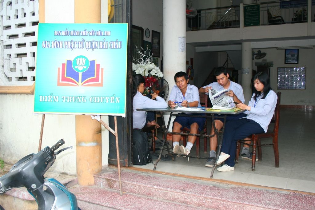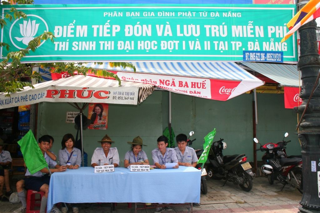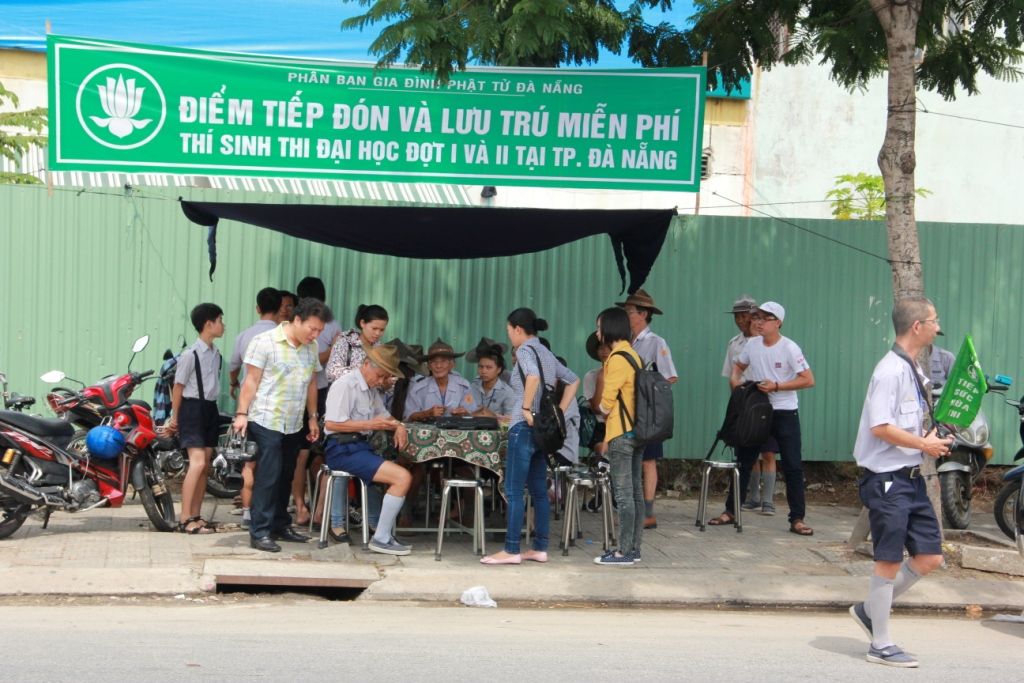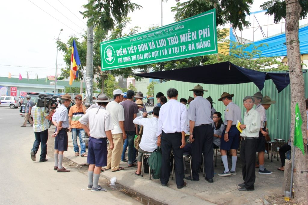 Tại các điểm tiếp đón Ngã ba Huế, Văn phòng Phân ban GĐPT Đà Nẵng, Cầu vượt Hòa Cầm và điểm trung chuyển tại chùa Tân Hòa, dù lượng thí sinh đến không đông như điểm Bến xe trung tâm, nhưng các Tình nguyện viên áo lam vẫn không rời vị trí, sẵn sàng để hổ trợ khi có thí sinh đến