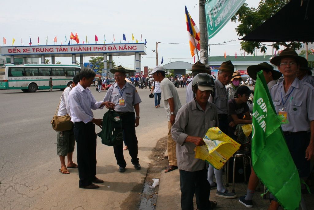 Rời chùa Mỹ Khê, đoàn tiếp tục đến điểm tiếp đón tại Bến xe trung tâm Tp Đà Nẵng, tại đây mới cảm nhận được không khí nhộn nhịp, tấp nập và khẩn trương của ban điều hành và các Tình nguyện viên khi lượng thí sinh đến càng lúc càng đông. Huynh trưởng cấp Tấn Thị Sơn Huỳnh Ngọc Lâm – Trưởng BHD PBGĐPT Đà Nẵng cũng có mặt tại đây để thăm hỏi, đôn đốc và hổ trợ các Tình nguyện viên. Các phóng viên của HTV, báo Tiền Phong cũng có mặt tại đây để ghi nhận những hình ảnh tiếp sức mùa thi của GĐPT Đà Nẵng.