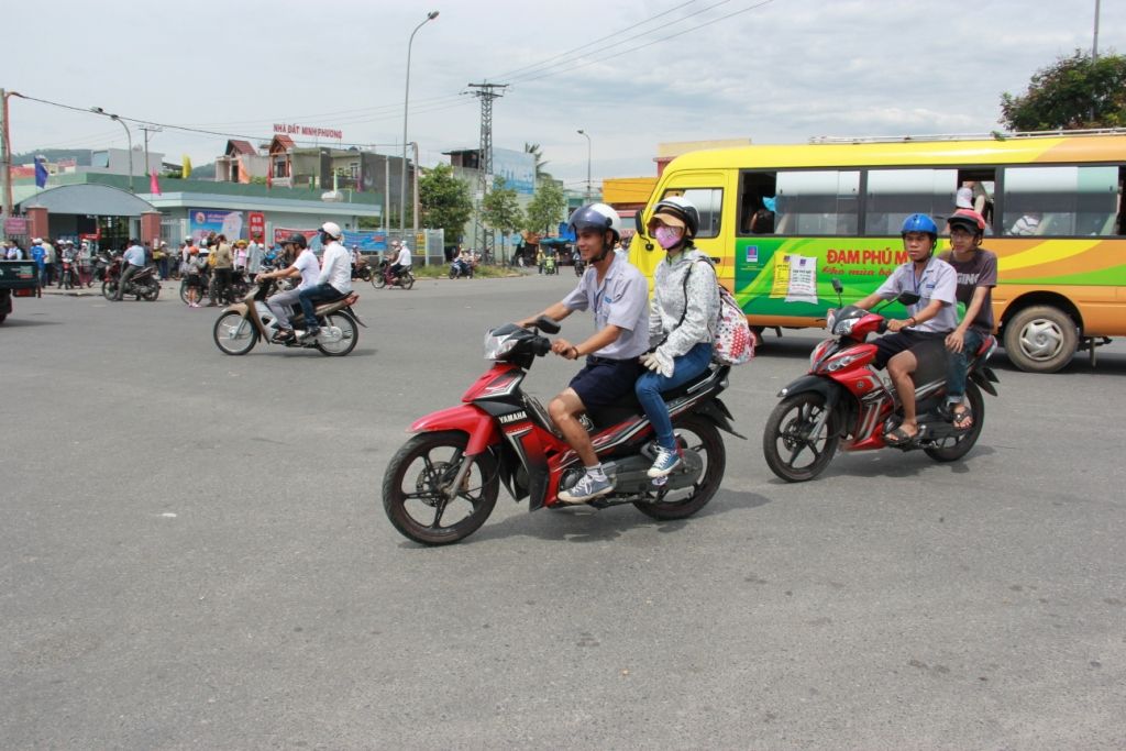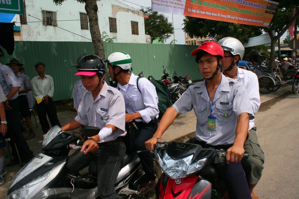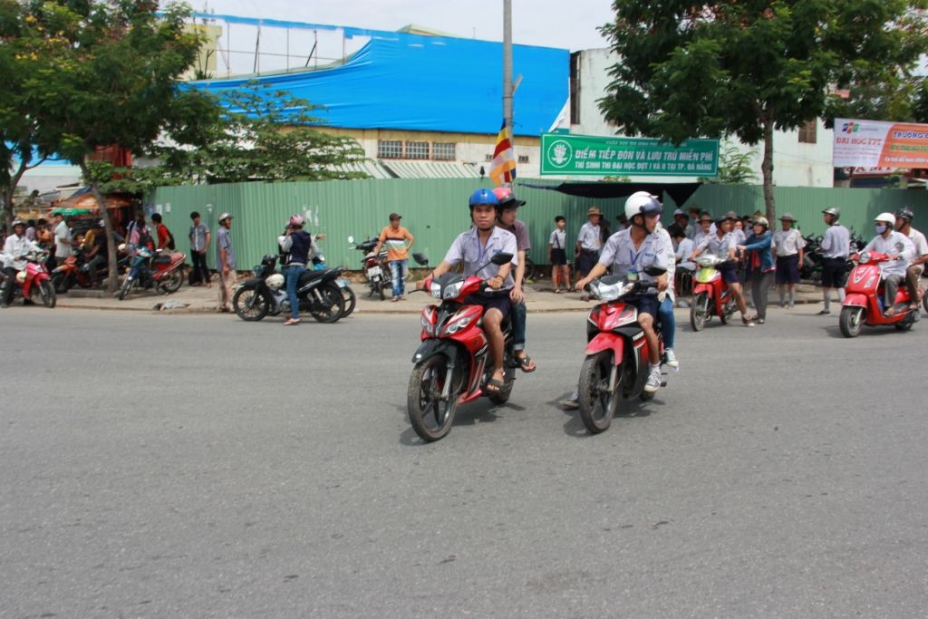 Và những chiếc xe máy của các tình nguyện viên bất chấp nắng nóng đưa thí sinh và người nhà đến điểm lưu trú
