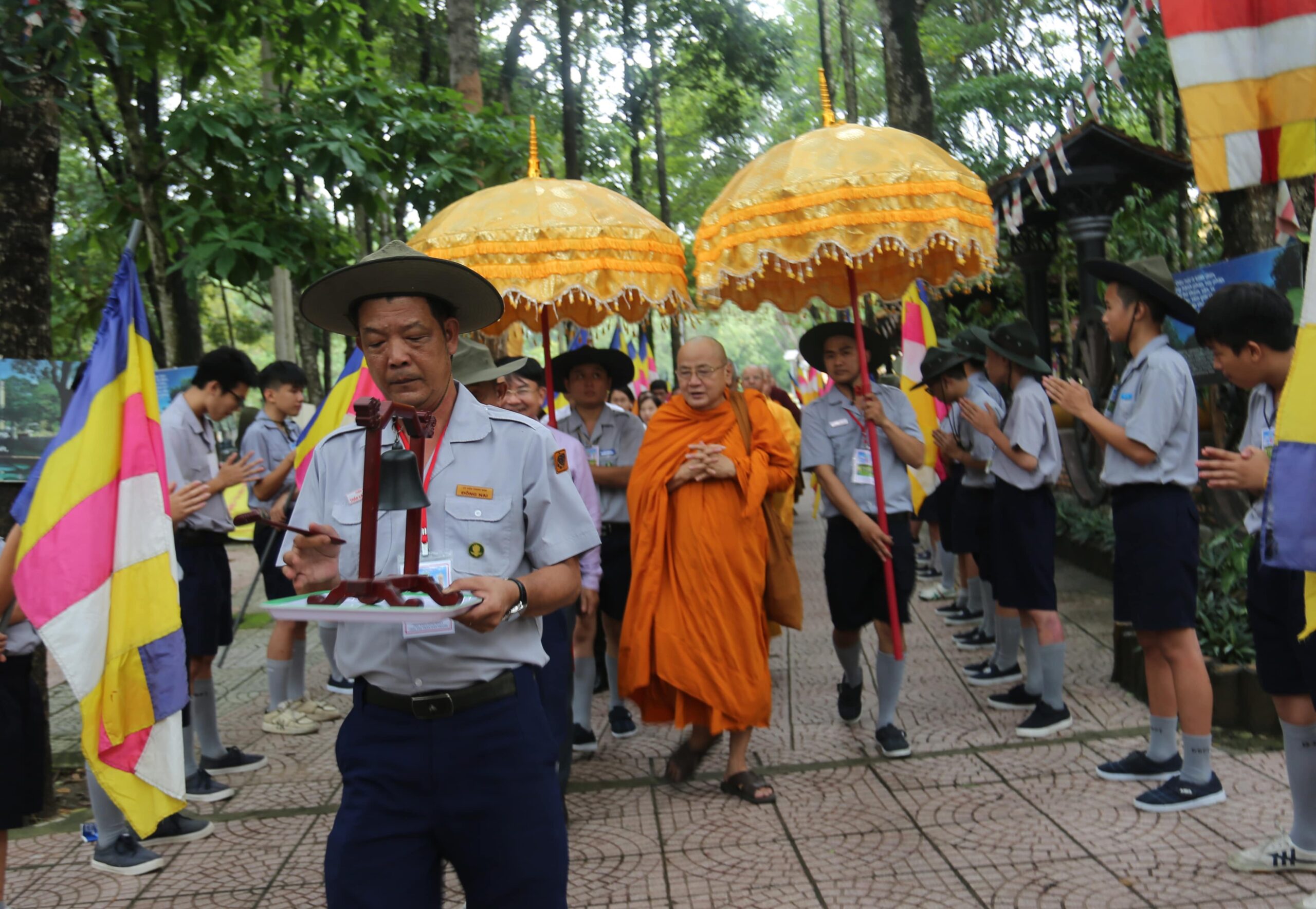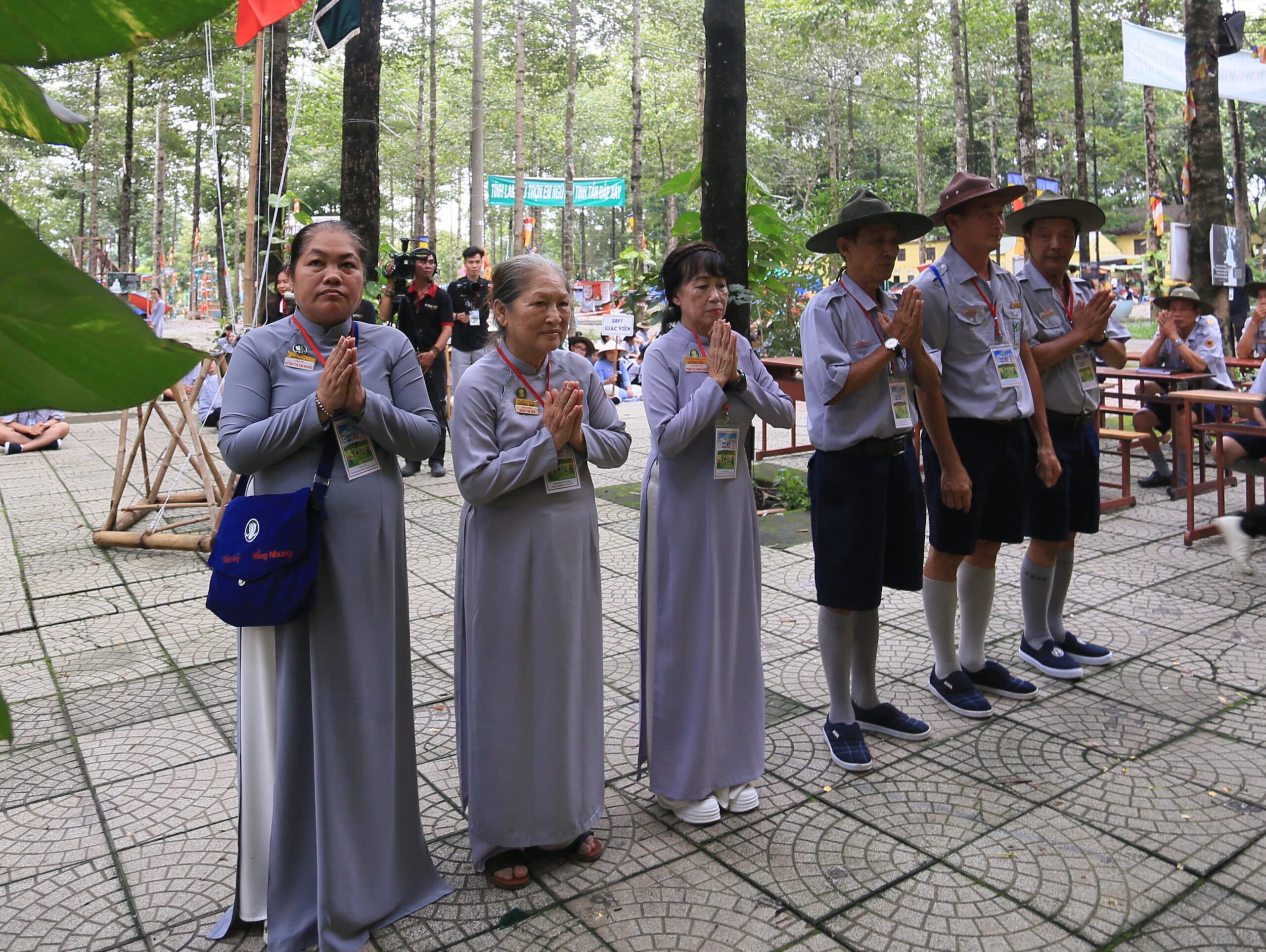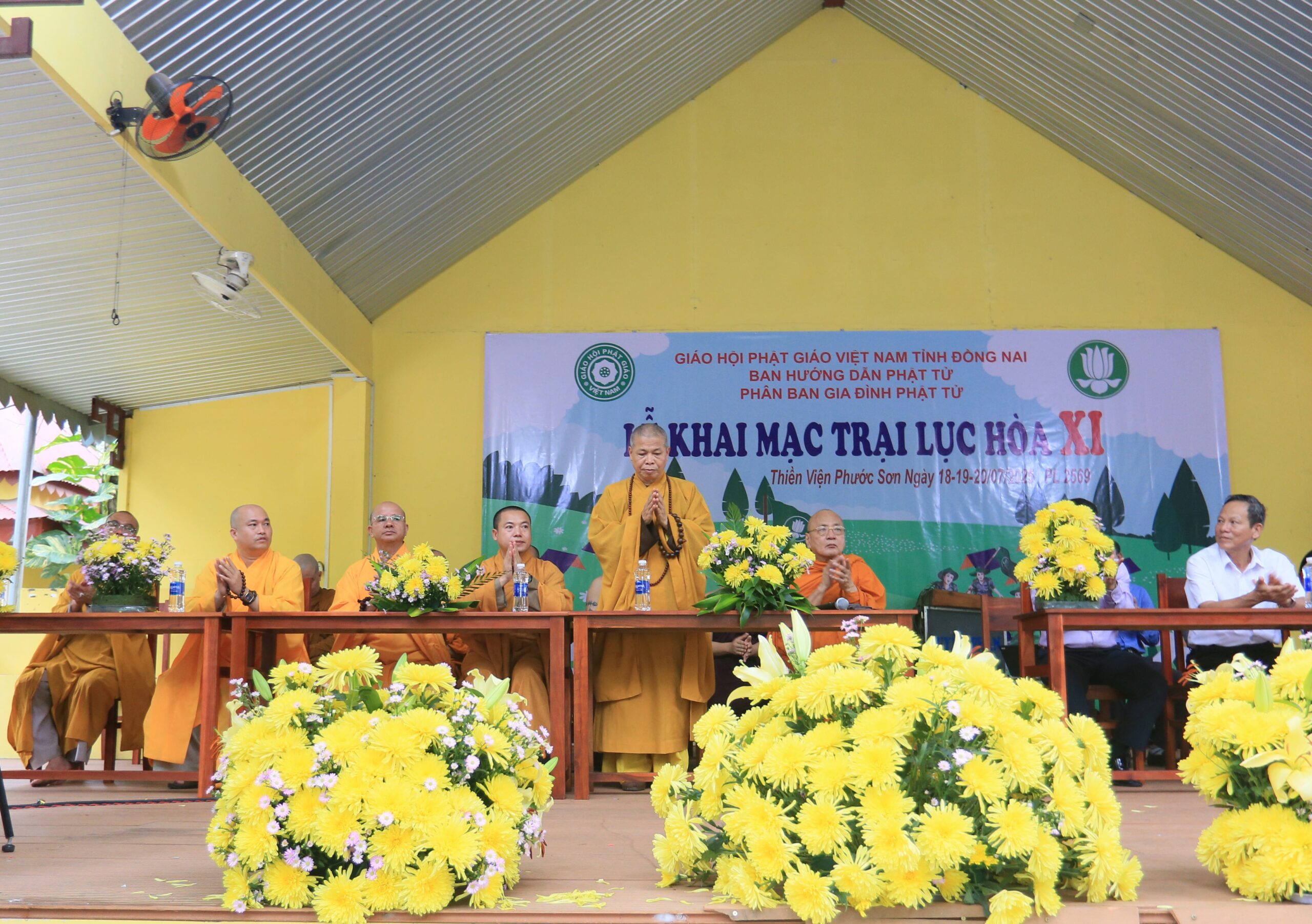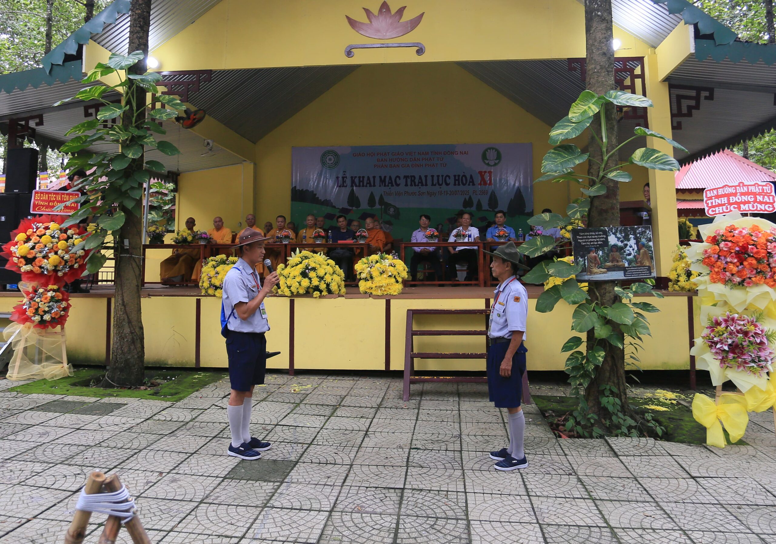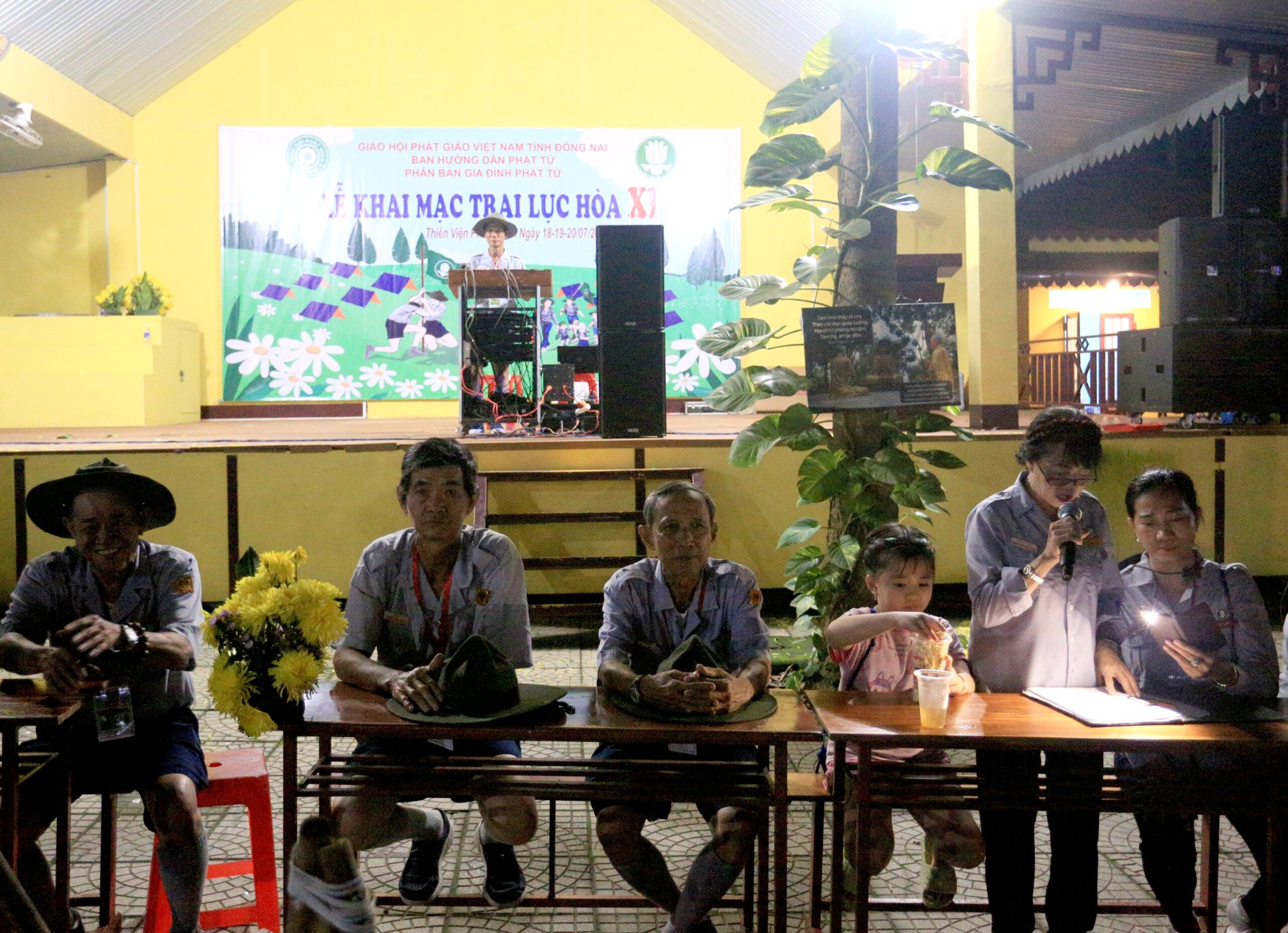 Ban Pháp ngữ trong hội trại lần này, Thượng tọa Thích Huệ Tánh – Trưởng ban Ban Hướng dẫn Phật tử tình Đồng Nai, cố vấn Giáo hạnh Phân ban GĐPT tỉnh, thượng tọa không quên nhắc lại tinh thần Lục hòa không chỉ trong Tăng đoàn mà đây là một pháp tu của Tứ chúng, trong đó có tổ chức GĐPT, vận dụng lục hòa trong đời sống thường nhật, trong sinh hoạt GĐPT sẽ tạo nên niềm tin tưởng, thương yêu lẫn nhau, chia sẽ nhau trong các hoạt động. Hội trại cũng là nơi để quý vị thực hành pháp môn tu nhân thừa (hàng Phật tử tại gia) đó.