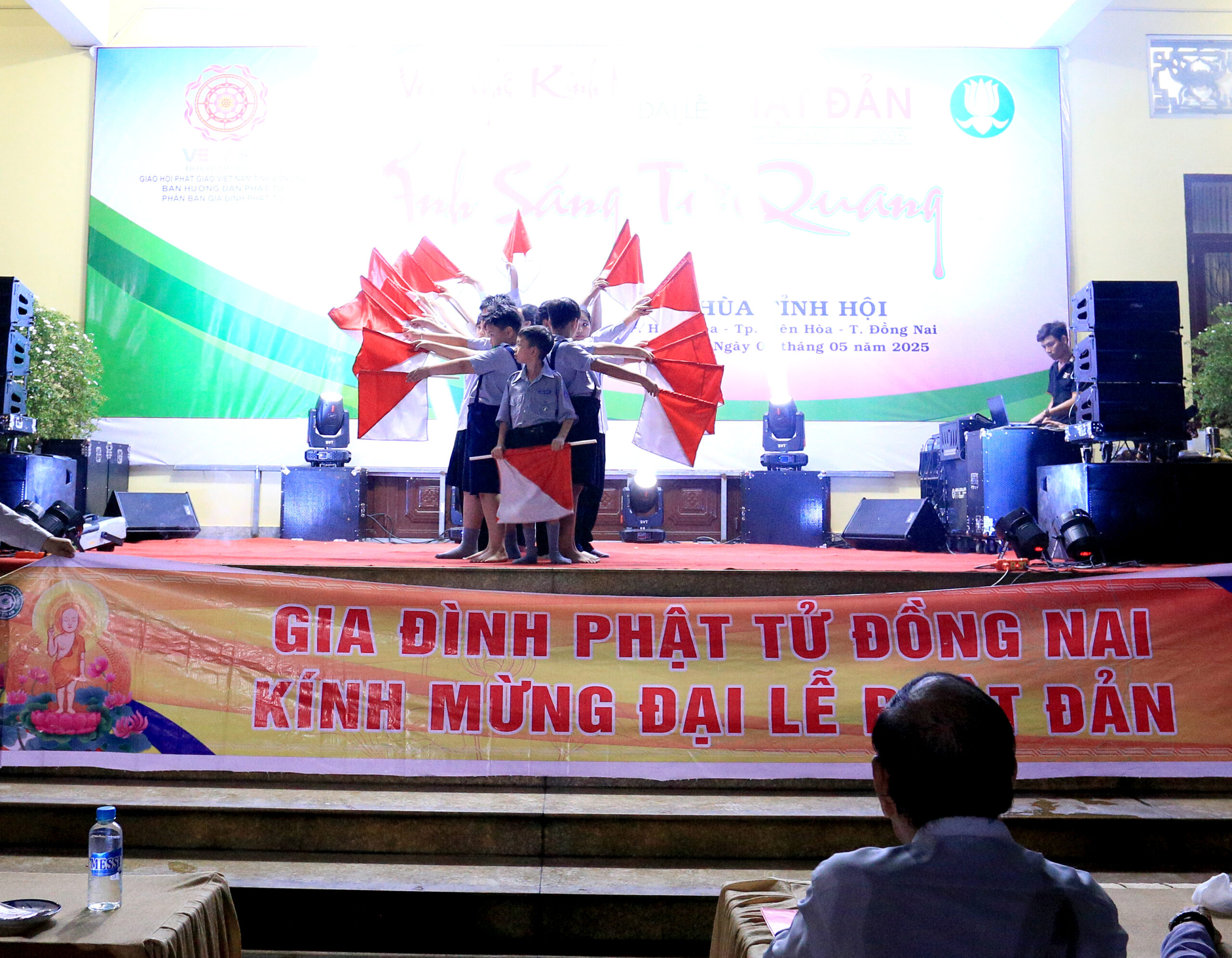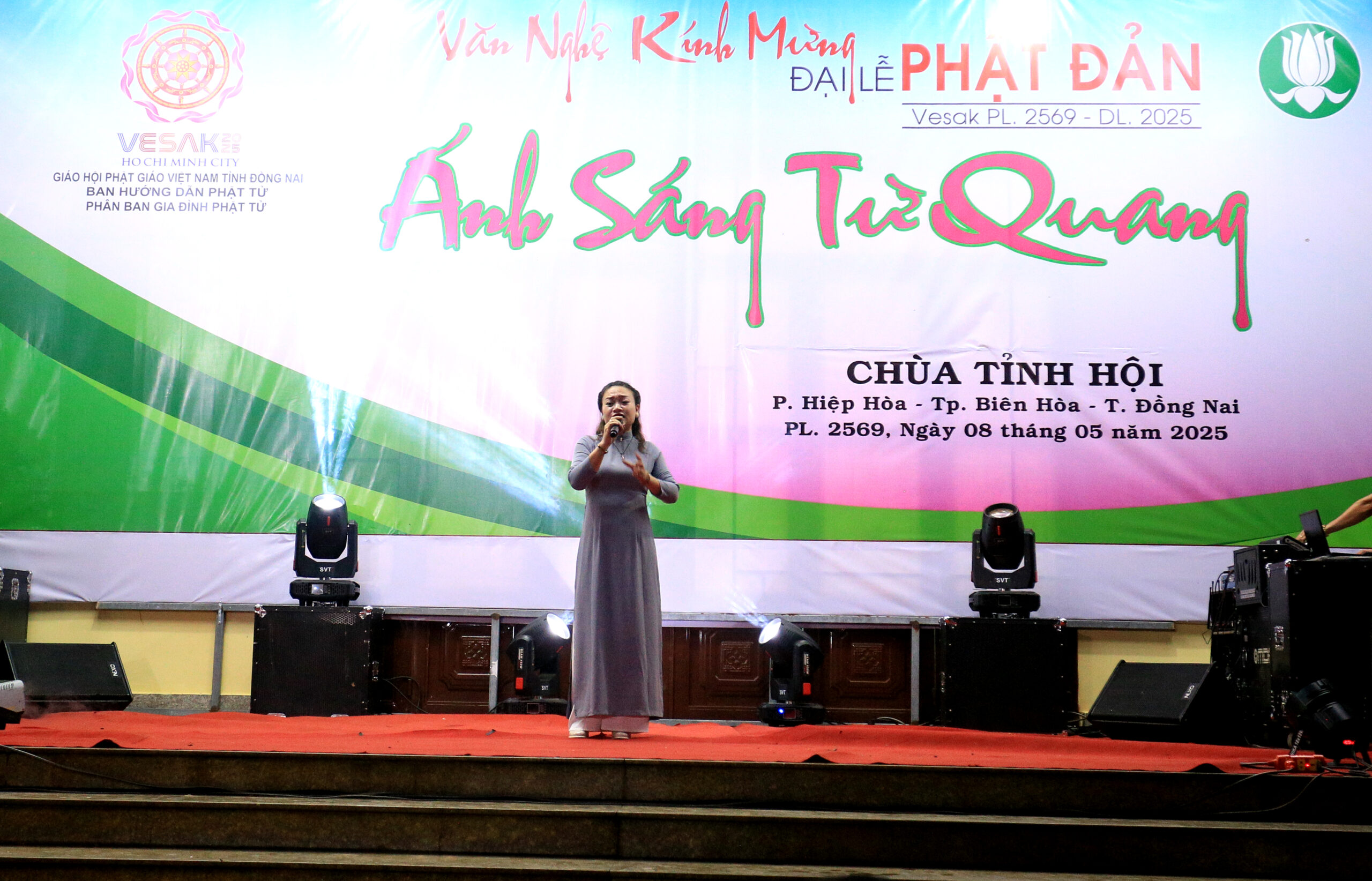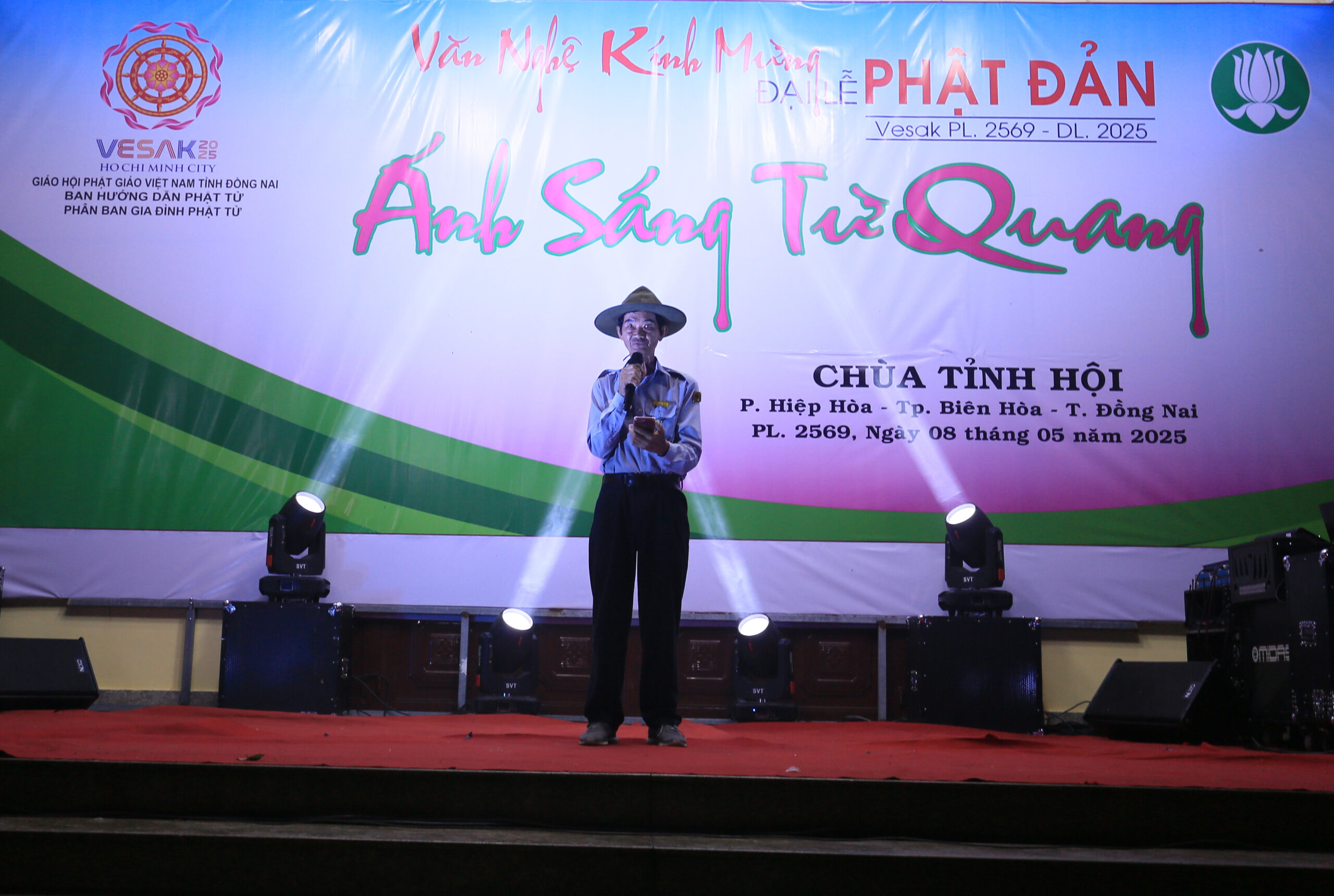 Phát biểu khai mạc đêm văn nghệ, Huynh trưởng cấp Tấn Nguyên Tâm Phạm Thị Thanh Hằng – Trưởng Phân ban Gia đình Phật tử Đồng Nai đã thể hiện tinh thần của người Phật tử hướng về ngày đản sinh của đức Phật trong tâm trạng bồi hồi rằng: Trong ánh hào quang từ bi ngày lễ đản sinh của Đức Phật, Phân ban Gia đình Phật tử Đồng Nai chúng con lần đầu tiên tổ chức Chương trình văn nghệ quy mô trong toàn tỉnh, trước là dâng lên đức Phật với lòng thành kính sâu sắc, lòng quy ngưỡng với giáo lý siêu việt mà ngài đã chứng ngộ mang đến cho chúng sanh con đường giải thoát giác ngộ tối thượng, và nguyện tiếp bước theo Chánh pháp của Ngài trên con đường phụng sự Đạo pháp và xây dựng xã hội bằng những hoạt động thiết thực nhân ngày Phật đản – Vesak PL. 2569 – DL. 2025.