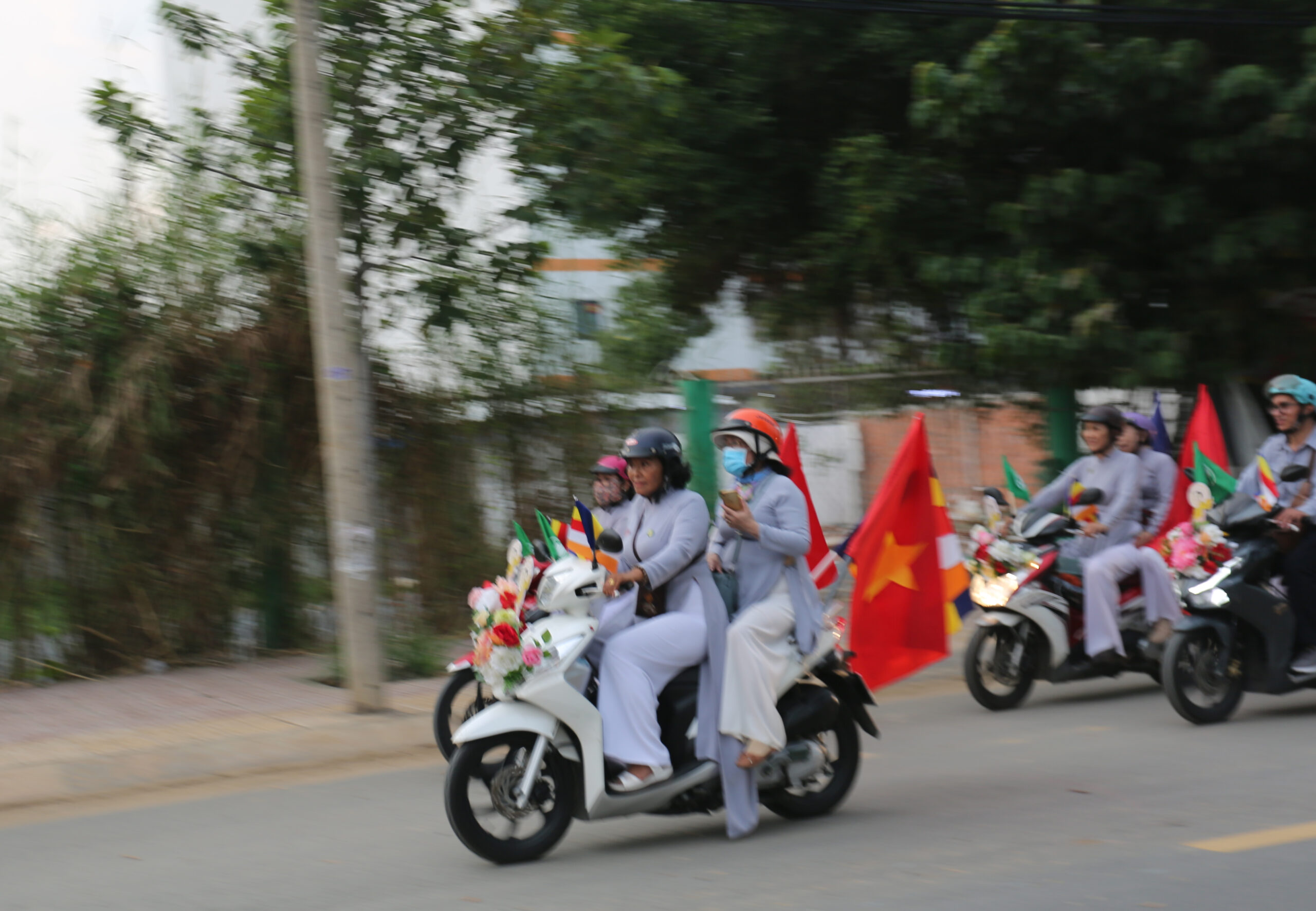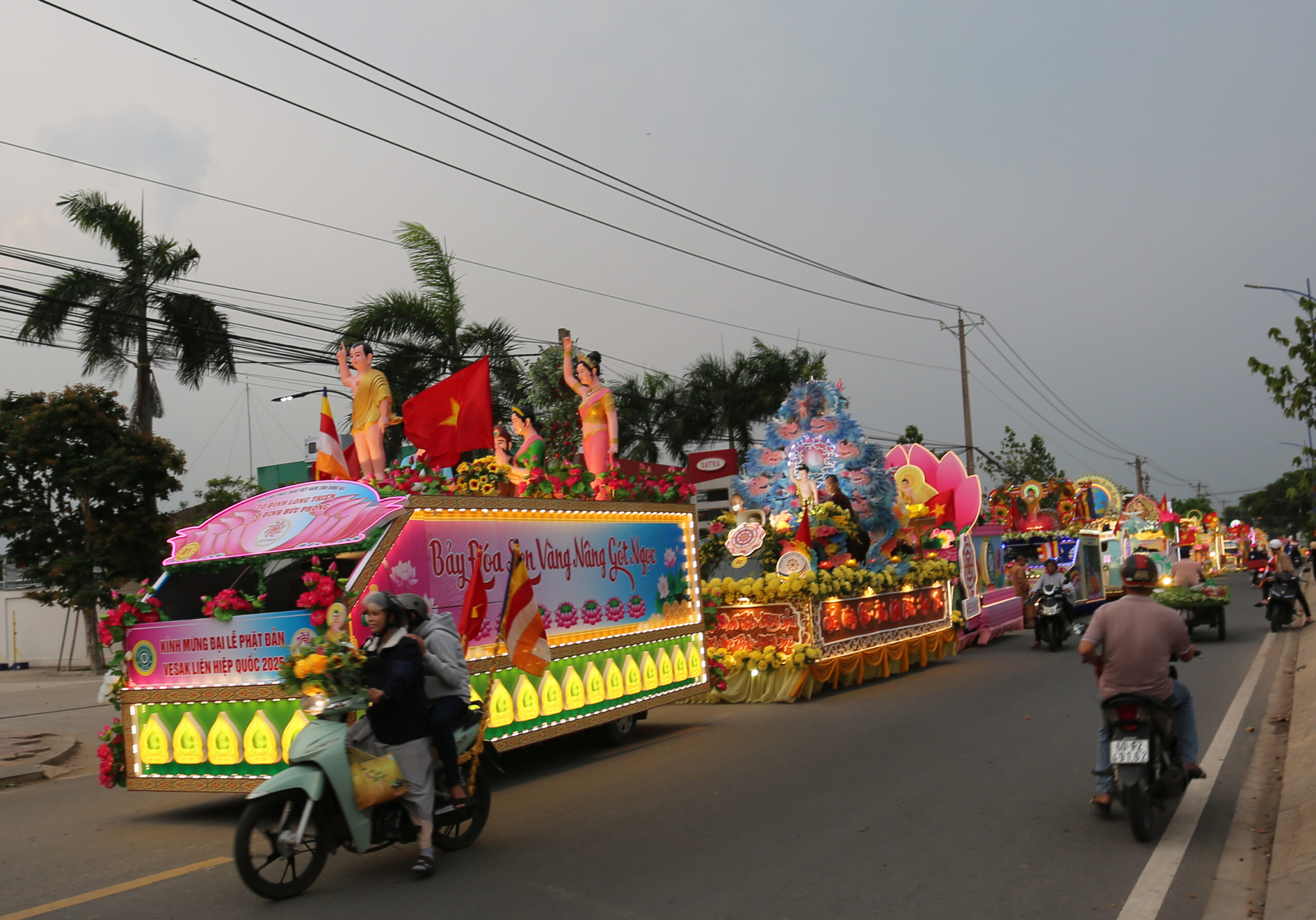 Chiều tối cùng ngày, Ban Điều hành Gia đình Phật tử Tp. Biên Hòa – Đại diện cho Phân ban Gia đình Phật tử Đồng Nai đã thiết kế 50 xe máy hoa tham gia diễu hành cùng 32 xe Hoa kính mừng Đại lễ Phật đản của BTS GHPGVN tỉnh Đồng Nai. Trong tinh thần xiển dương giáo lý giác ngộ đến với mọi chúng sinh, đoàn xe hoa đã diễu hành trên tất cả các trục đường chính của thành phố Biên Hòa, sau đó đến Quốc lộ 51 trực chỉ ngôi chùa lớn nhất Đông Nam bộ – Quốc Ân Khải Tường, lộ trình diễu hành ước tính 50 kilometer.