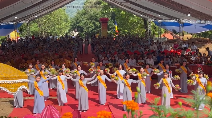 Gia đình Phật tử Linh Phú múa dâng hoa trong Đại lễ Phật đản PL. 2569 của Ban Trị sự GHPGVN huyện Tân Phú.