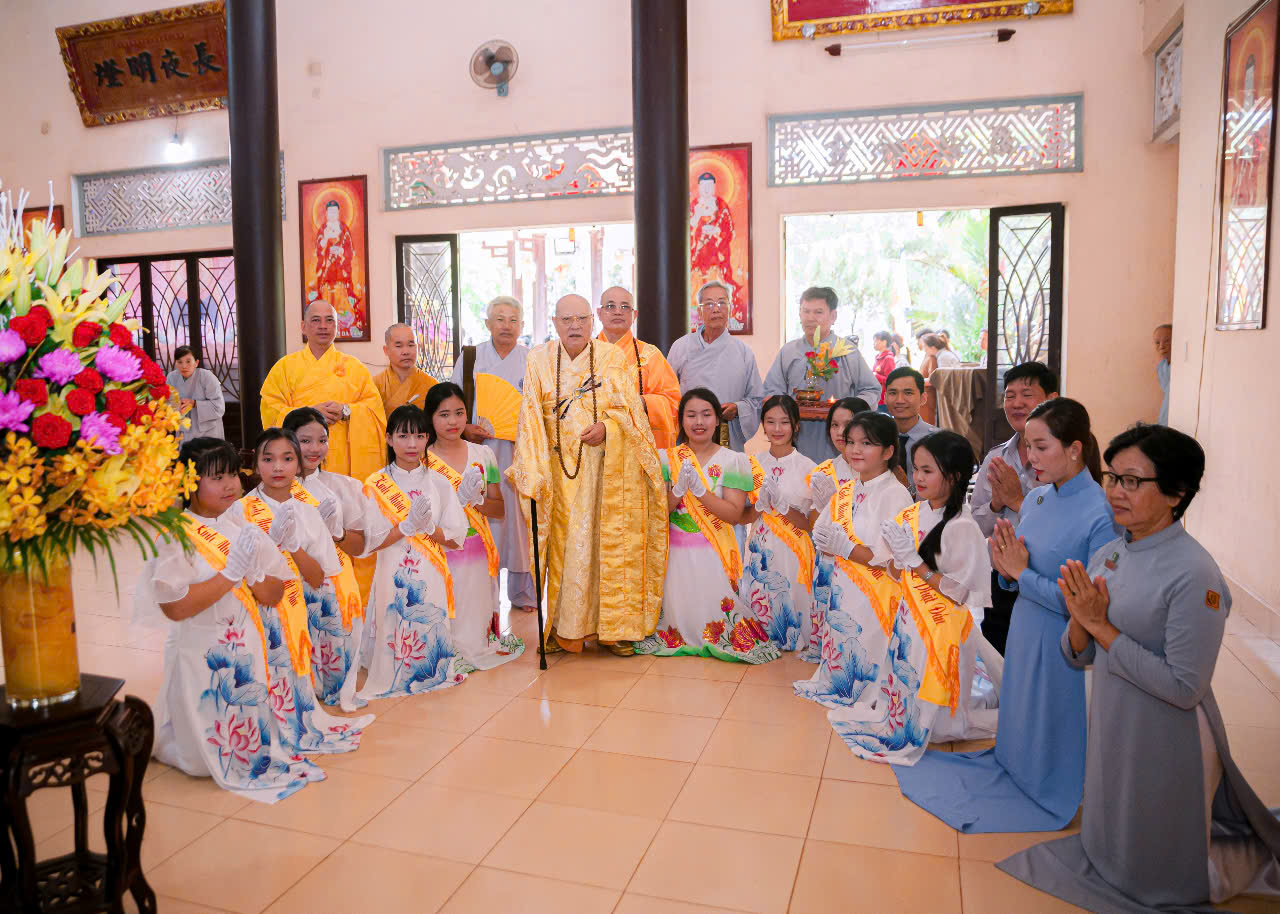 Huynh trưởng và Đoàn sinh Gia đình Phật tử Vĩnh An – huyện Vĩnh Cữu tỉnh Đồng Nai vấn an Đại lão Hòa thượng Đạo hiệu Thích Liêm Chính nhân ngày Phật đản PL. 2569.