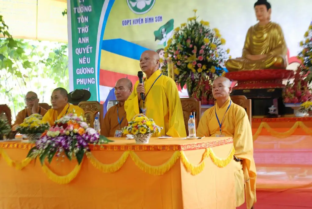 Đại đức Thích Đồng Phú – Trưởng ban Hướng dẫn Phật tử huyện Bình Sơn phát biểu huấn từ