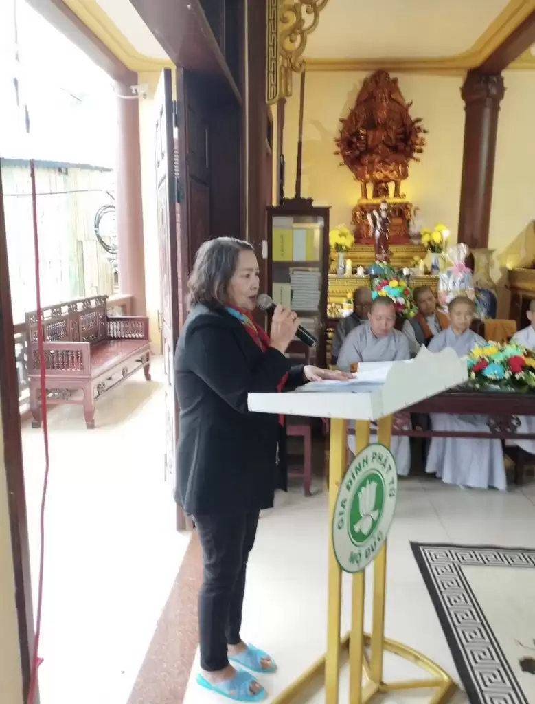 Cô Nguyễn Thị Hồng Tư, đại diện cho người thân là Gia trưởng, Huynh trưởng, Đoàn sinh quá cố đã có lời phát biểu cảm ơn việc làm đầy nghĩa cử cao đẹp của tổ chức GĐPT huyện nhà đối với những thế hệ đi trước đã khuất, làm cho người thân của quý bác, quý anh chị không còn hiện hữu trên cõi đời này cảm thấy được gần gủi, ấm lòng hơn.