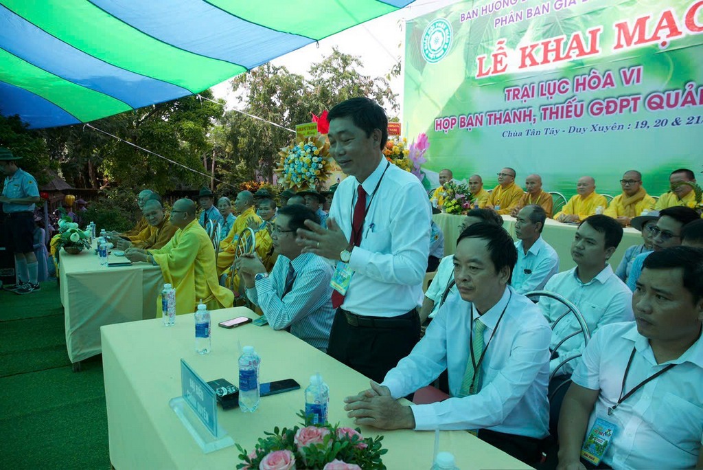 Sau nghi thức niệm hồng danh đức Bổn sư, lễ đoàn của GĐPT là lời phát biểu chào mừng và khai mạc trại của Trại trưởng Đồng Thanh Nguyễn Công Thảnh, anh nhấn mạnh, trại “Lục Hoà VI” diễn ra thành công tính đến hôm nay là một nỗ lực rất lớn đến từ huynh trưởng và đoàn sinh của các đơn vị trên toàn tỉnh. Trong hơn một tháng qua, các đơn vị đã bằng tài lực, trí lực và vật lực đã đem đến cho hội trại những sản phẩm ưu tú để góp phần tạo nên một “Lục Hoà VI” những quả vị rất ngọt ngào. Hy vọng rằng, các đơn vị hãy tinh tấn hơn nữa, cống hiến hết mình vì màu cờ sắc áo, thi đua nhưng không ganh đua.
