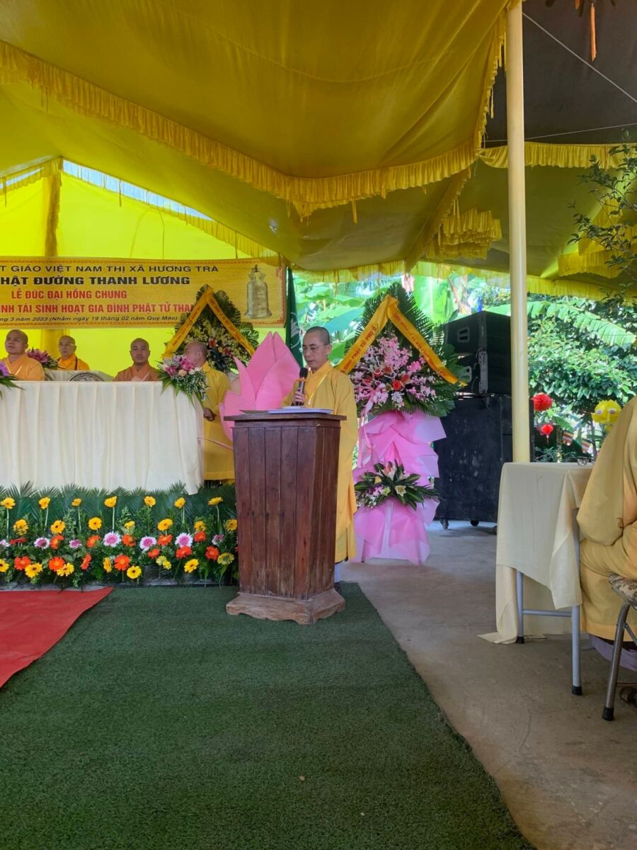Buổi lễ được sự chứng minh của Hòa thượng Thích Khế Chơn – Trưởng BTS GHPGVN Tỉnh Thừa Thiên – Huế cùng chư tôn đức trong BTS Tỉnh và Ban Trị sự Giáo hội Phật giáo Thị xã Hương Trà .