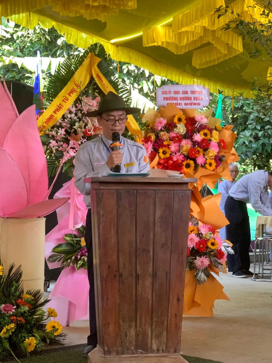 Ban huynh trưởng cũng đã đón nhận lẳng hoa chúc mừng của Phân Ban GĐPT thị xã Hương Trà và của đại diện chính quyền phường Hương Xuân, thị xã Hương Trà.