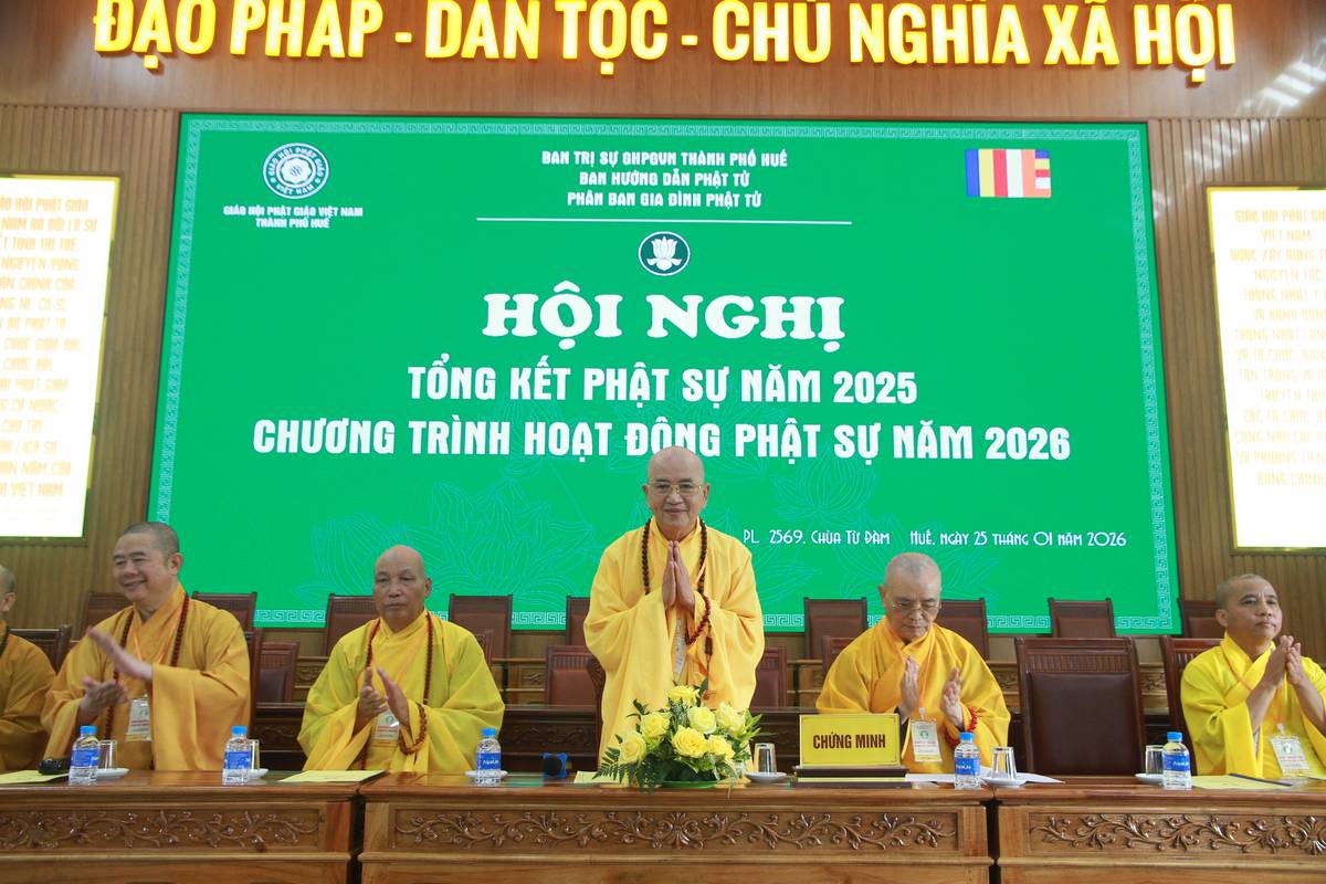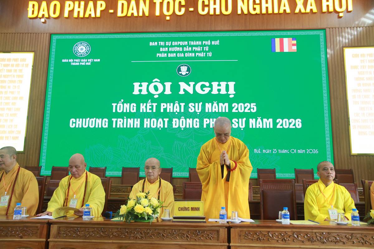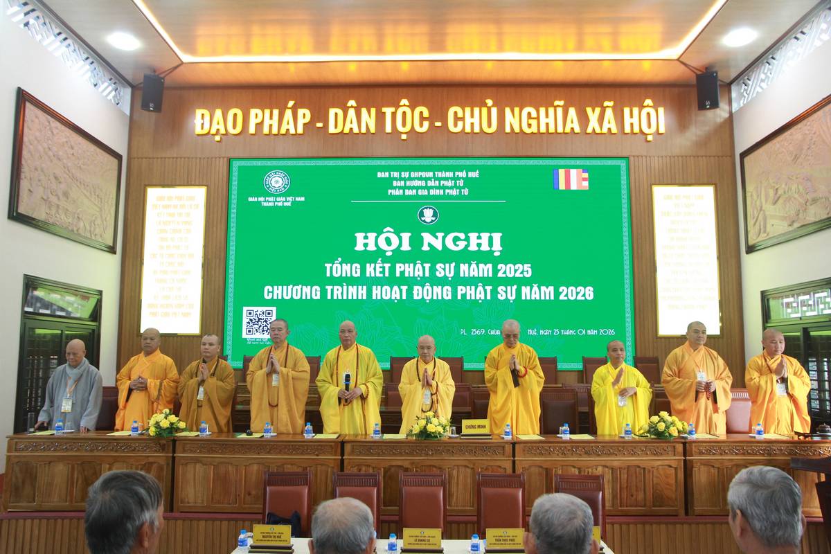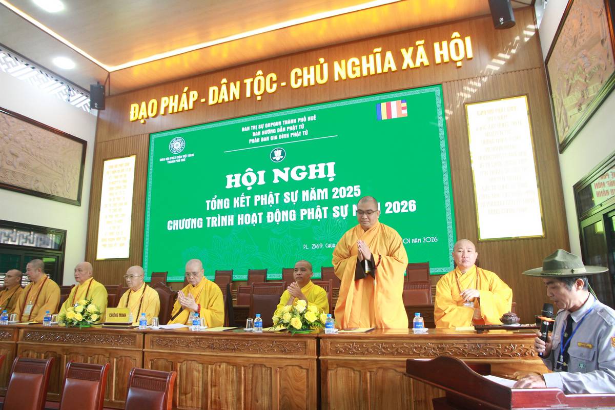 Năm 2025 đã khép lại, GĐPT thành phố Huế tổ chức Tổng kết hoạt động Phật sự để đánh giá, nhìn nhận, phát huy những thành quả đã đạt được. Khắc phục những hạn chế tồn tại và đề ra phương hướng hoạt động cho năm mới 2026 với hy vọng đầy khởi sắc và đạt nhiều thành tựu vượt bậc hơn nữa.