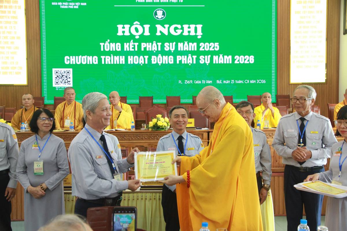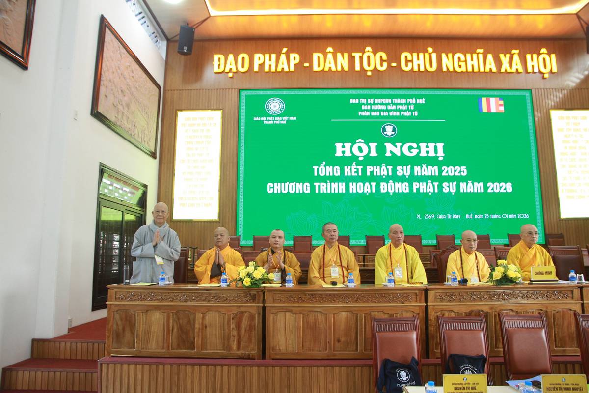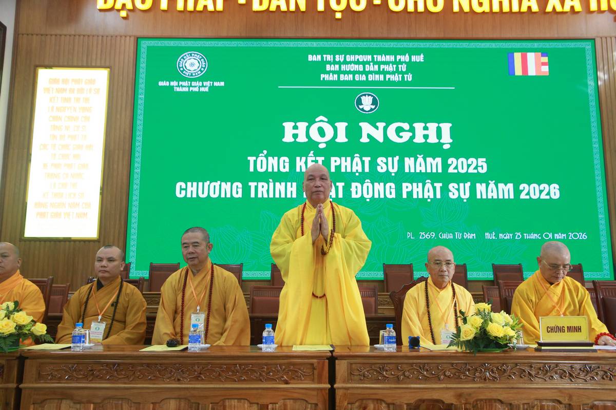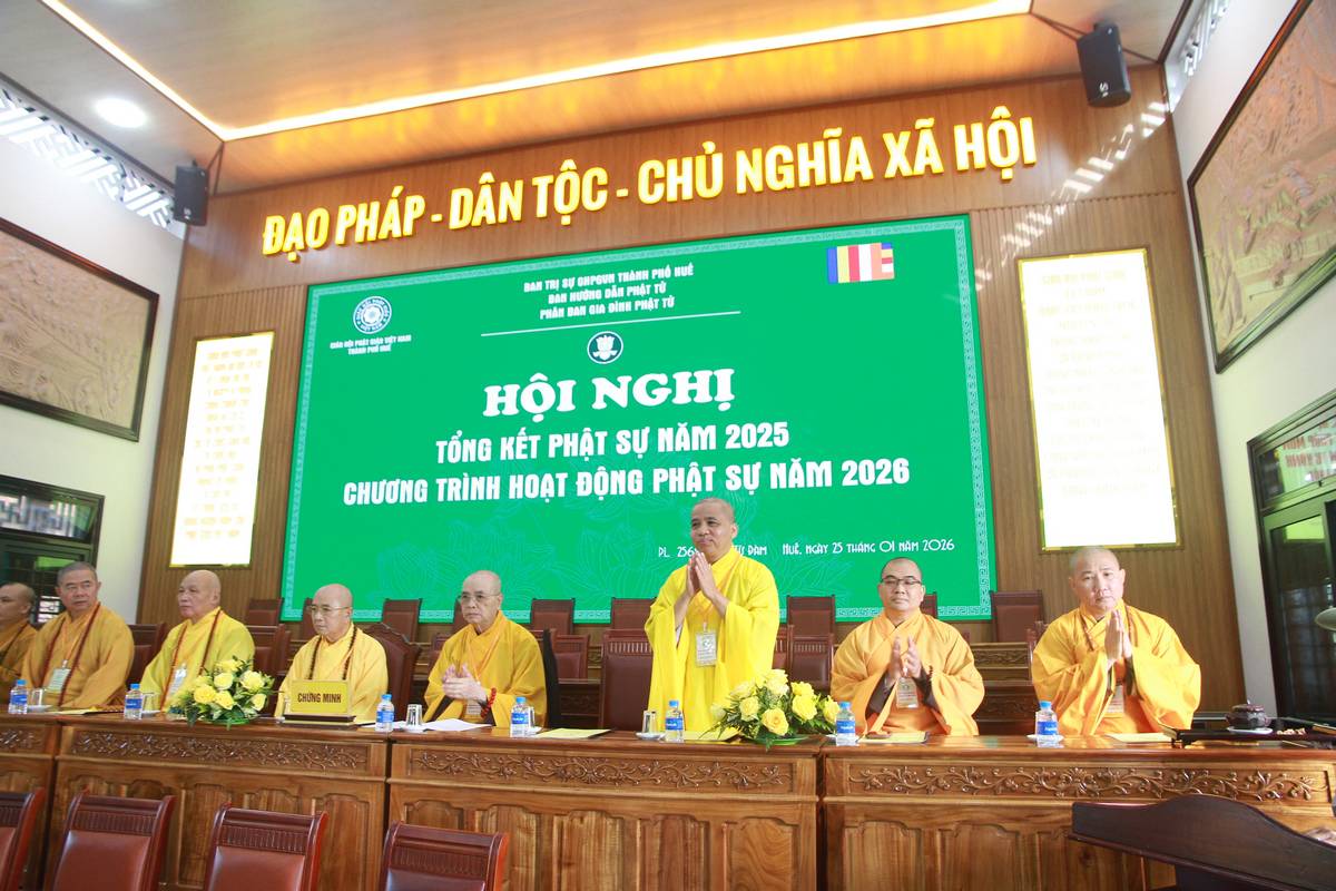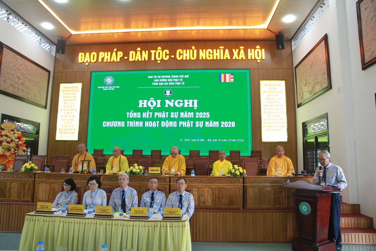 Năm 2025 đã khép lại, GĐPT thành phố Huế tổ chức Tổng kết hoạt động Phật sự để đánh giá, nhìn nhận, phát huy những thành quả đã đạt được. Khắc phục những hạn chế tồn tại và đề ra phương hướng hoạt động cho năm mới 2026 với hy vọng đầy khởi sắc và đạt nhiều thành tựu vượt bậc hơn nữa.