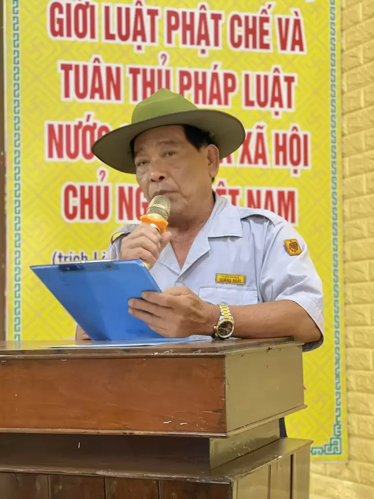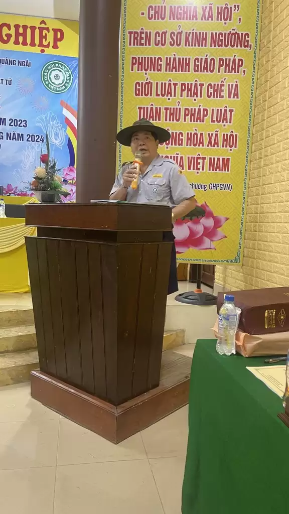 Phát biểu tại hội nghị, Cư sỹ Hạnh Quang Nguyễn Đức Lý – Phó ban Bảo trợ GĐPT TW, Trưởng BBT GĐPT tỉnh Quảng Ngãi, chúc mừng và chia vui cùng GĐPT tỉnh về những kết quả đạt được trong năm 2023, tán dương tinh thần chịu thương chịu khó của đội ngũ Htr GĐPT tỉnh nhà trong sứ mệnh giáo dục thế hệ trẻ thâm nhập với giáo lý Phật đà để các em có đời sống thiện lành, tránh xa với thói hư tật xấu và các tệ nạn xã hội, đồng thời Ban Bảo trợ cũng sẽ tiếp tục hà hơi tiếp sức về tịnh tài đối với các hoạt động tu học sinh hoạt của BHD trong những năm đến. Xin được nói thêm, trong năm 2023, Ban Bảo trợ GĐPT tỉnh đã hỗ trợ cho quý khuyến học từ thiện và các hoạt động khác của GĐPT tỉnh Quảng Ngãi là hơn 70 triệu đồng