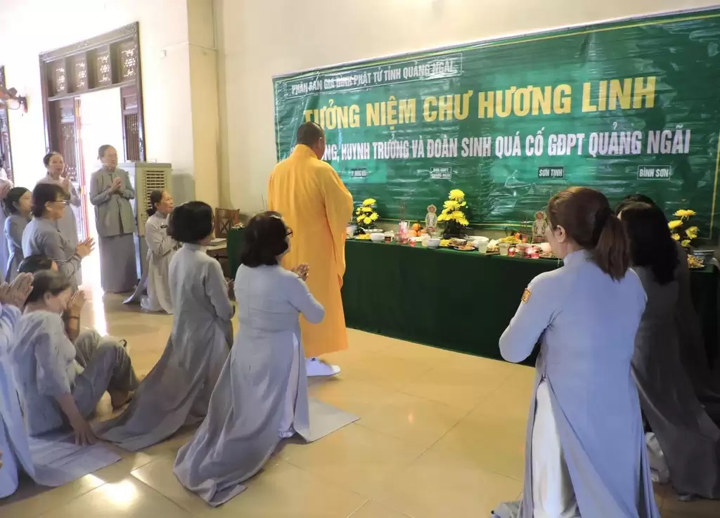 Thể hiện đạo lý “Ôn cố tri tân, Uống nước nhớ nguồn” Nhằm tỏ lòng tri ân và báo ân đối với Chư vị Tiền bối hữu công, những người anh, người chị Áo Lam đã khuất, ngay sau khi kết thúc hội nghị, Ban Hướng dẫn Phân ban GĐPT tỉnh Quảng Ngãi đã long trọng tổ chức khóa lễ Hiệp kỵ , buổi lễ dưới sự chứng minh và chú nguyện của Đại đức Thích Đồng Quang – Phó Trưởng ban Thường trực BHDPT tỉnh BTS GHPGVN tỉnh Quảng Ngãi. Khóa lễ diễn ra trong không khí trang nghiêm, bùi ngùi xúc động và thắm tình đạo vị.