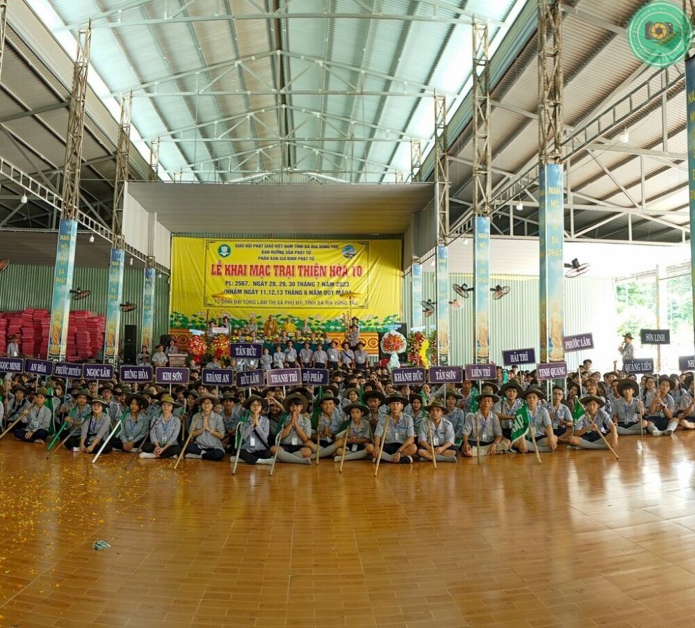 Vào lúc 8h30 ngày 29/07/2023 nhằm ngày 12/06 ÂL tại tổ Đình Vạn Phật Quang – Đại Tòng Lâm tự, P. Phú Mỹ, TX Phú Mỹ, BRVT đã diễn ra Lễ Khai mạc Trại họp bạn GĐPT tỉnh BRVT Thiện Hoà X.