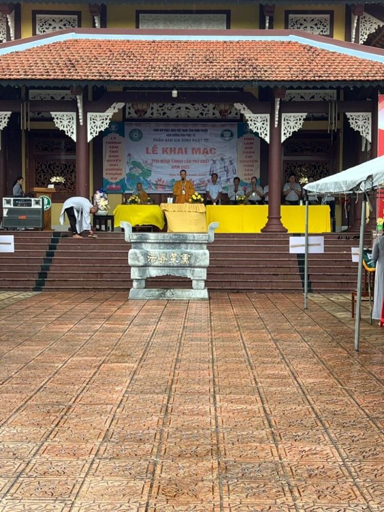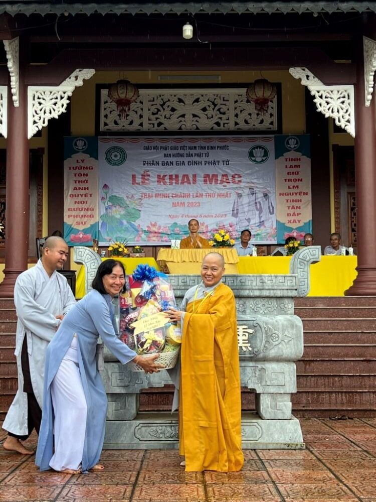 Lễ Khai mạc được tổ chức lúc 14 giờ ngày 04/8 dưới sự chứng minh của Đại Đức Thích Minh Lợi, Ủy viên Thường trực Ban Trị sự GHPGVN tỉnh Bình Phước, Trưởng ban Hướng dẫn Phật tử tỉnh và Sư cô Thích nữ Chúc Thành, UV Thường trực BTS, Trưởng ban HDPT GHPGVN huyện Phú Riêng; cùng các anh chị trong BHD-PBGĐPT tỉnh Bình Phước và 180 huynh trưởng trại sinh. Buổi lễ khai mạc diễn ra trong niềm hân hoan đầy hỷ lạc của ngày truyền thống ngành nữ.