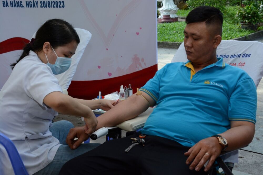 Thực hiện chương trình hoạt động năm 2023, với tinh thần Từ Bi của những người con Phật hướng đến ngày Vu Lan Báo Hiếu. Sáng nay ngày 20/8/2023 (05/7 Quý Mão), tại chùa Pháp Lâm – 574 Ông Ích Khiêm, phường Nam Dương, quận Hải Châu, tp Đà Nẵng; Phân ban GĐPT Đà Nẵng đã tổ chức đợt hiến máu tình nguyện năm 2023 với sự tham gia của đông đảo các huynh trưởng đoàn sinh GĐPT Đà Nẵng cùng thân hữu, chư Tăng Ni, các Tình Nguyện viên Đội máu sống GĐPT Đà Nẵng và Đoàn Thanh niên Công ty Dịch vụ mặt đất Sân bay Việt Nam (Viags).