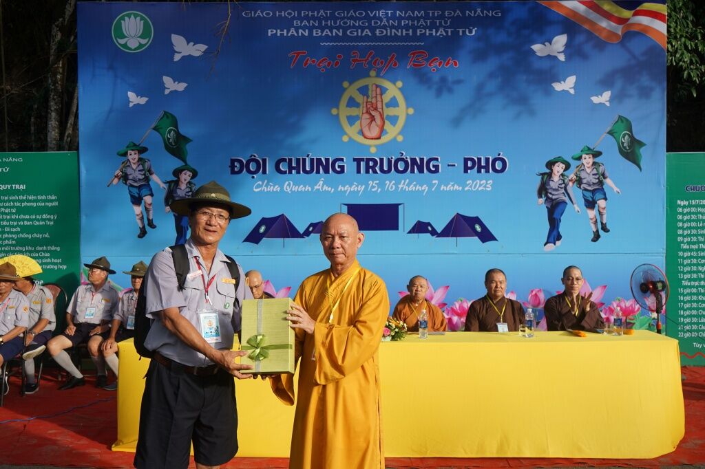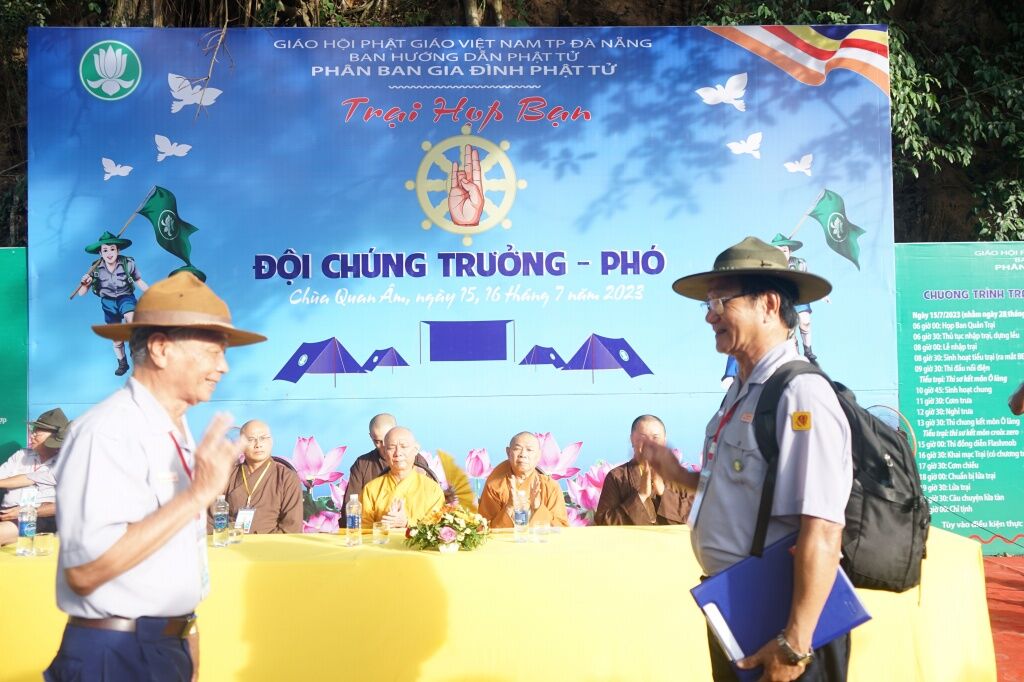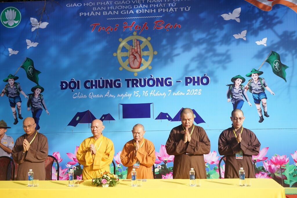 Lễ Khai mạc trại họp bạn Đội Chúng trưởng phó được tổ chức tại chùa Quán Thế Âm vào buổi chiều ngày 15/7 dưới sự chứng minh của Hoà Thượng Thích Từ Nghiêm – Ủy viên HĐTS GHPGVN, Trưởng Ban Trị sự GHPGVN TP Đà Nẵng; Hoà thượng Thích Huệ Vinh, Ủy viên Ban Hướng dẫn Phật tử Trung ương, Phó Trưởng Ban Trị sự, Trưởng ban Tăng sự GHPGVN TP Đà Nẵng. Thượng Toạ Thượng Toạ Thích Pháp Châu – phó Trưởng Ban Trị sự, Trưởng Ban HDPT GHPGVN TP Đà Nẵng cùng chư Tôn Đức Thường trực BTS TP quận Ngũ Hành Sơn.