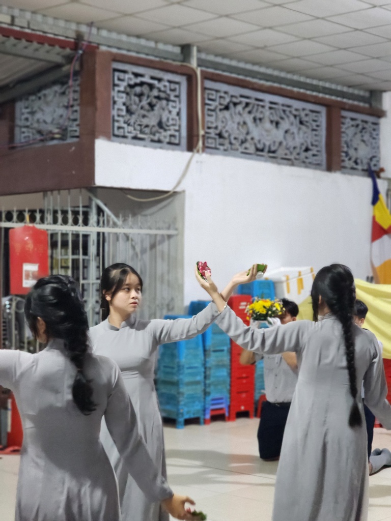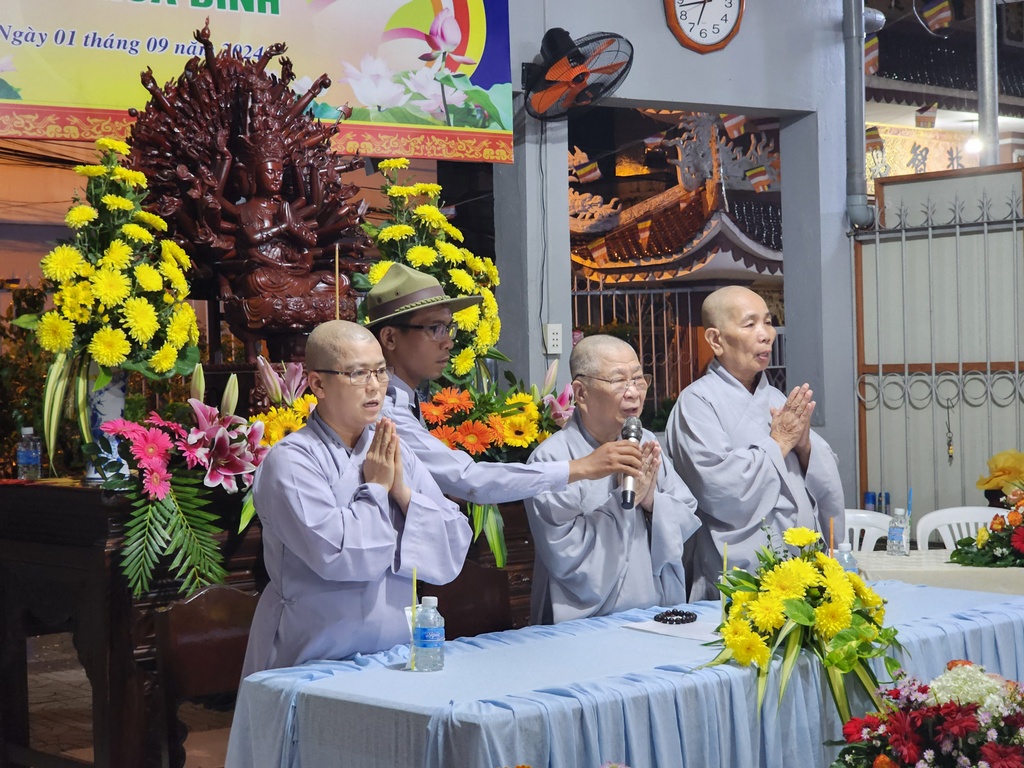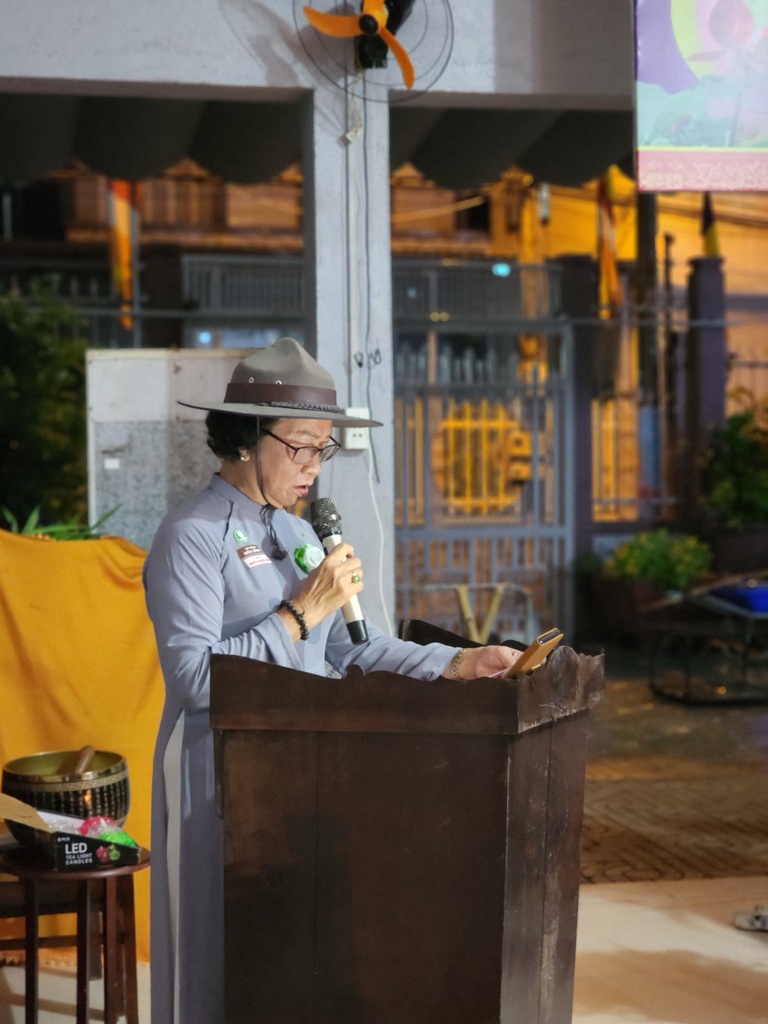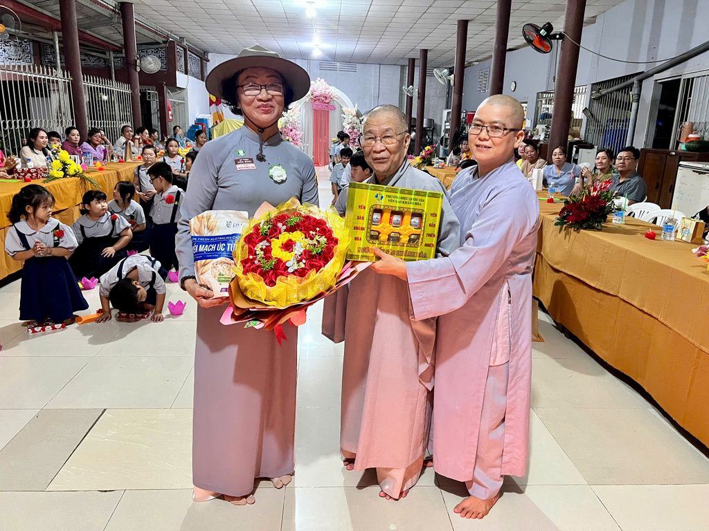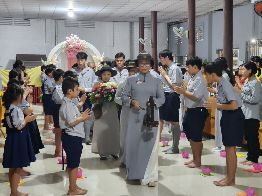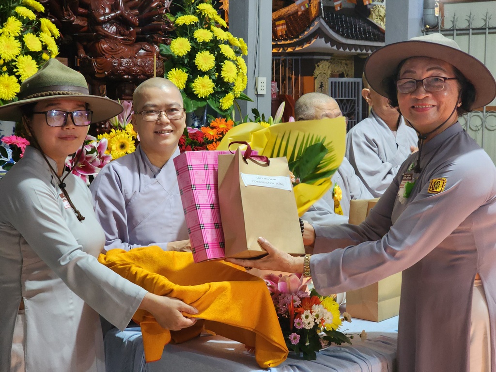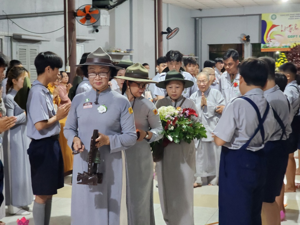 Sau phần nghi thức lễ Phật, lễ Đoàn, lễ dâng hoa, đại diện ban tổ chức, Huynh trưởng Gia trưởng An Như – Nguyễn Thị Nguyệt Xương đã dâng lời tri ân đến Ni trưởng Thích Nữ Tắc Hạnh – Cố vấn Giáo hạnh và quý Chư Ni bổn tự đã hết lòng dạy dỗ, hổ trợ về mọi mặt từ vật chất đến tinh thần để GĐPT Hoà Bình ngày một ổn định và phát triển