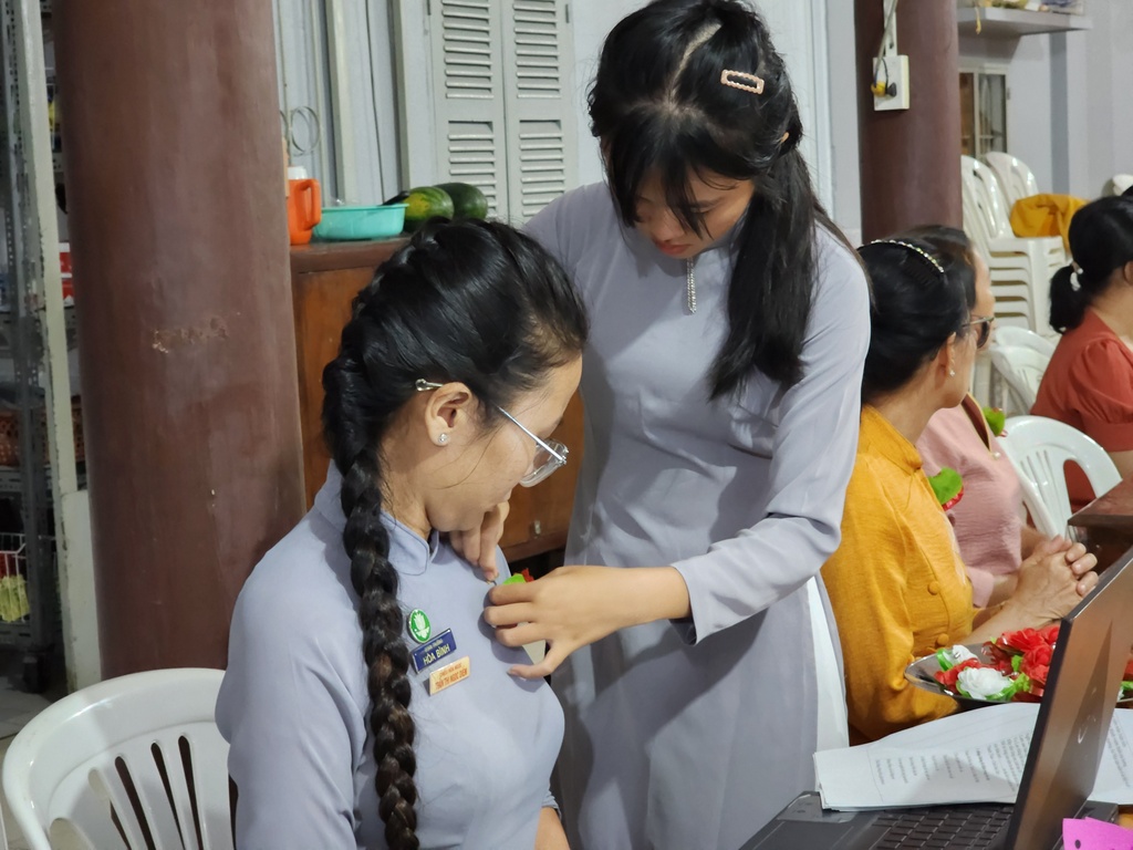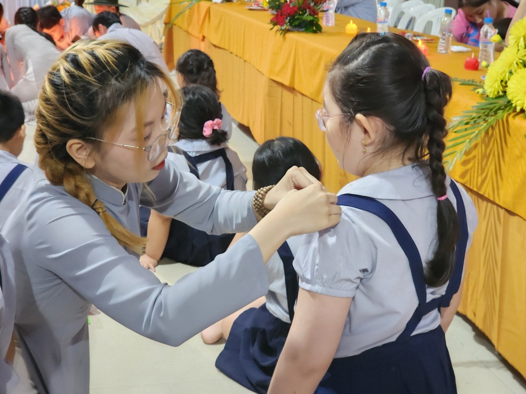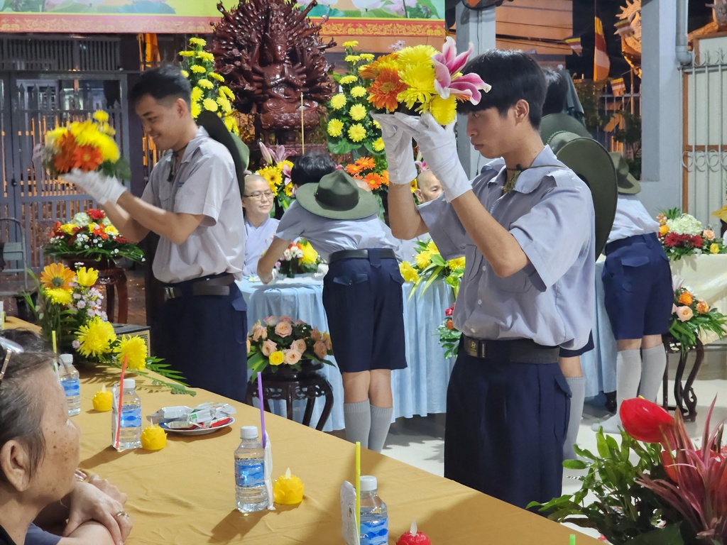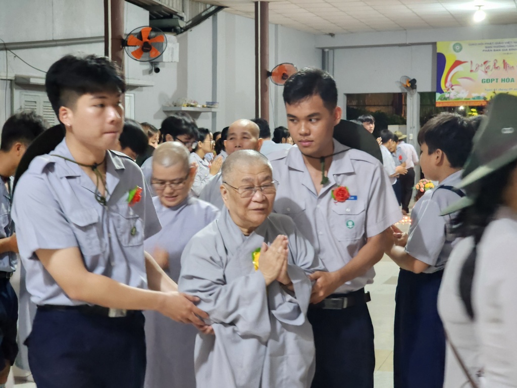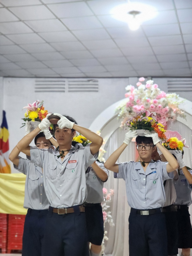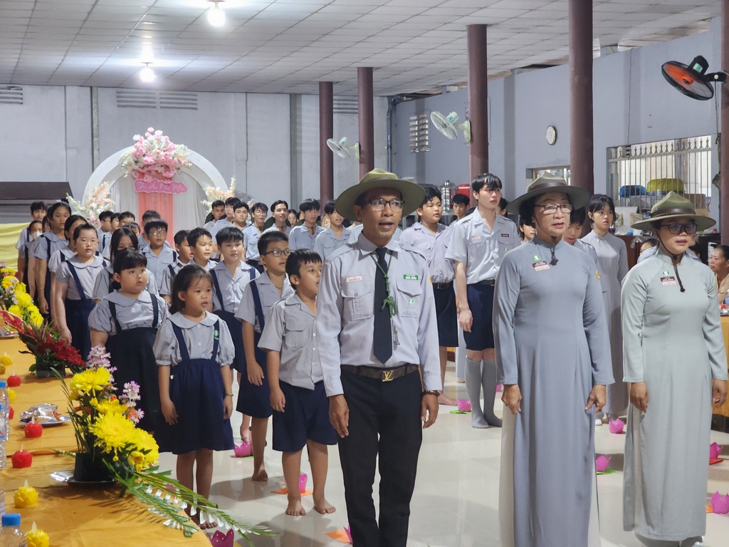 Tham dự buổi lễ cón có các vị trong Ban Bảo trợ GĐPT Hòa Bình, quý Đạo hữu Phật tử bổn tự, hơn 30 Phụ huynh và gần 70 Huynh trưởng Đoàn sinh GĐPT Hòa Bình.