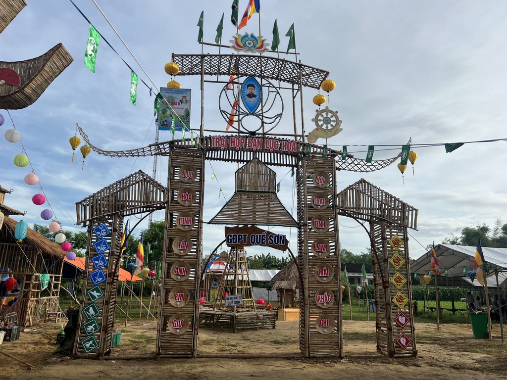 Từ sáng sớm ngày 19/7, ngay khi những tia nắng mặt trời đầu tiên ló rạng, xua tan màn sương, khung cảnh trại bỗng trở nên rực rỡ, tươi sáng hơn bao giờ hết. Từng đoàn xe mang theo tinh thần Dũng chí của người phật tử từ các đơn vị huyện/thị/thành phố thẳng tiến về đạo tràng Tân Tây Thiện Pháp, tâm trạng nao nức, những nụ cười đầy hỷ lạc tràn đầy năng lượng của các anh chị em trại sinh, những chiếc ba lô nặng trĩu trên vai không làm giảm đi sự háo hức của người phật tử, sắc Lam dần xen lẫn, hoà quyện vào khung cảnh bao la của đất trời, của vùng đất Duy Xuyên đầy thơ mộng. Từ lều trung ương đến cổng, lều trại đơn vị được chuẩn bị chu đào từ trước đến nay được tạo dựng, bao bọc xung quanh toàn bộ sân vườn chùa. Mỗi một cổng, lều trại là những nét rất riêng đã tạo nên một không gian thật sự đẹp, thật sự hoành tráng hứa hẹn một đợt trại viên mãn của anh chị em lam viên Quảng Nam.