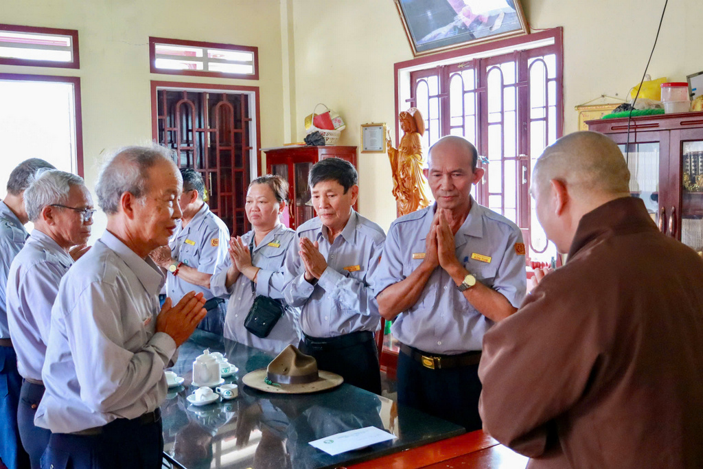 Tại chùa Huệ Quang (huyện Phù Cát cũ), đoàn đã đảnh lễ vấn an Thượng tọa Thích Pháp Quang và thành kính cúng dường Tam Bảo, sau đó đoàn đã thân mật thăm hỏi, ân cần động viên và tặng quà hỗ trợ đến Huynh trưởng, Đoàn sinh GĐPT Huệ Quang – những Lam viên đang phải đối diện với nhiều khó khăn về nhà cửa, sinh hoạt và công tác tu học sau thiên tai.