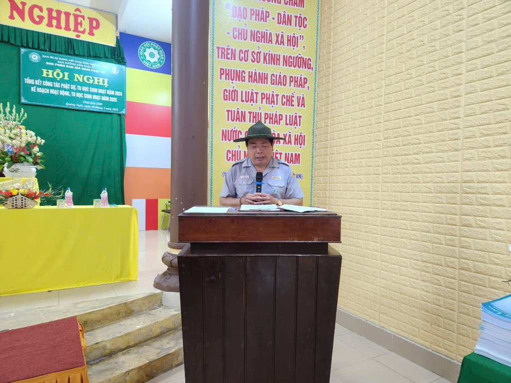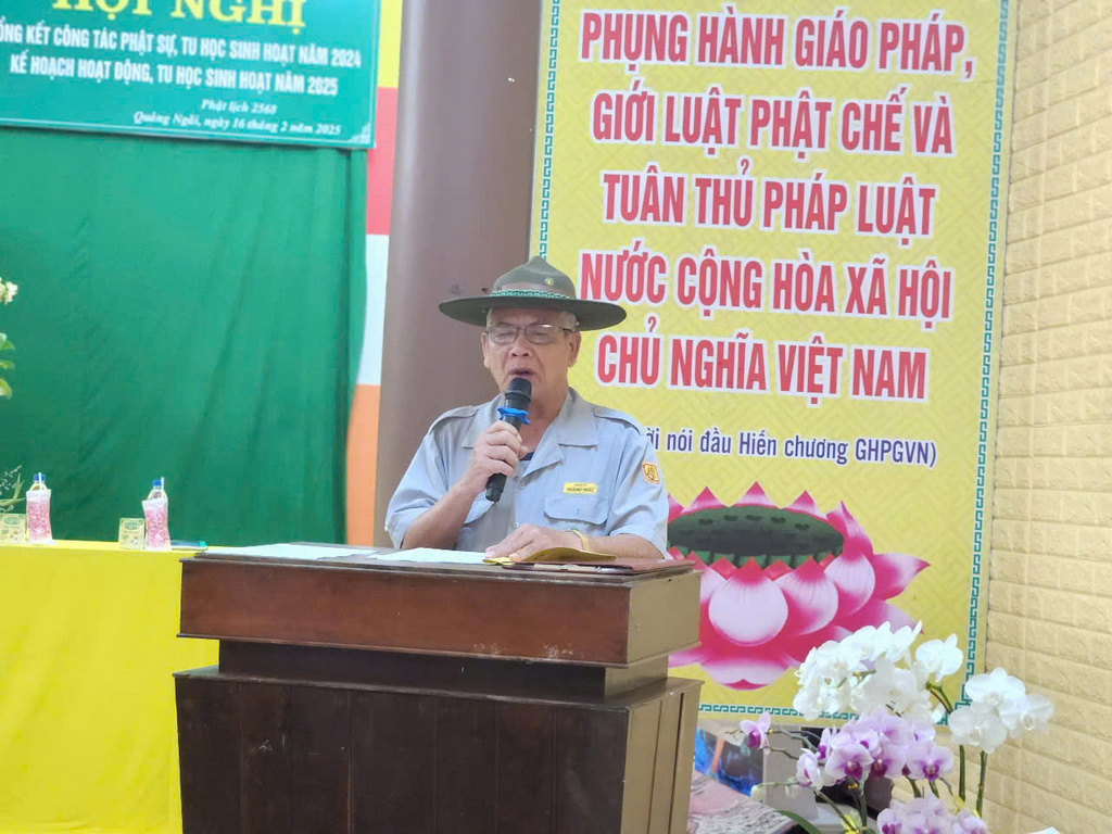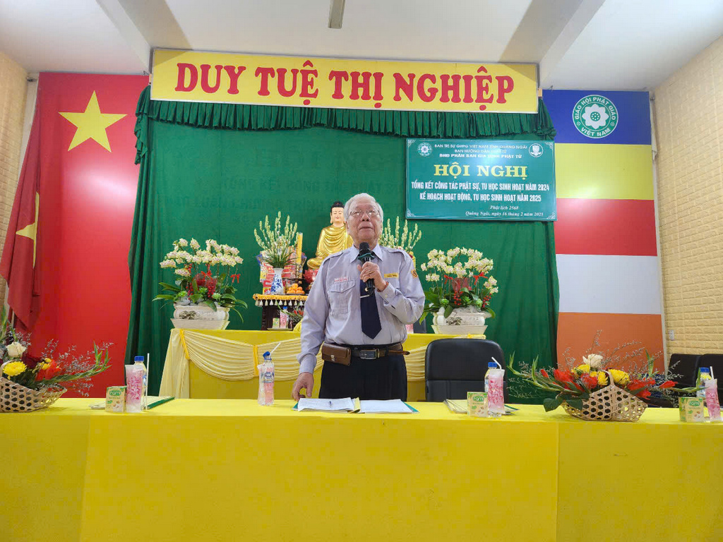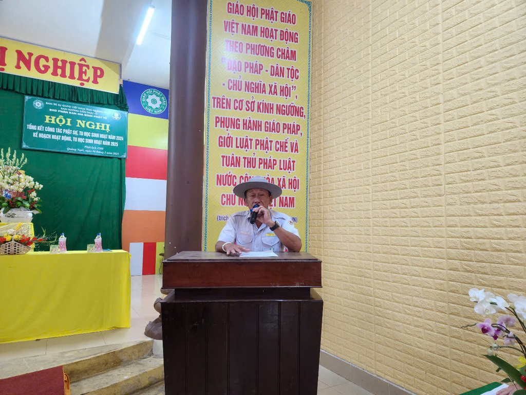 Hội nghị đã lắng nghe anh Tâm Giới Phan Ngọc Thảo – Trưởng ban BHD PB GĐPT TƯ có lời diễn từ chúc mừng những thành tựu mà GĐPT tỉnh Quảng Ngãi đã đạt được trong năm 2024, đồng thời anh cũng đã chia sẻ những kinh nghiệm quý báu trong công tác tổ chức, tu học sinh hoạt và phát triển đoàn sinh v.v…