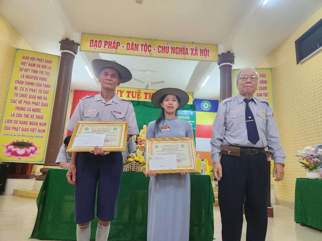 Nhằm ghi nhận những nỗ lực và đóng góp trong năm qua, hội nghị đã tặng bằng khen tinh tấn cho 2 đơn vị xuất sắc cấp tỉnh là: GĐPT Chơn Thiện, huyện Bình Sơn, GĐPT Chơn Tuệ, TP Quảng Ngãi; 1 đơn vị Khá cấp tỉnh là GĐPT Minh Phước, huyện Sơn Tịnh, 1 đơn vị Khá cấp huyện là GĐPT Diệu Thiện, huyện Mộ Đức và 1 cá nhân Huynh trưởng xuất sắc tiêu biểu cấp tỉnh là Htr cấp Tập Đồng Lộc Trần Thị Lựu . Đây là sự động viên khuyến tấn to lớn vềtinh thần để các Huynh trưởng và đoàn sinh tiếp tục phấn đấu, đóng góp vào sự phát triển bền vững của tổ chức GĐPT tỉnh nhà.