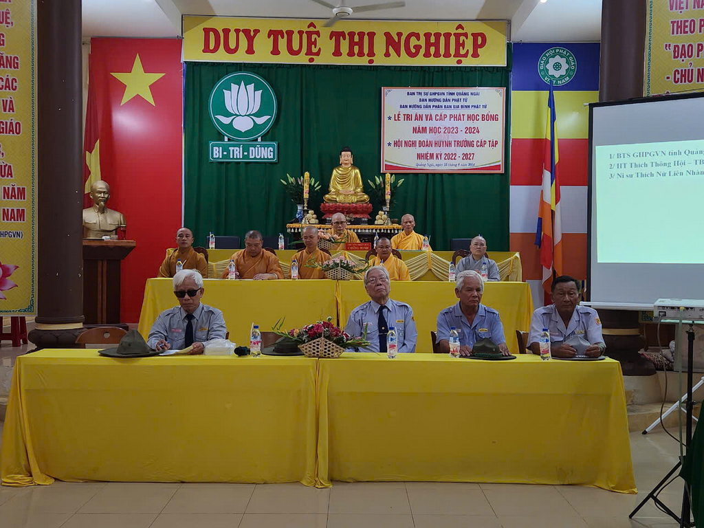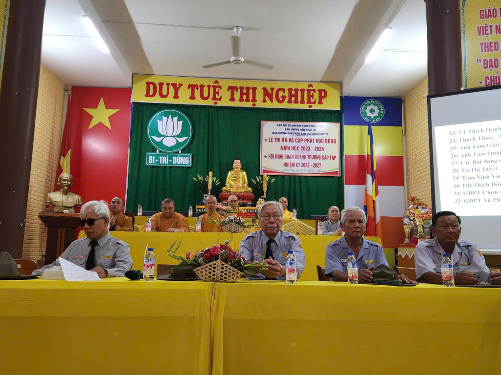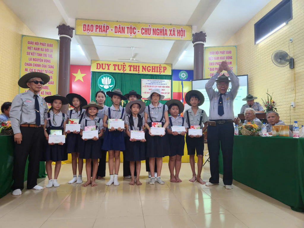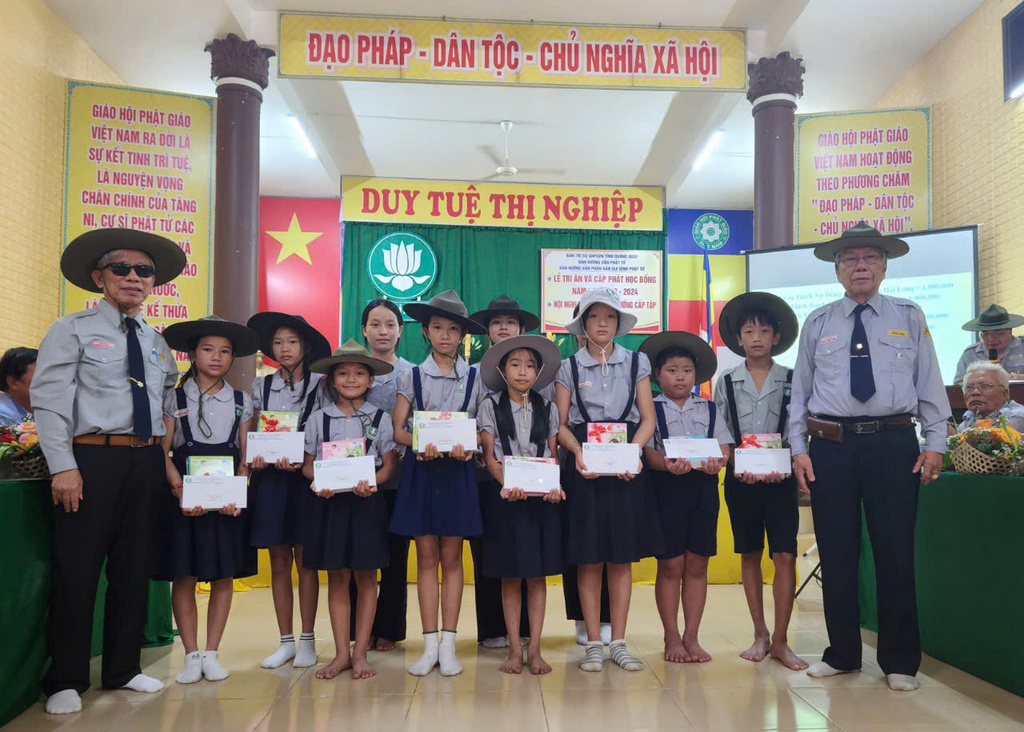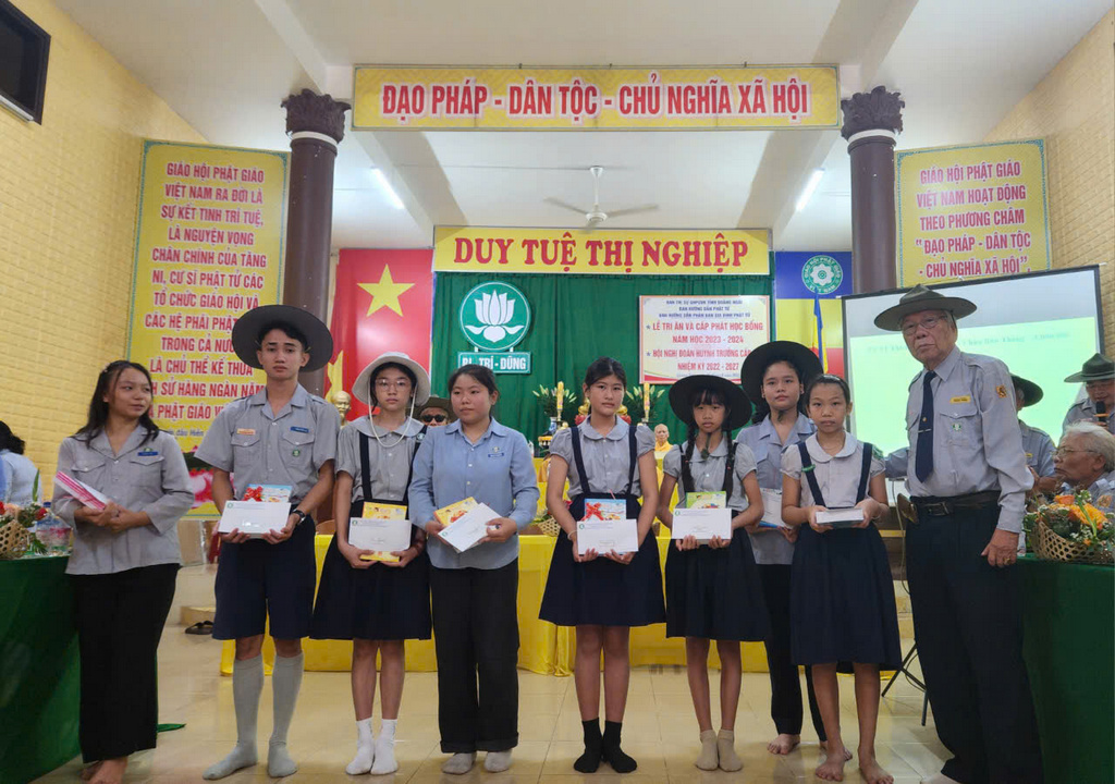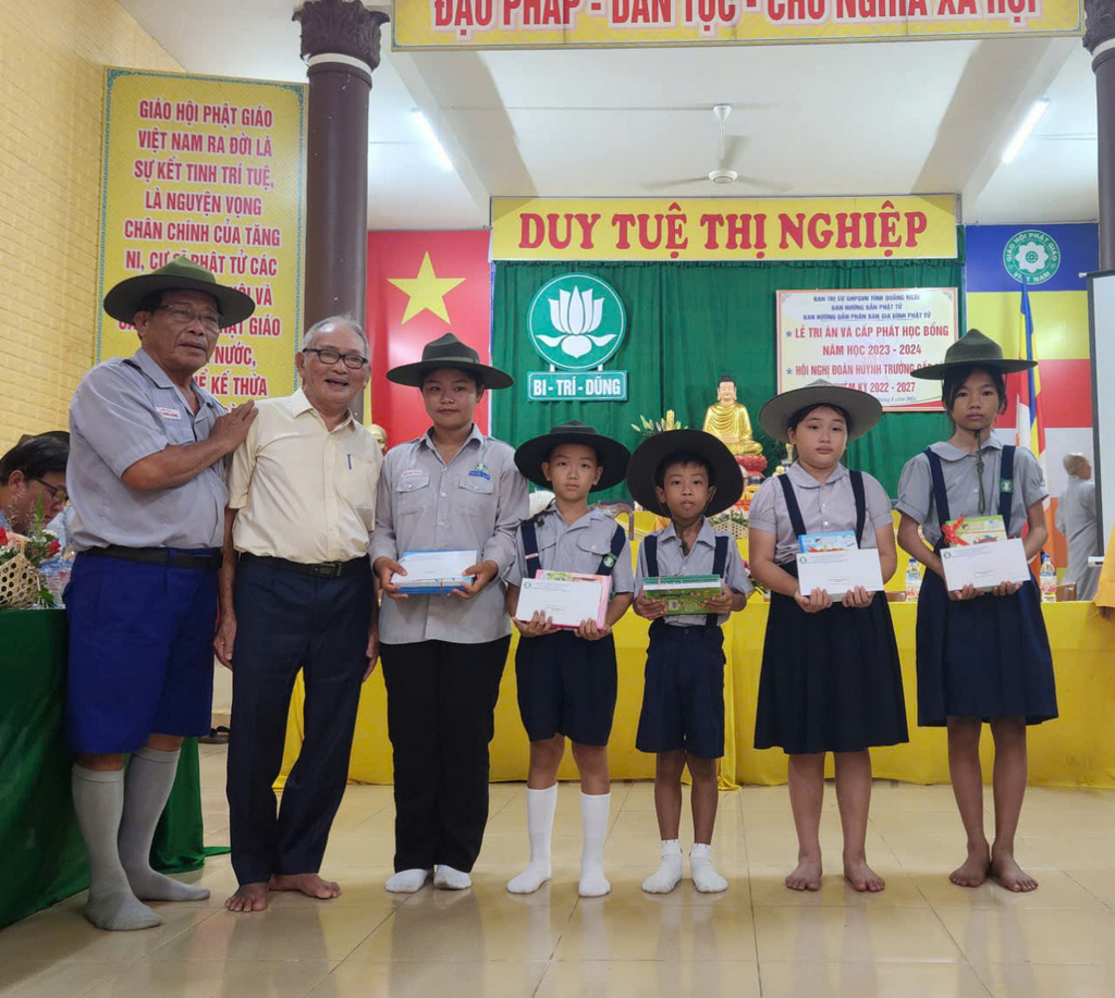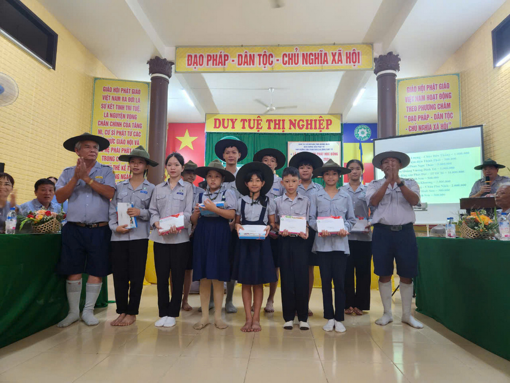 GIA ĐÌNH PHẬT TỬ TỈNH QUẢNG NGÃI Trang nghiêm tổ chức Lễ Tri ân và cấp phát học bổng cho Đoàn sinh nghèo chuyên cần, hiếu học.