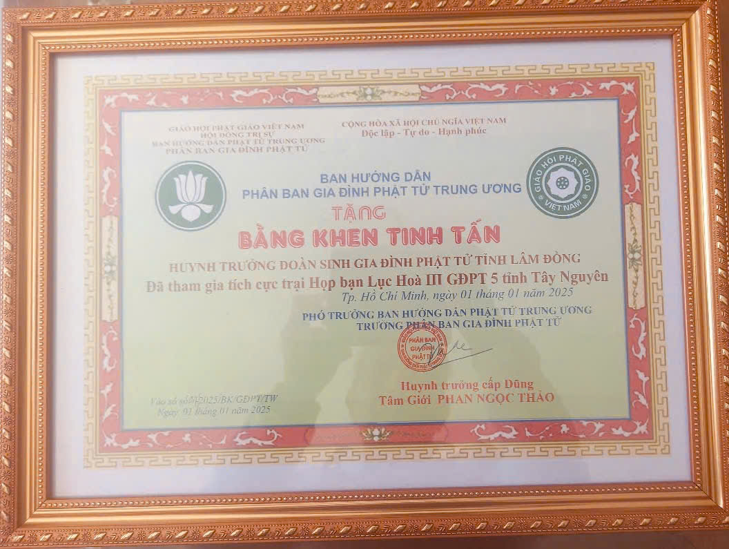 Hội nghị biểu dương và trao tặng Bằng khen đến các đơn vị: GĐPT Giác Nguyên, Tiểu ban TTTT, Tiểu ban Văn Nghệ cùng 8 cá nhân Huynh trưởng đã có thành tích xuất sắc trong công tác Phật sự năm 2024 vừa qua.