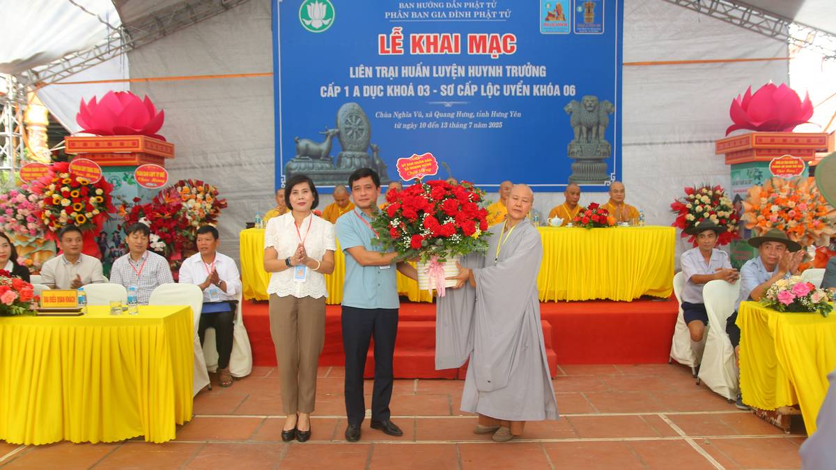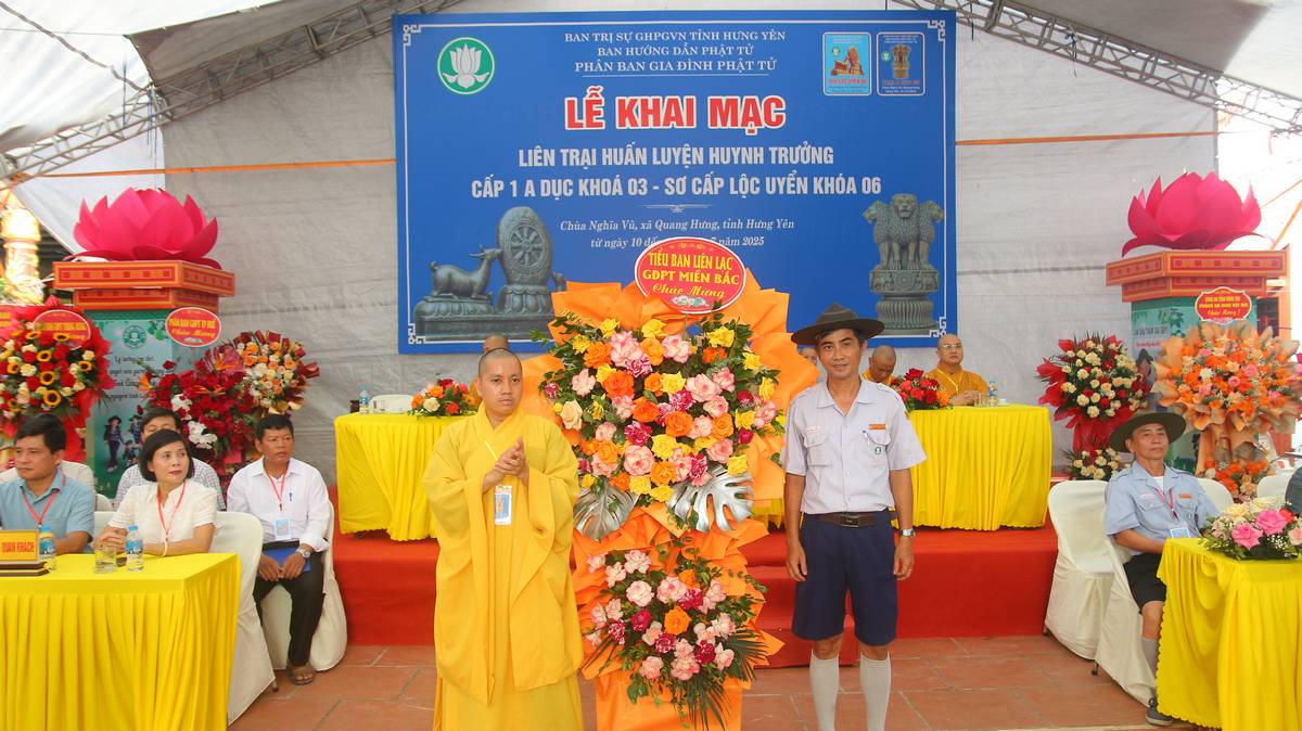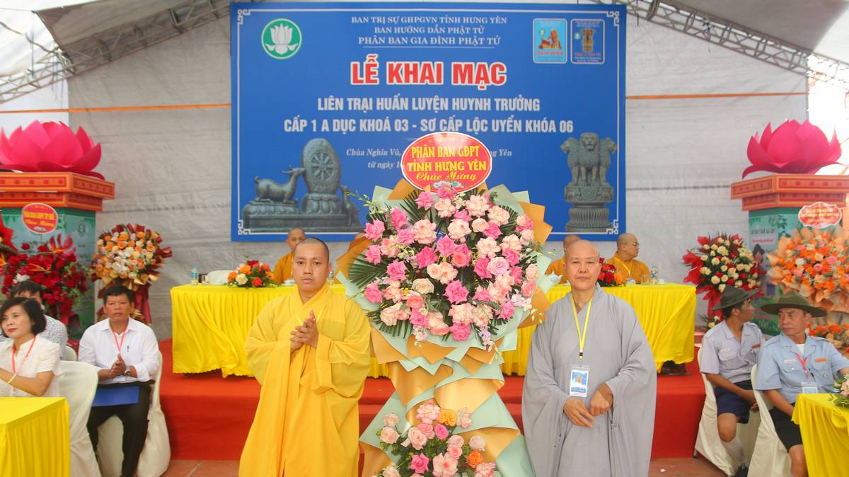 Tại lễ khai mạc, Ban tổ chức, Ban quản trại đã nhận được lẵng hoa chúc mừng của Ban Trị sự GHPGVN tỉnh Hưng Yên, Ban Hướng dẫn Phân ban GĐPT Trung ương, Phòng An ninh nội địa – Công an tỉnh Hưng Yên, UBND xã Quang Hưng, Công an xã Quang Hưng, Ban Hướng dẫn Phân ban GĐPT thành phố Huế, Ban Hướng dẫn Phân ban GĐPT tỉnh Hưng Yên cùng chư tôn đức và các đơn vị có trại sinh tham dự Liên trại.